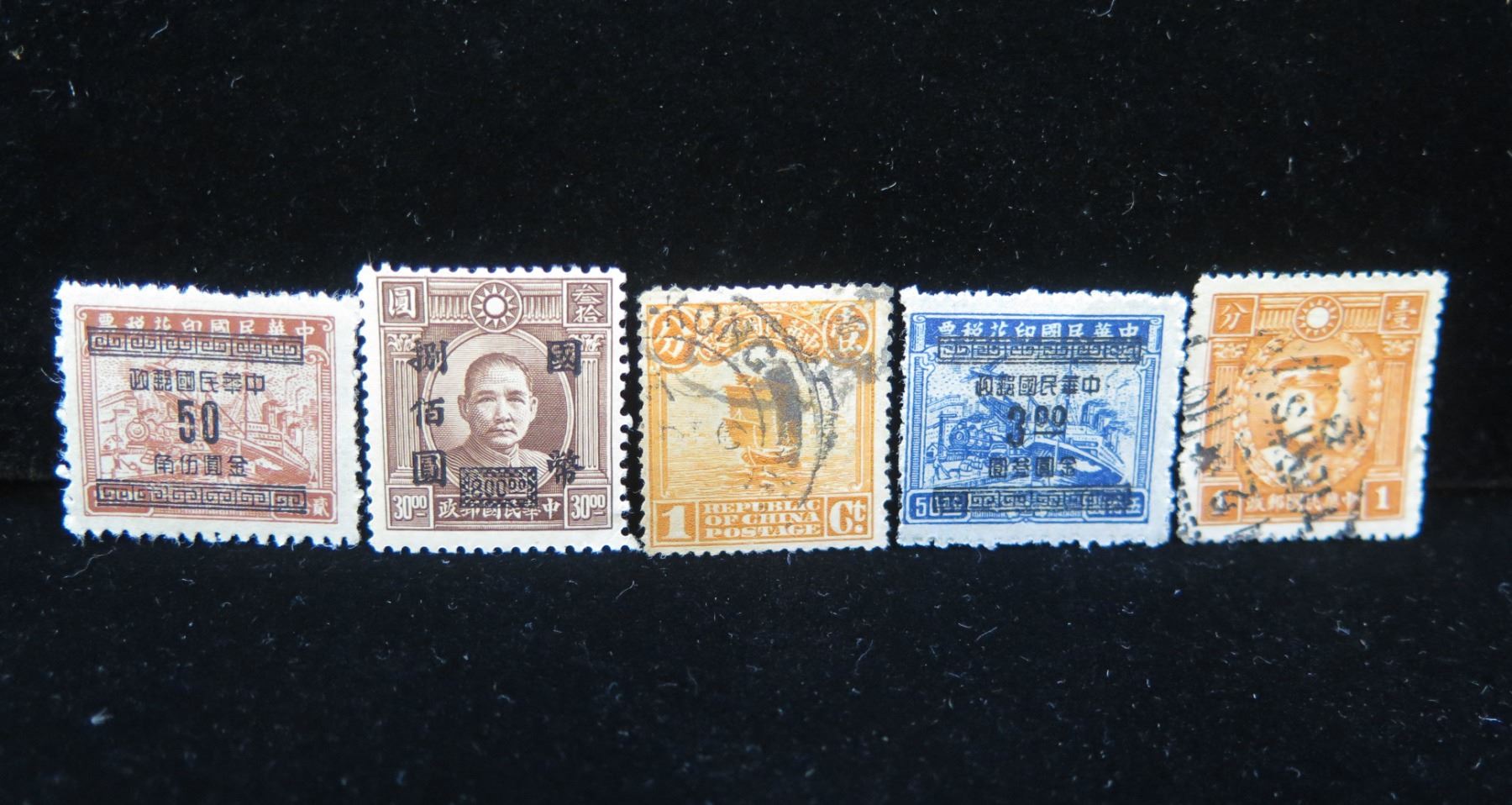 Qty 5 Republic of China Postage Stamps: People, Ships, etc