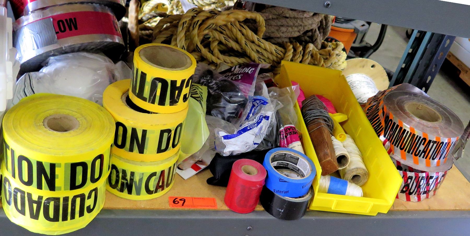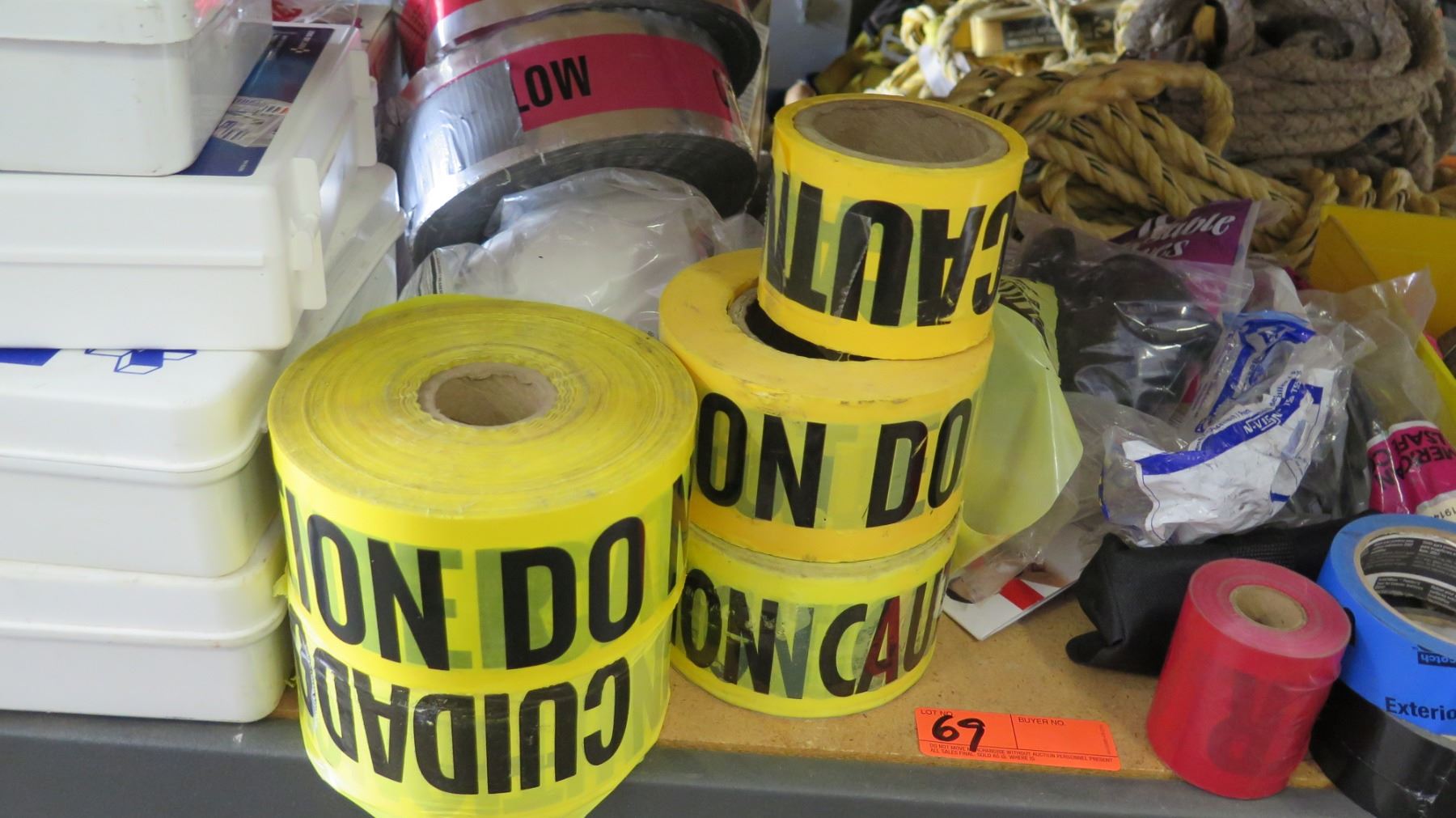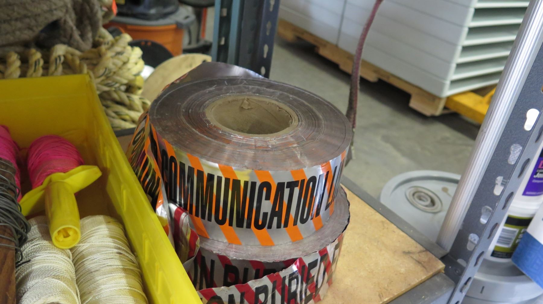 Qty 5 Rolls "Caution" Tape, "Communication" Tape, Misc Colored Tape, etc