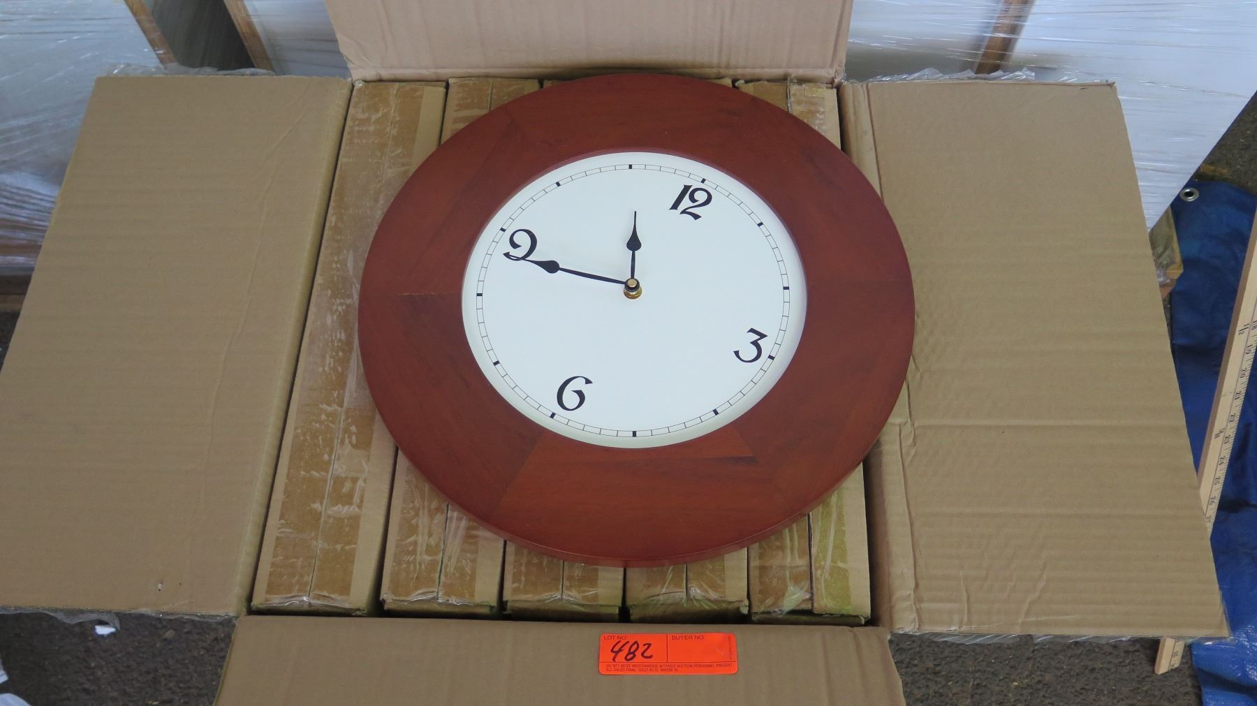 Qty 5 Round Koa Veneer Wall Clock, Approx 20" Dia.