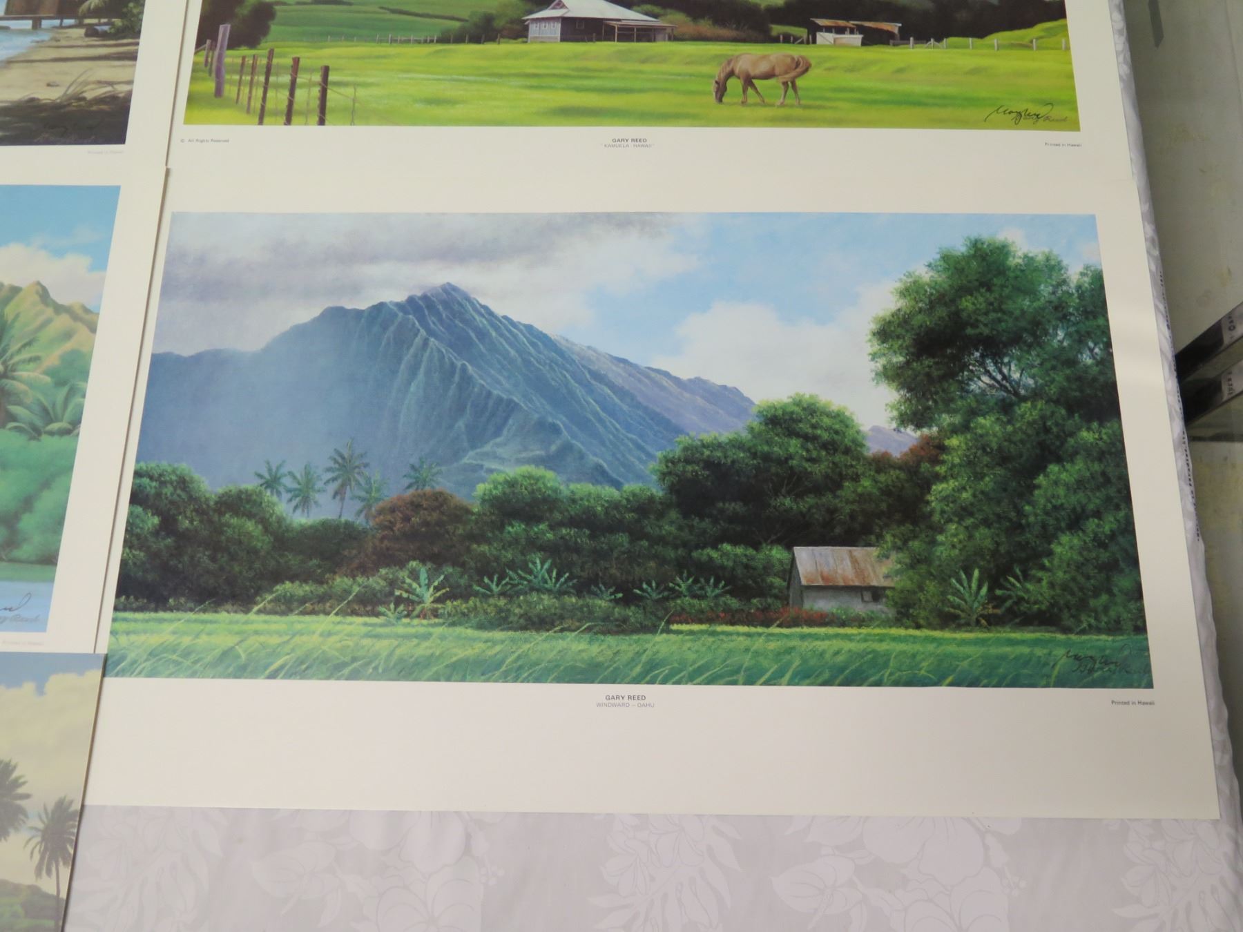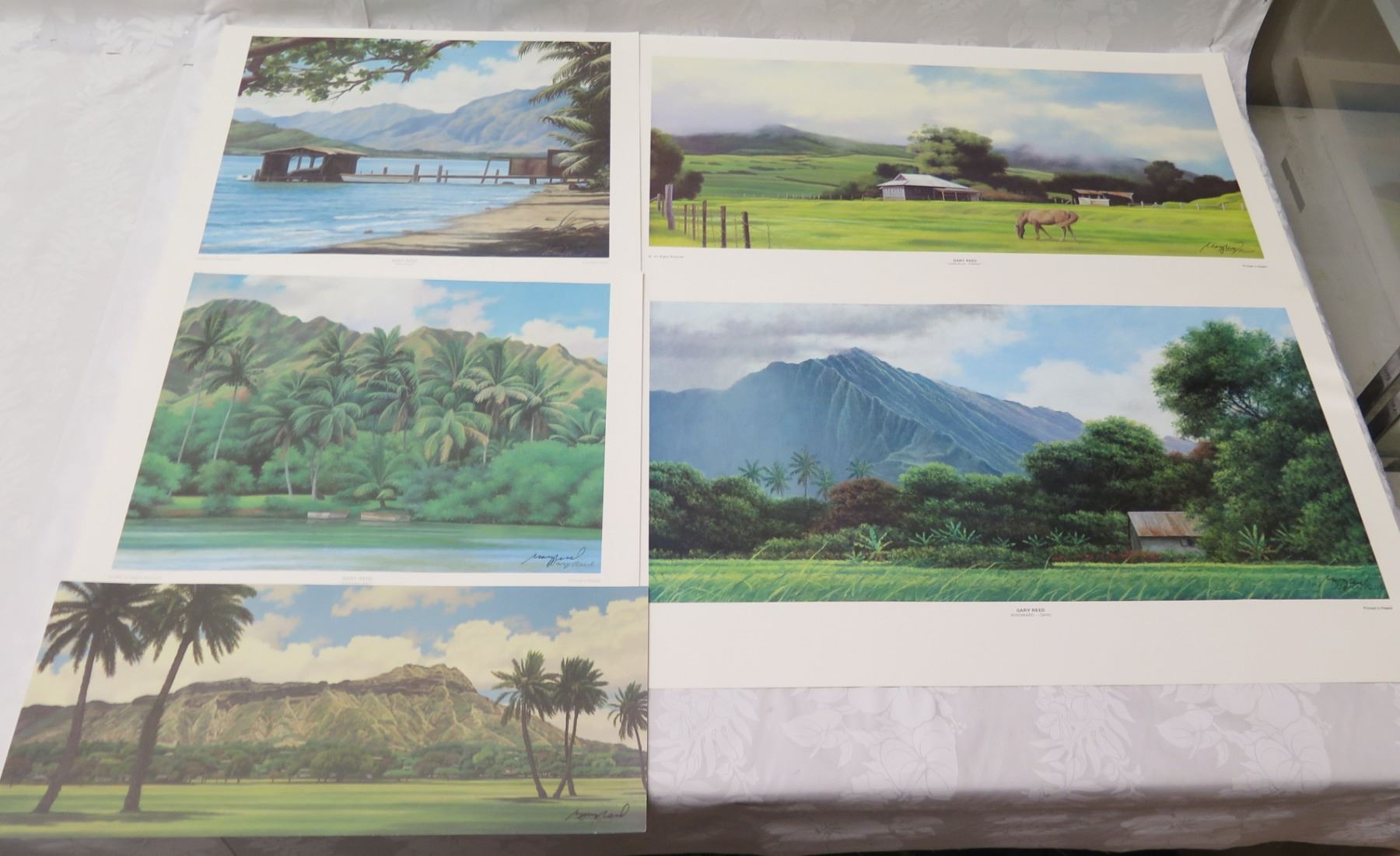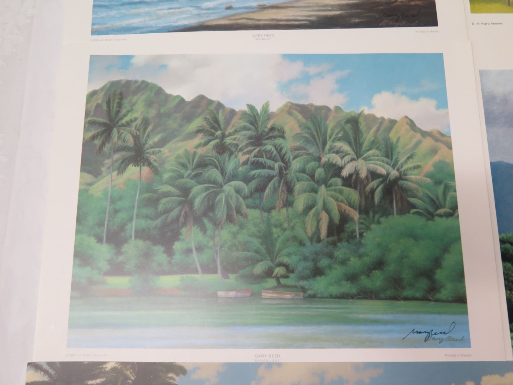 Qty 5 Gary Reed Prints: Waihole, Kamuela, Windward Oahu, Kahana Bay & Kapiolani Park, Misc Sizes. All prints signed by hand by artist Gary Reed