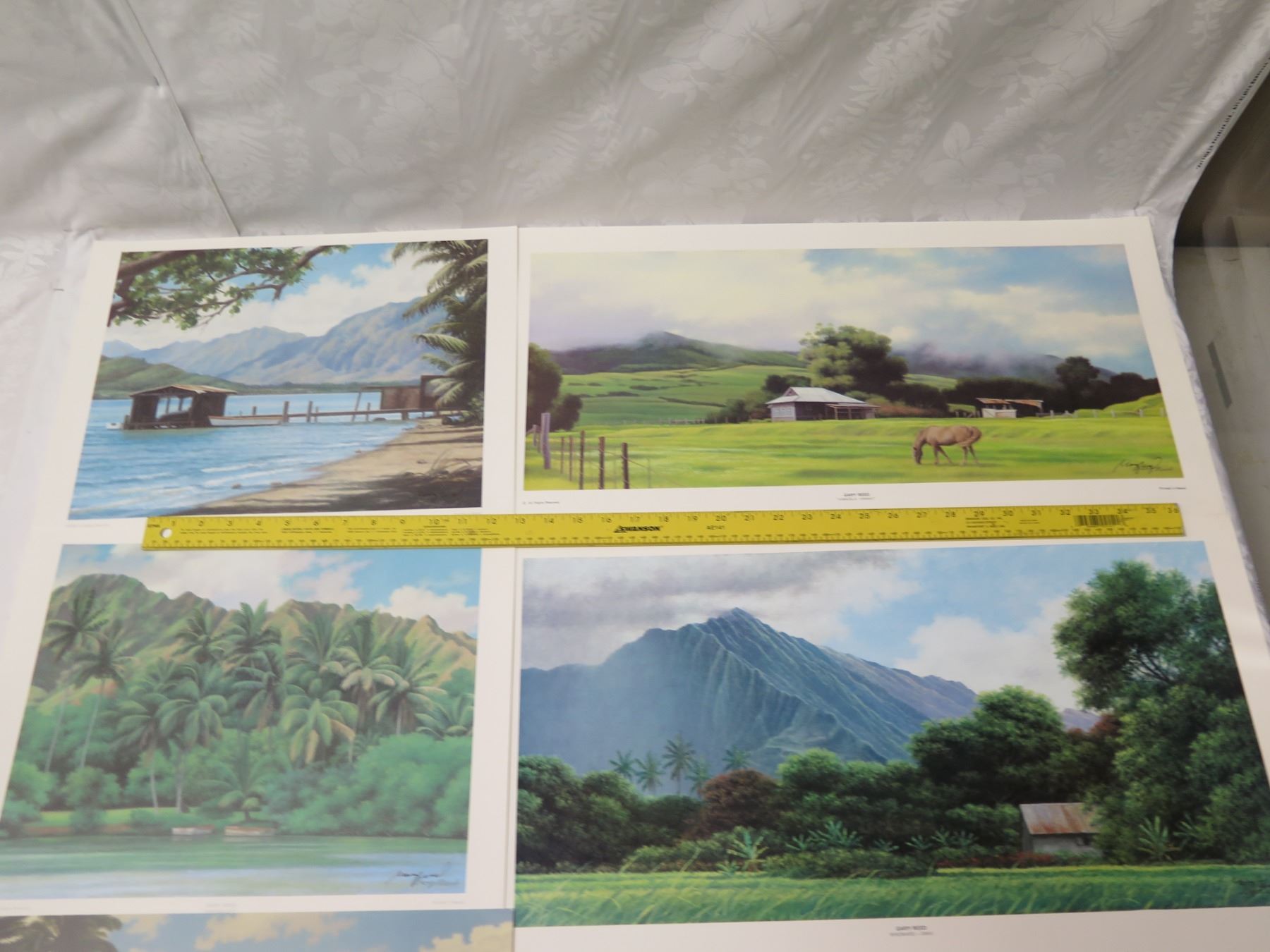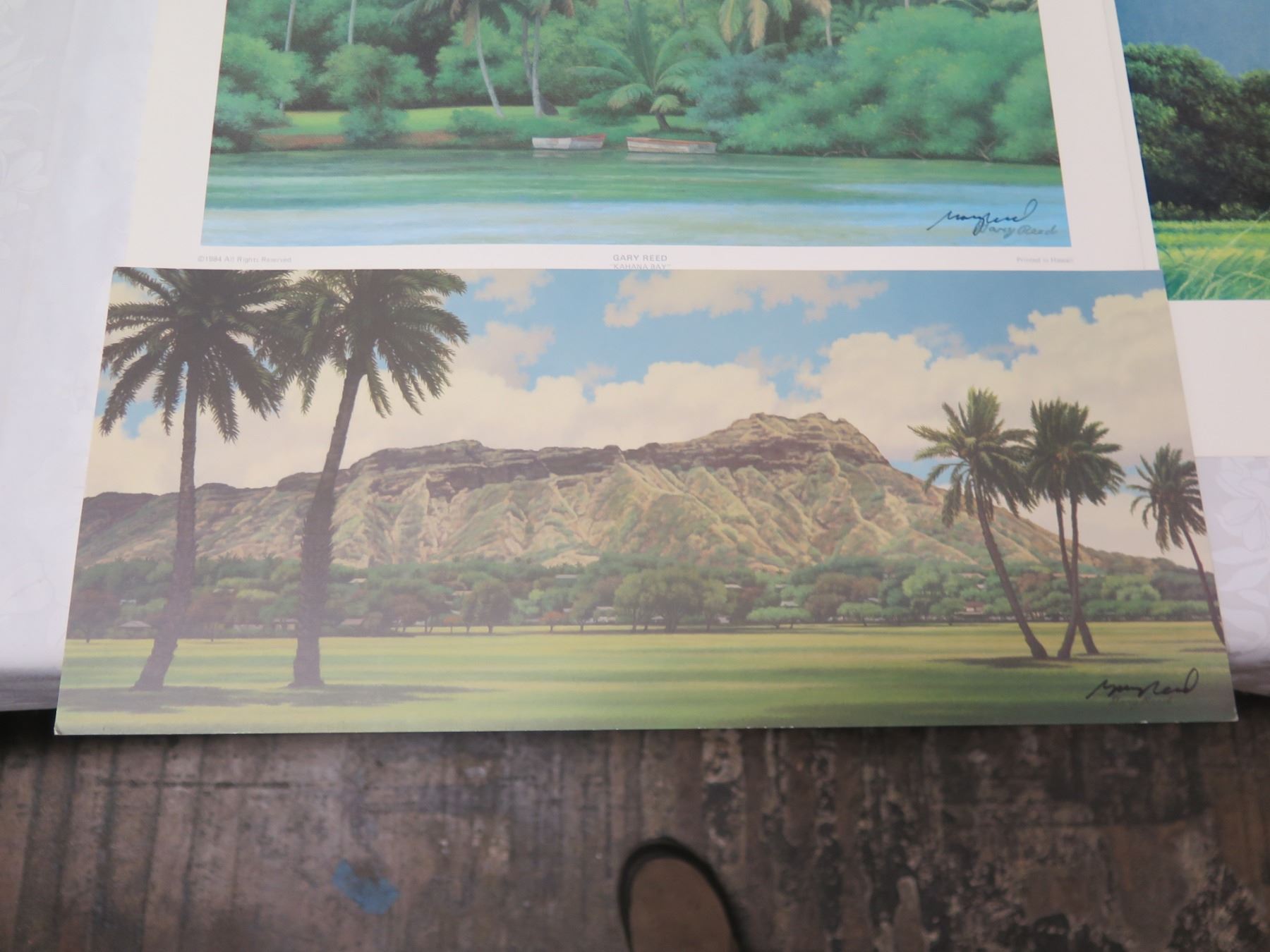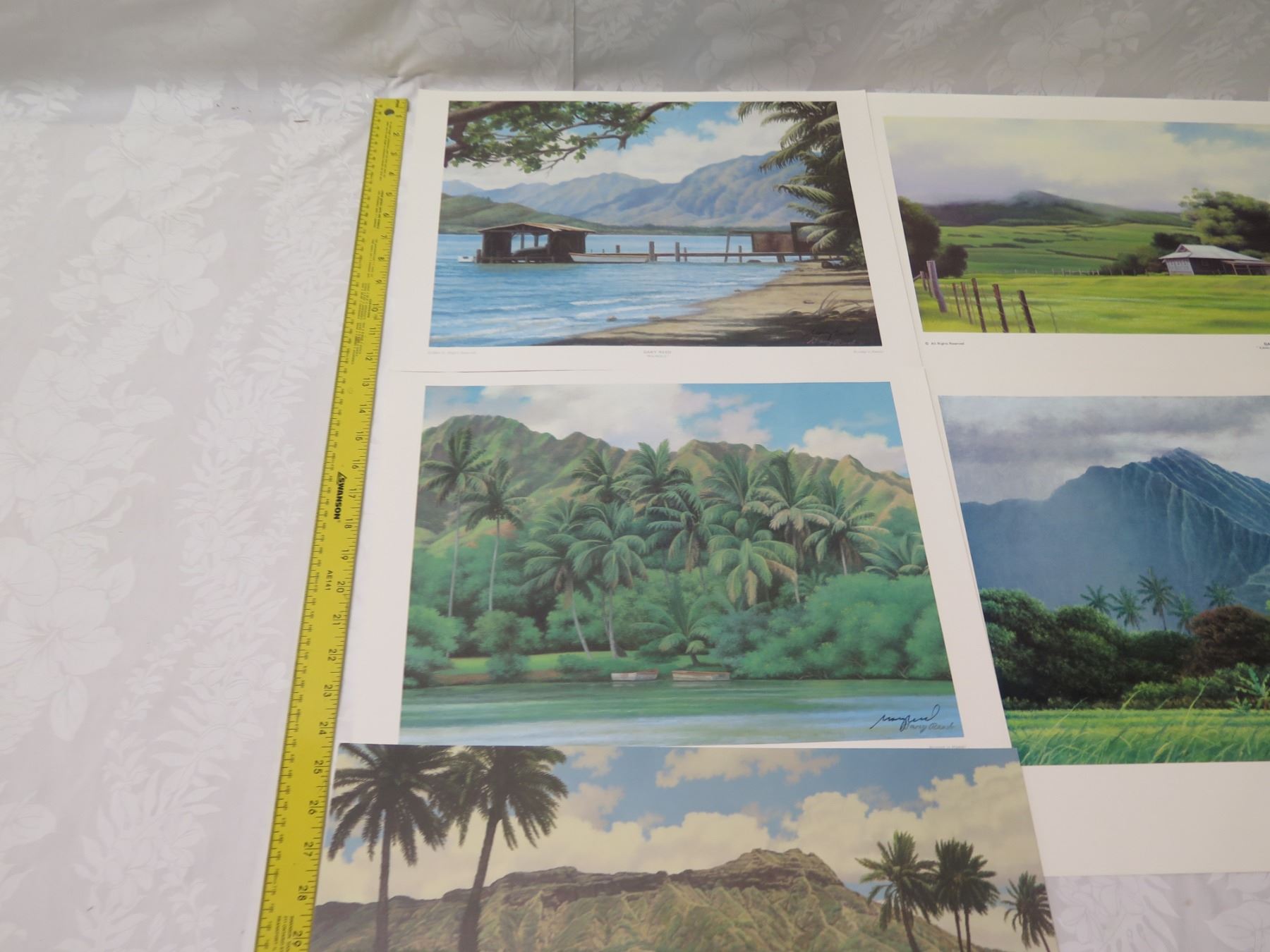 Qty 5 Gary Reed Prints: Waihole, Kamuela, Windward Oahu, Kahana Bay & Kapiolani Park, Misc Sizes. All prints signed by hand by artist Gary Reed
