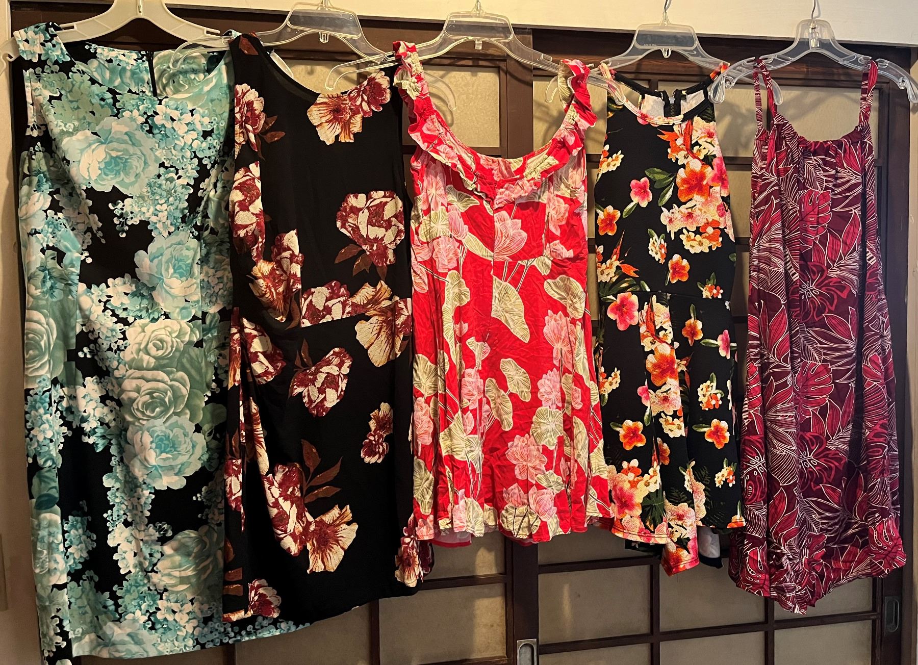 Qty 5 Sleeveless XS/Small or Keiki Dresses (30-34"bust): Makai Beach + 3 (pre-owned) & Nordstrom (new) Note: These are preowned and may have flaws. Some size tags have been removed. Items are measured flat & doubled.