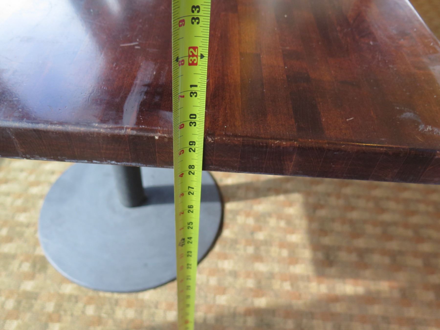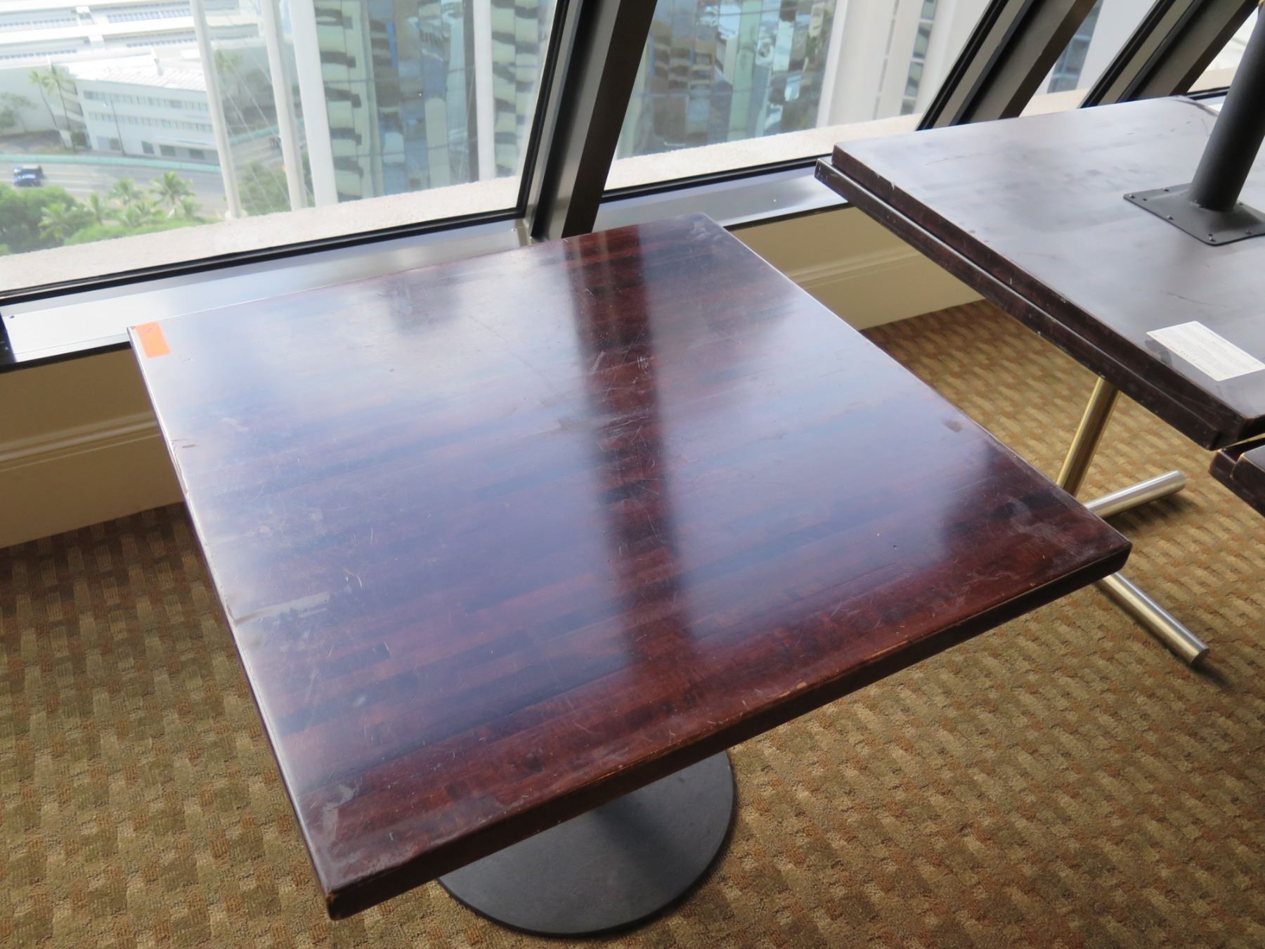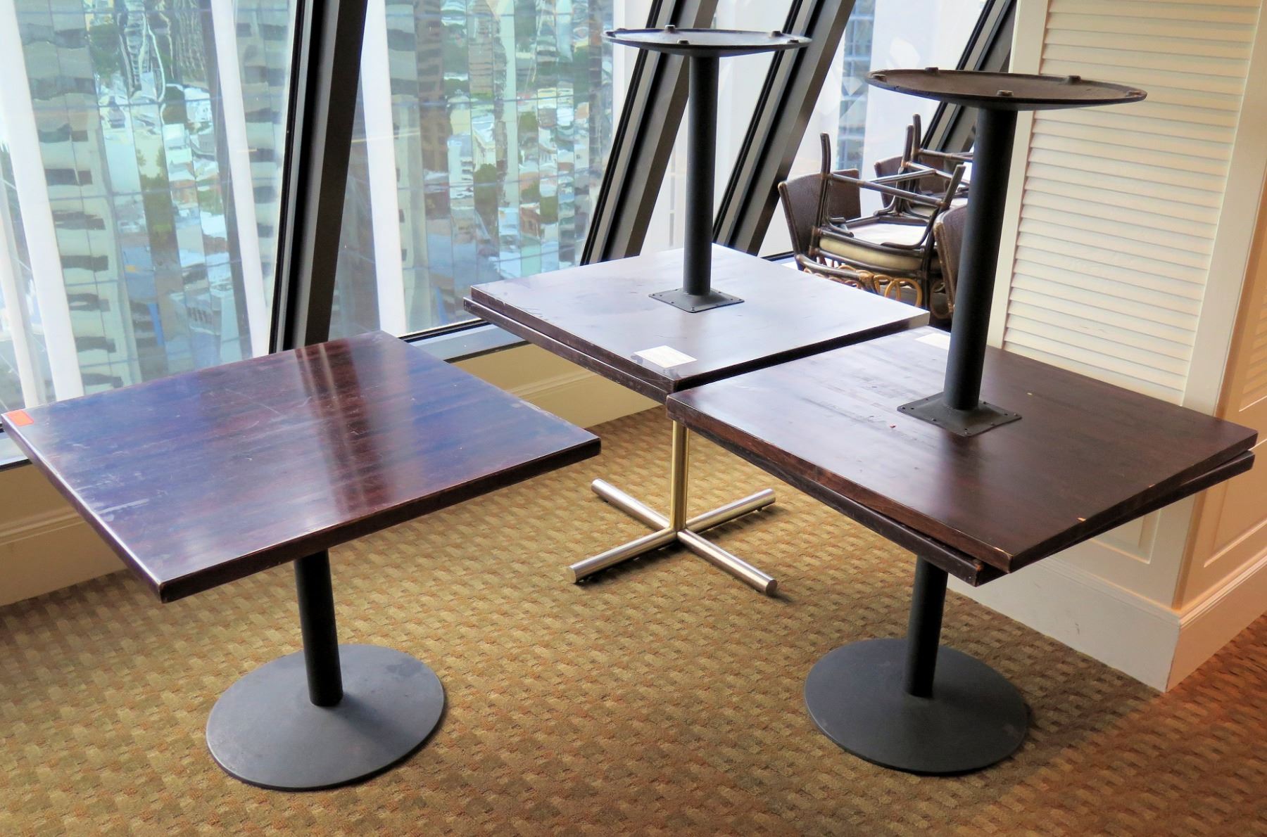 Qty 5 Square Wooden Tables w/ Metal Pedestal Base 36"Diameter x 30"H