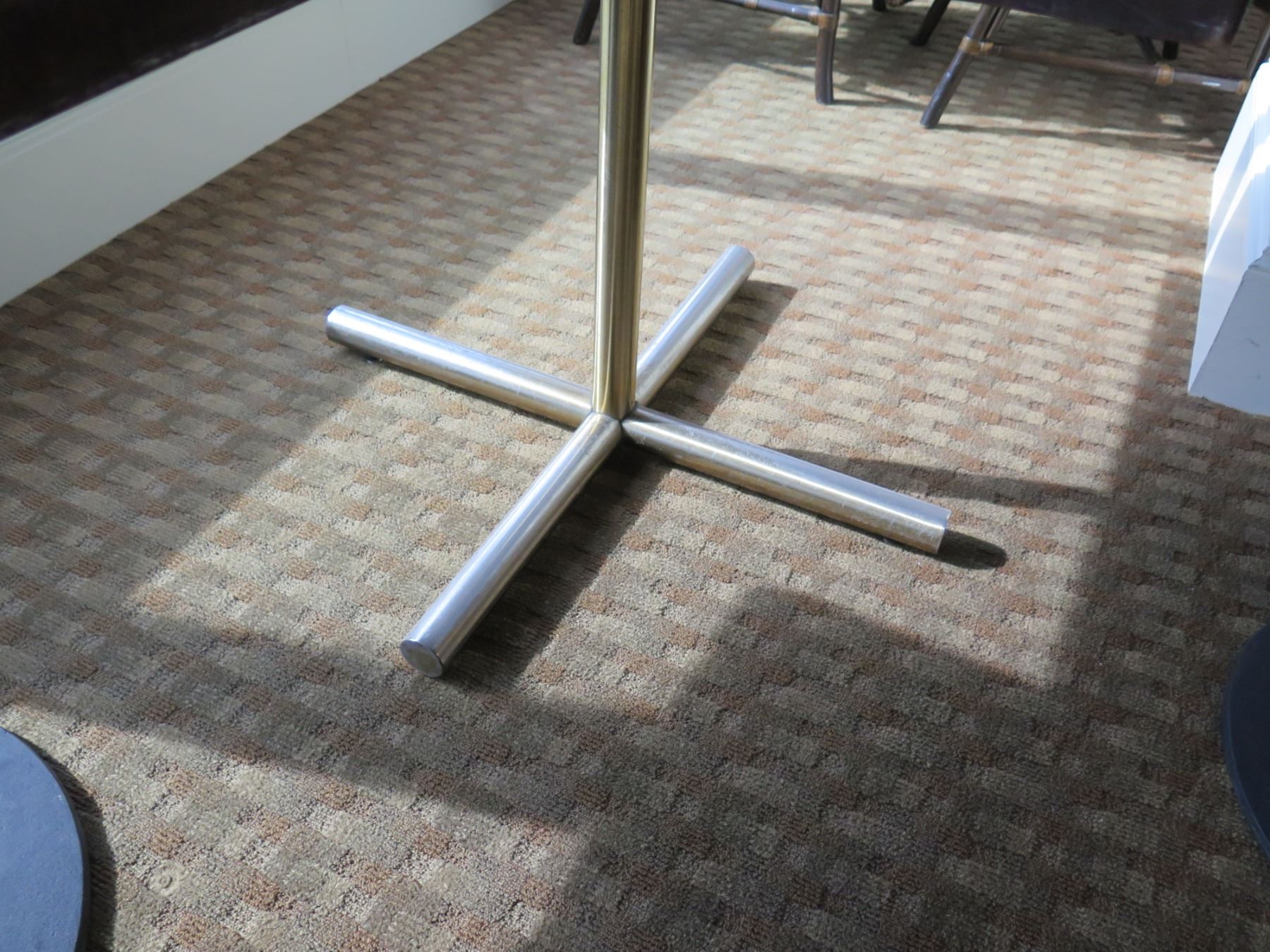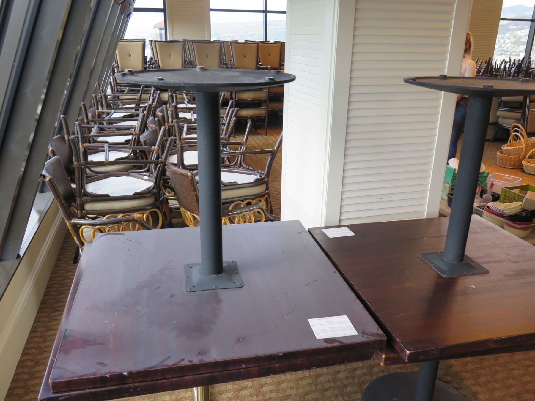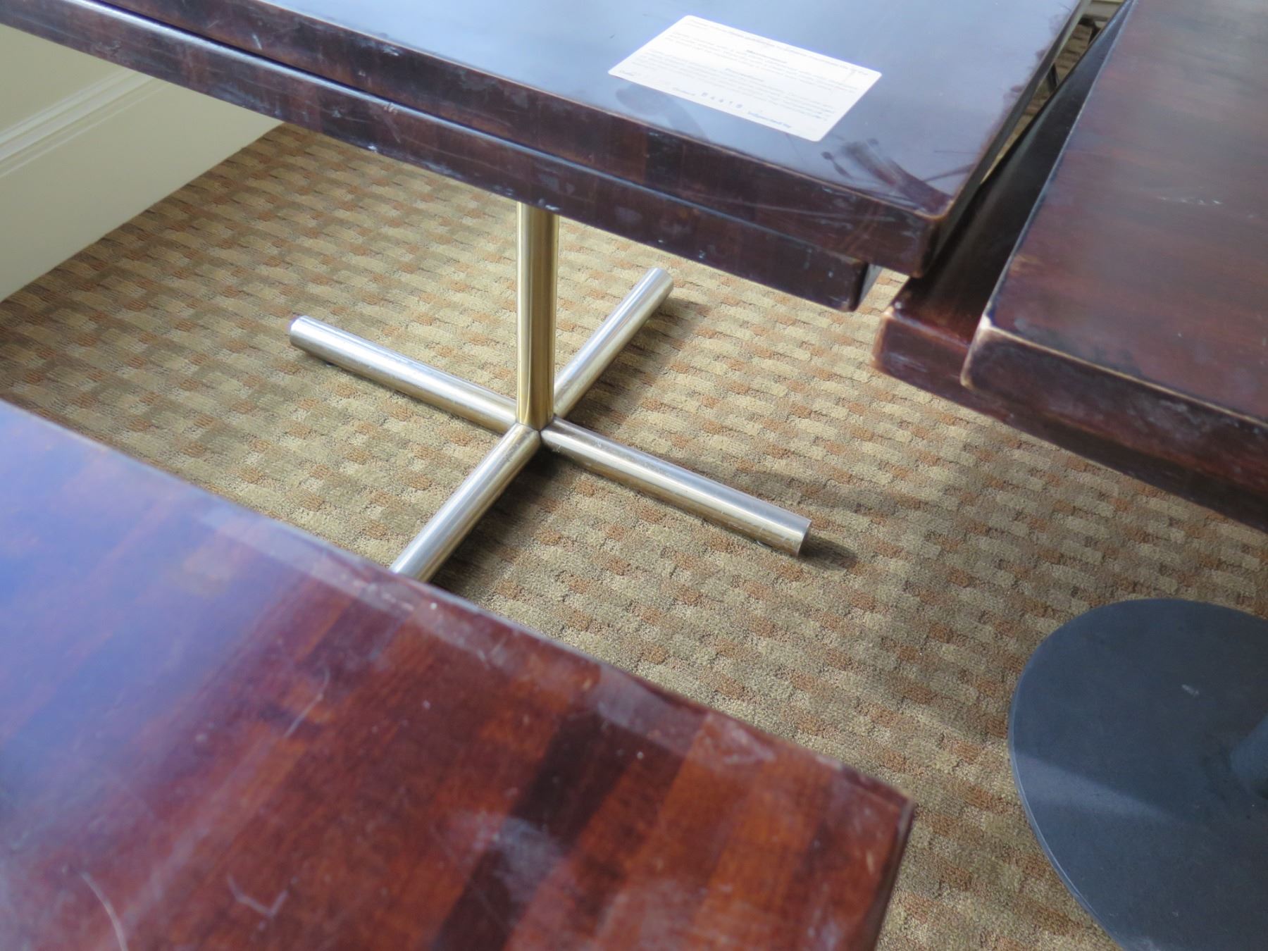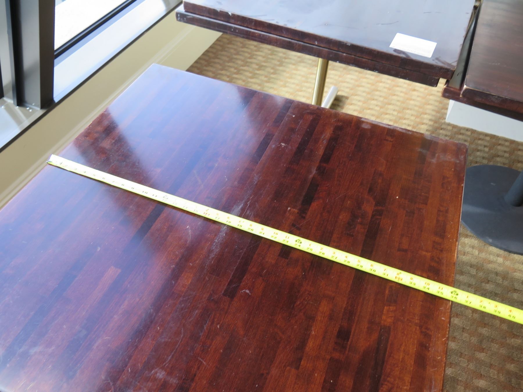 Qty 5 Square Wooden Tables w/ Metal Pedestal Base 36"Diameter x 30"H