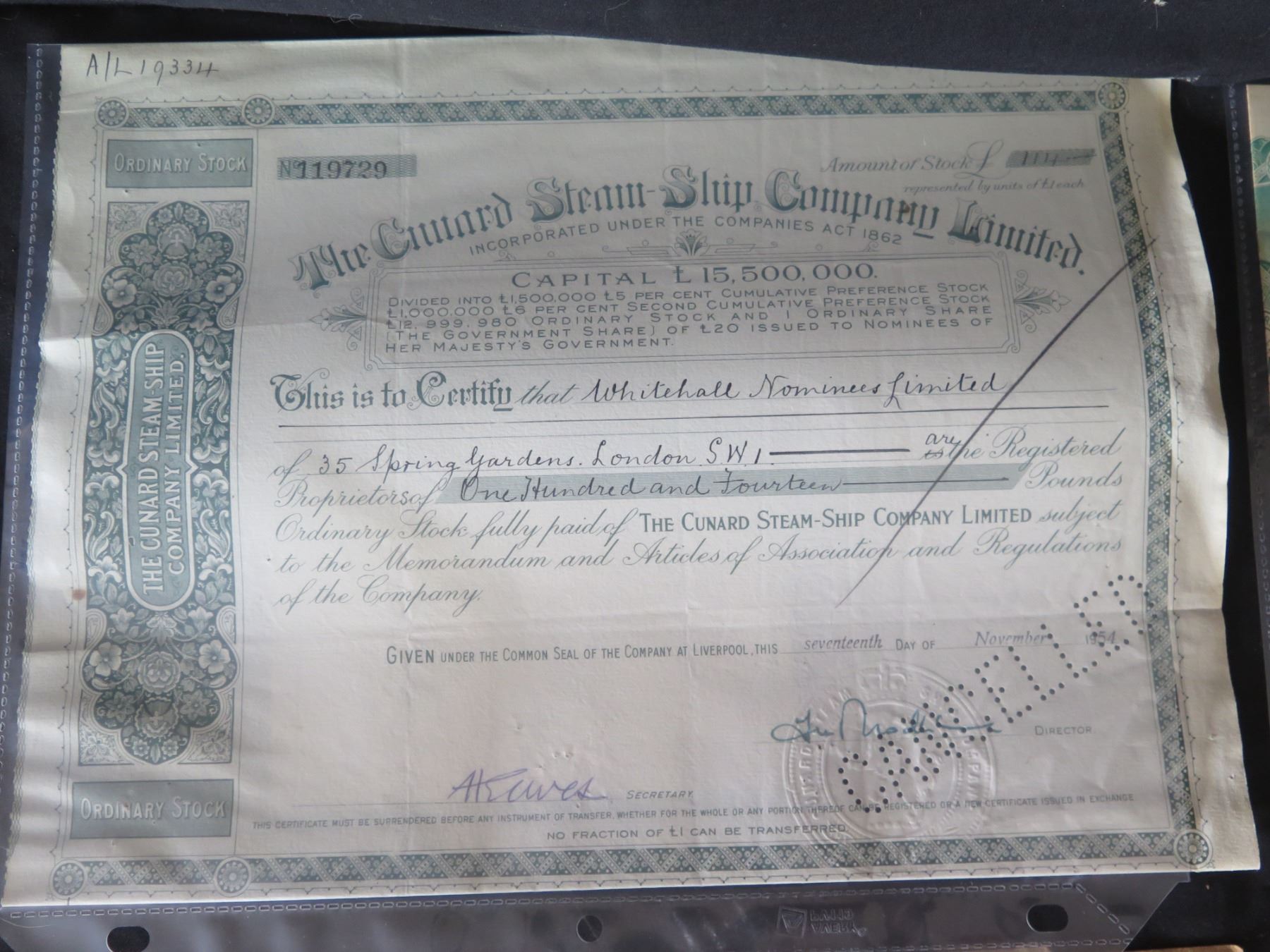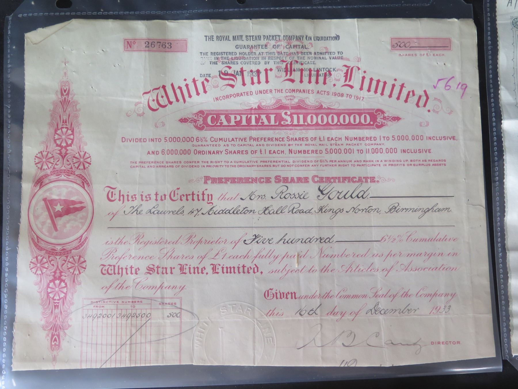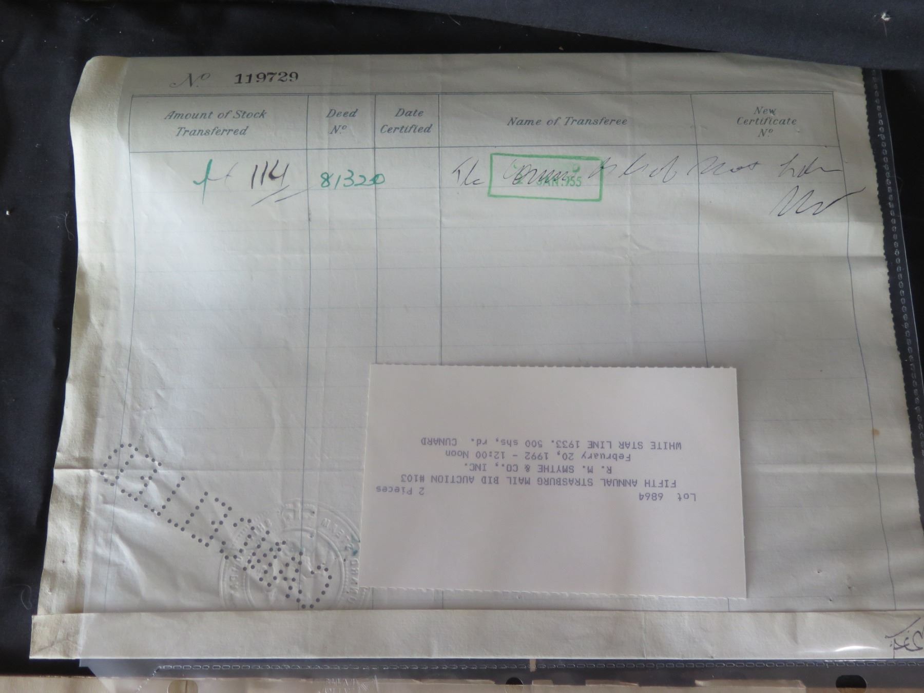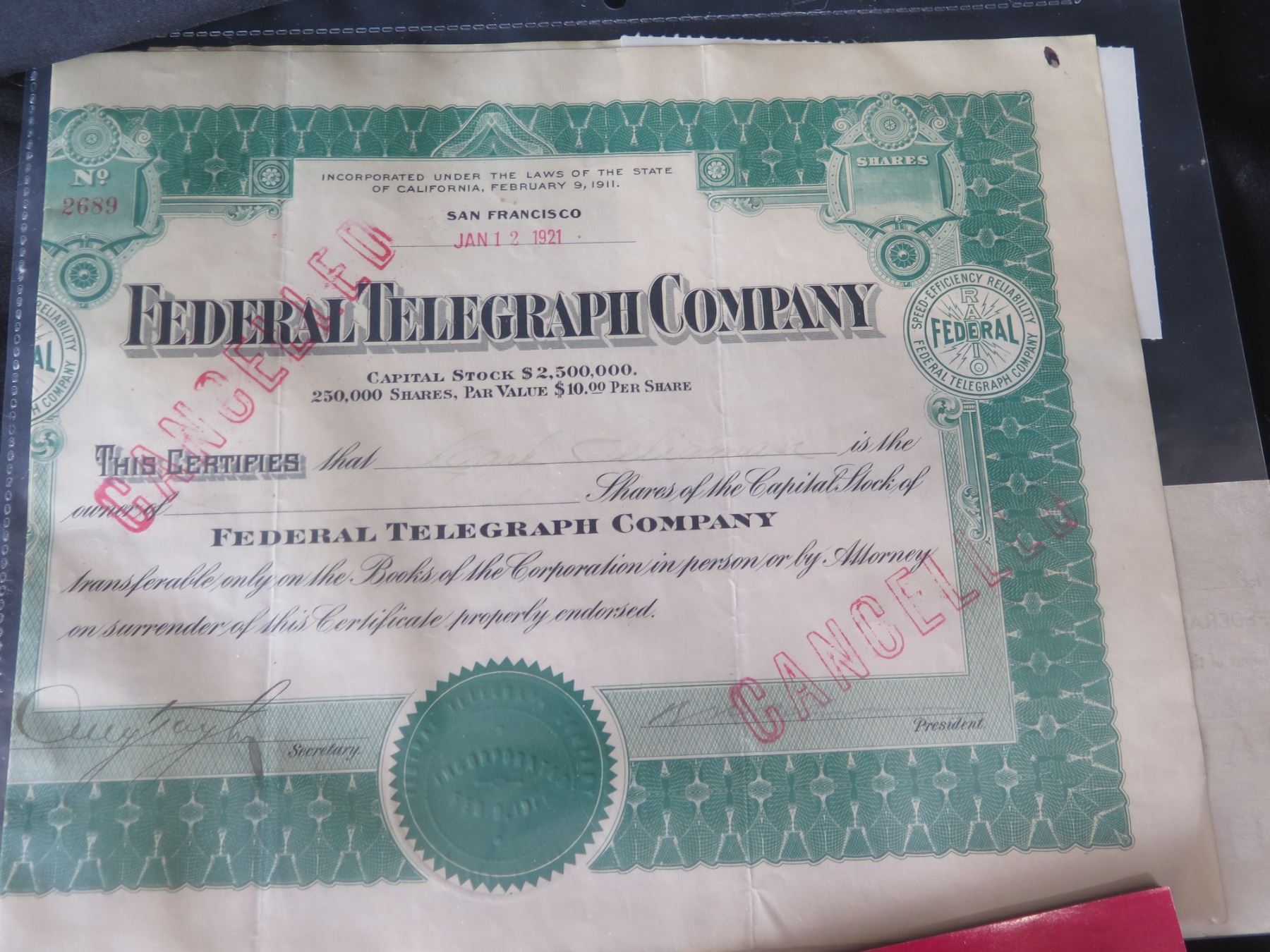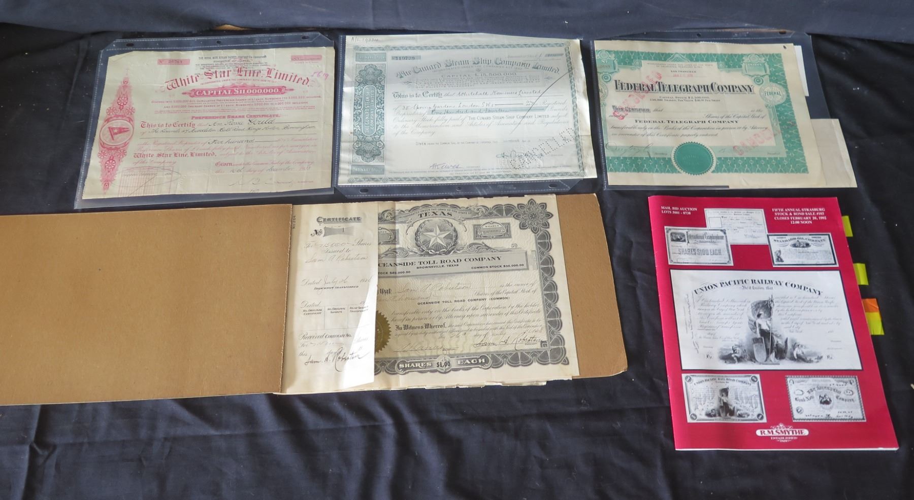 Qty 5 Stock Certificates: White Star Line, Cunard, Federal Telegraph Co, etc