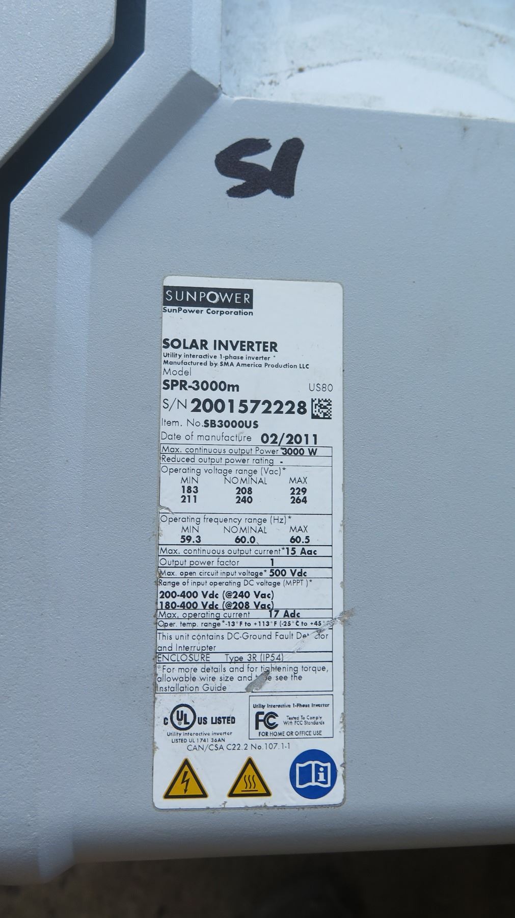 Qty 5 Sunpower SPR 3000M Solar Inverters - Previously Installed, Working
