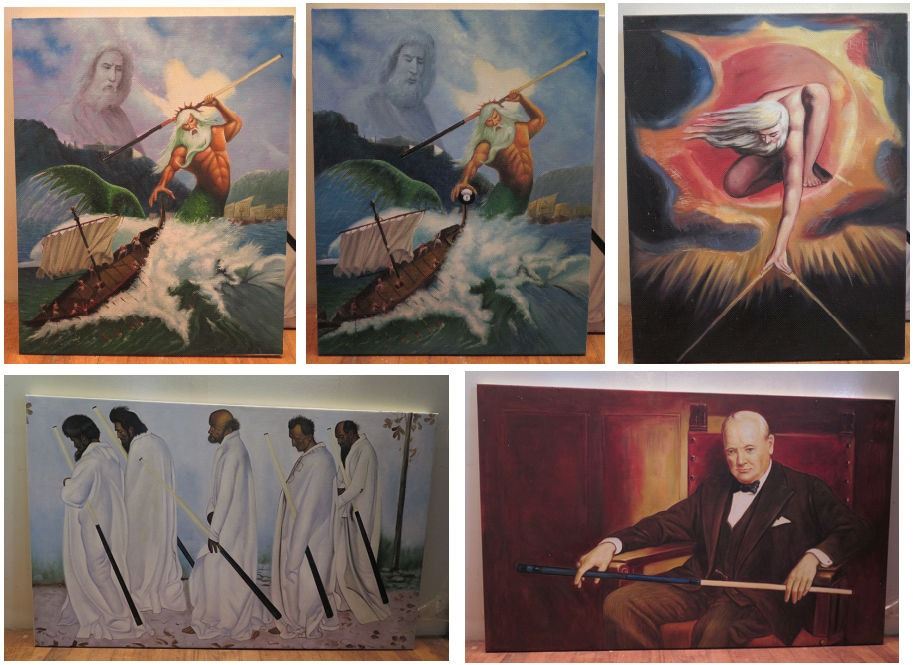Qty 5 Unframed Artwork Portrait & Religious Themed, Misc Size