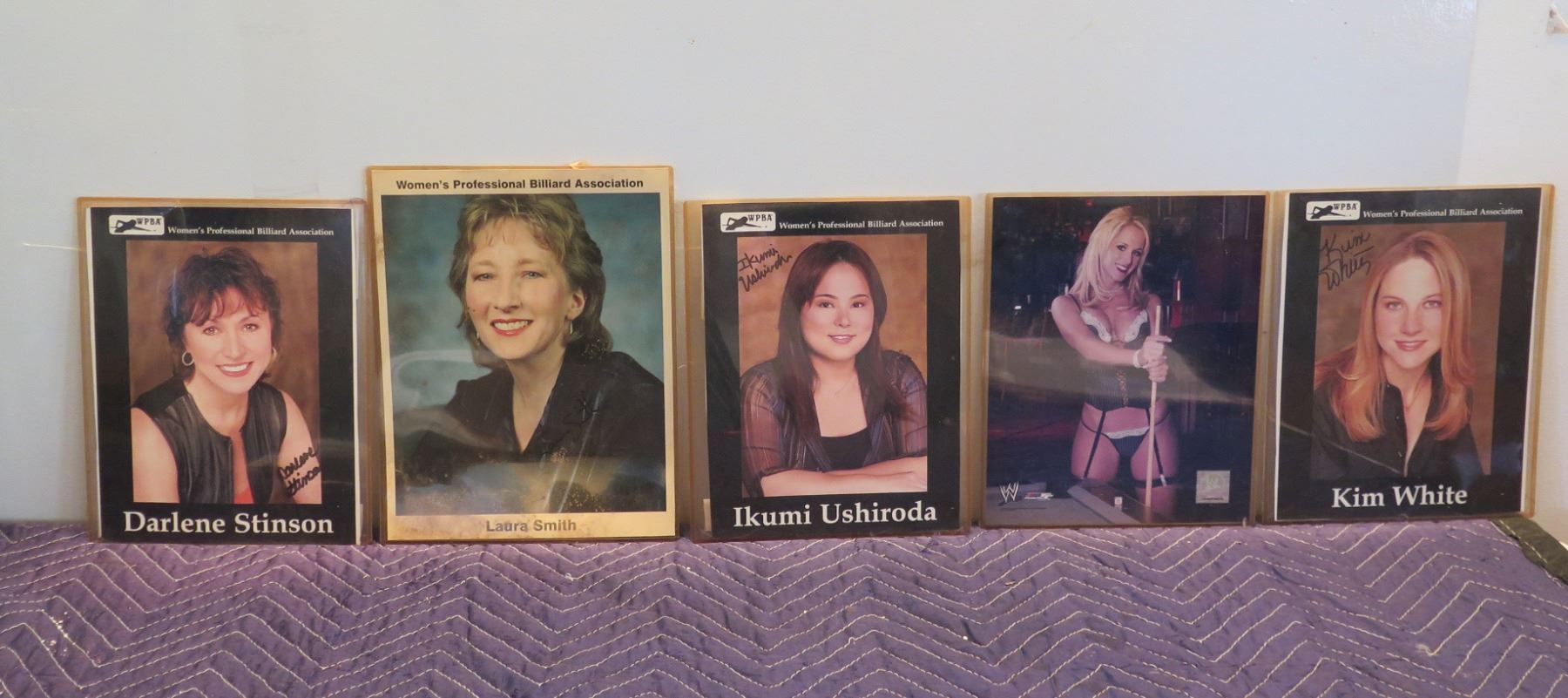 Qty 5 Unframed Signed Artwork Billiards Champions: Kim White, Ikumi Ushiroda, etc