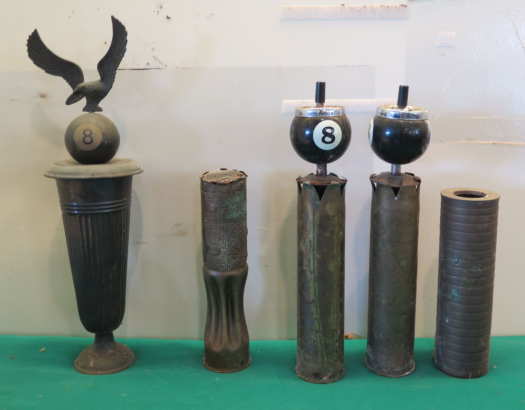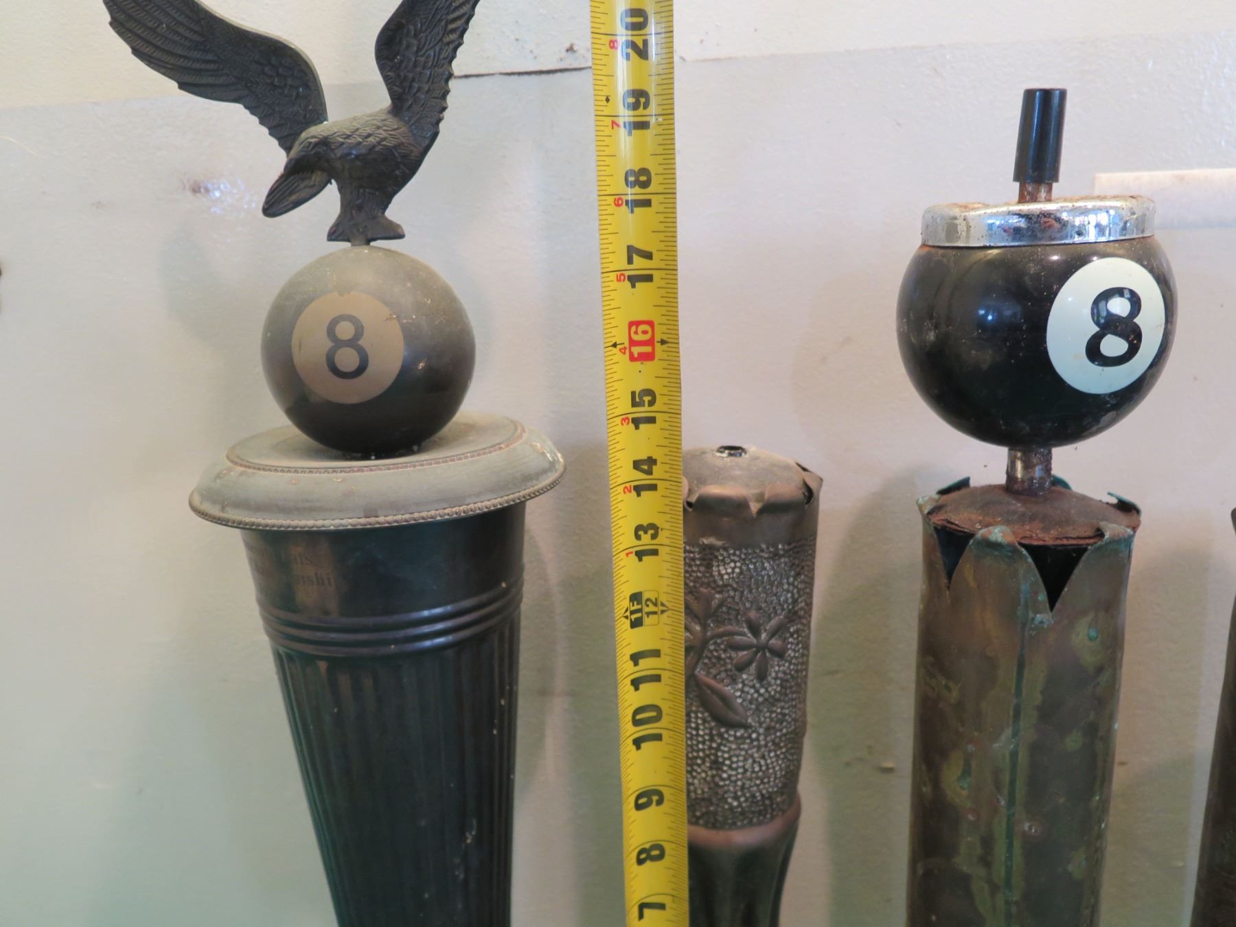 Qty 5 Vintage Metal Billiards Pool Themed Awards & Ashtrays