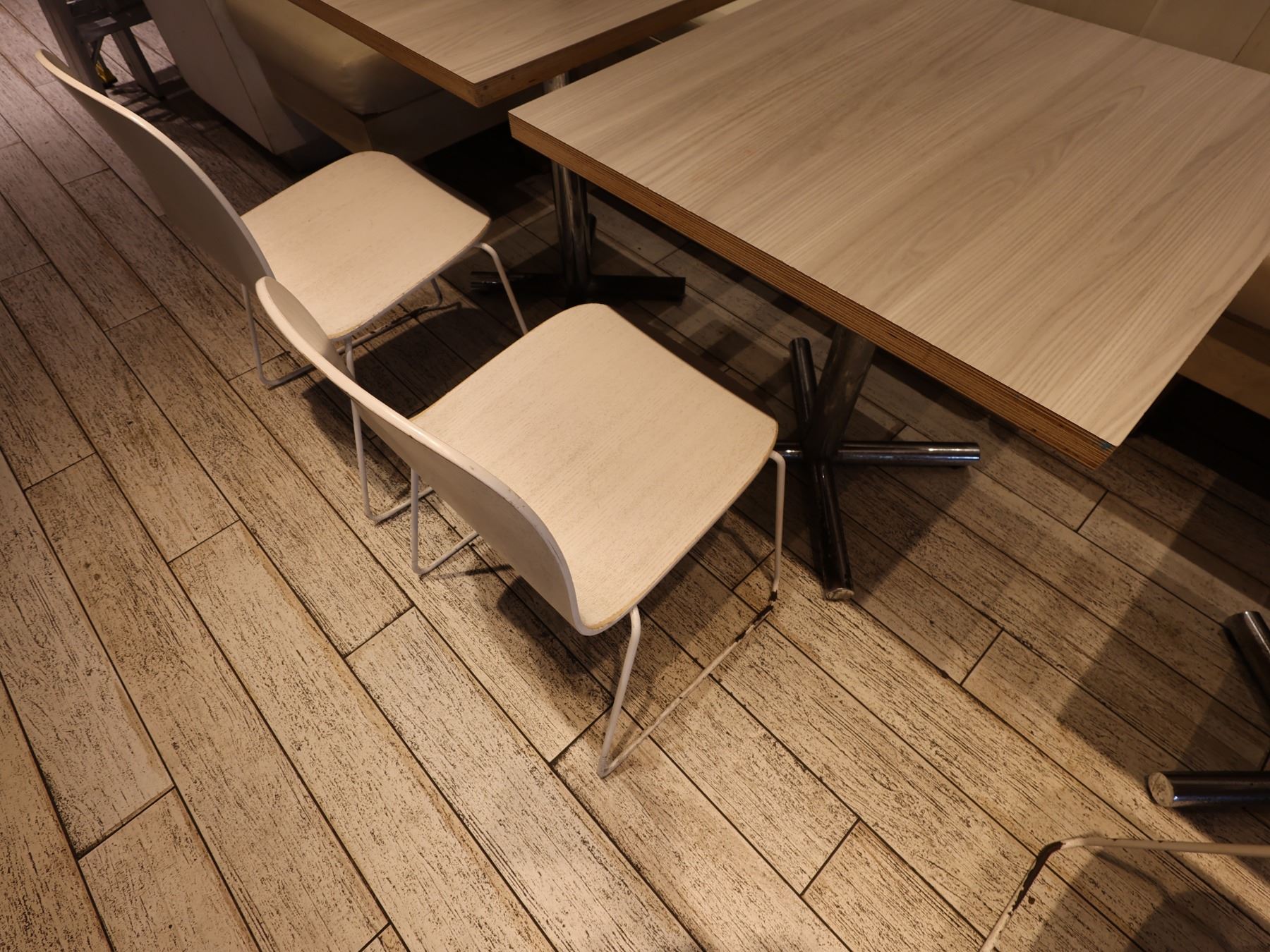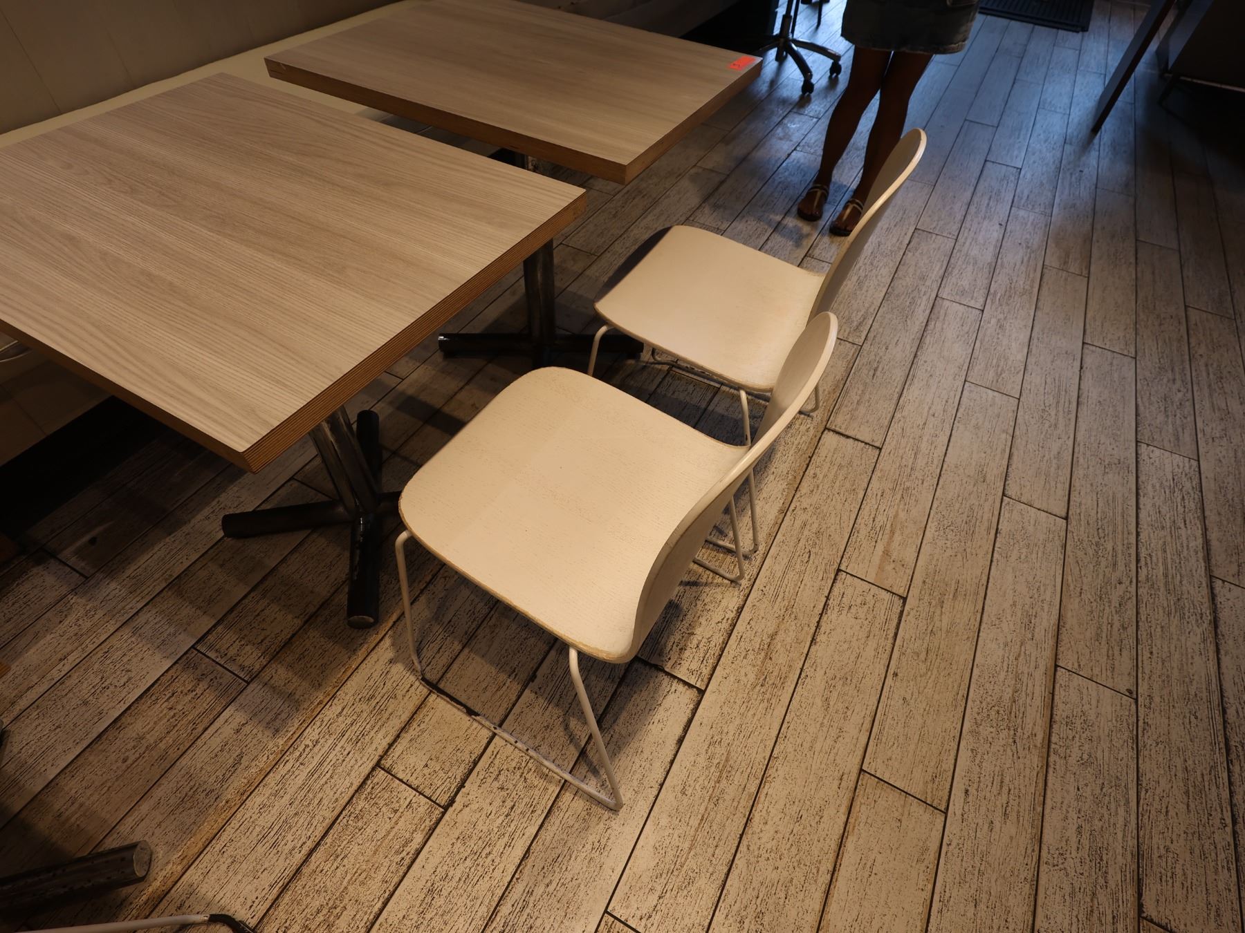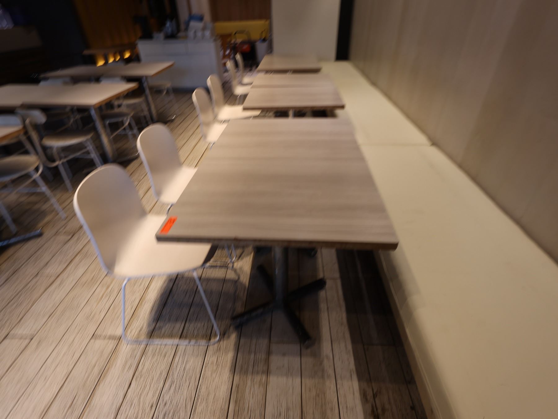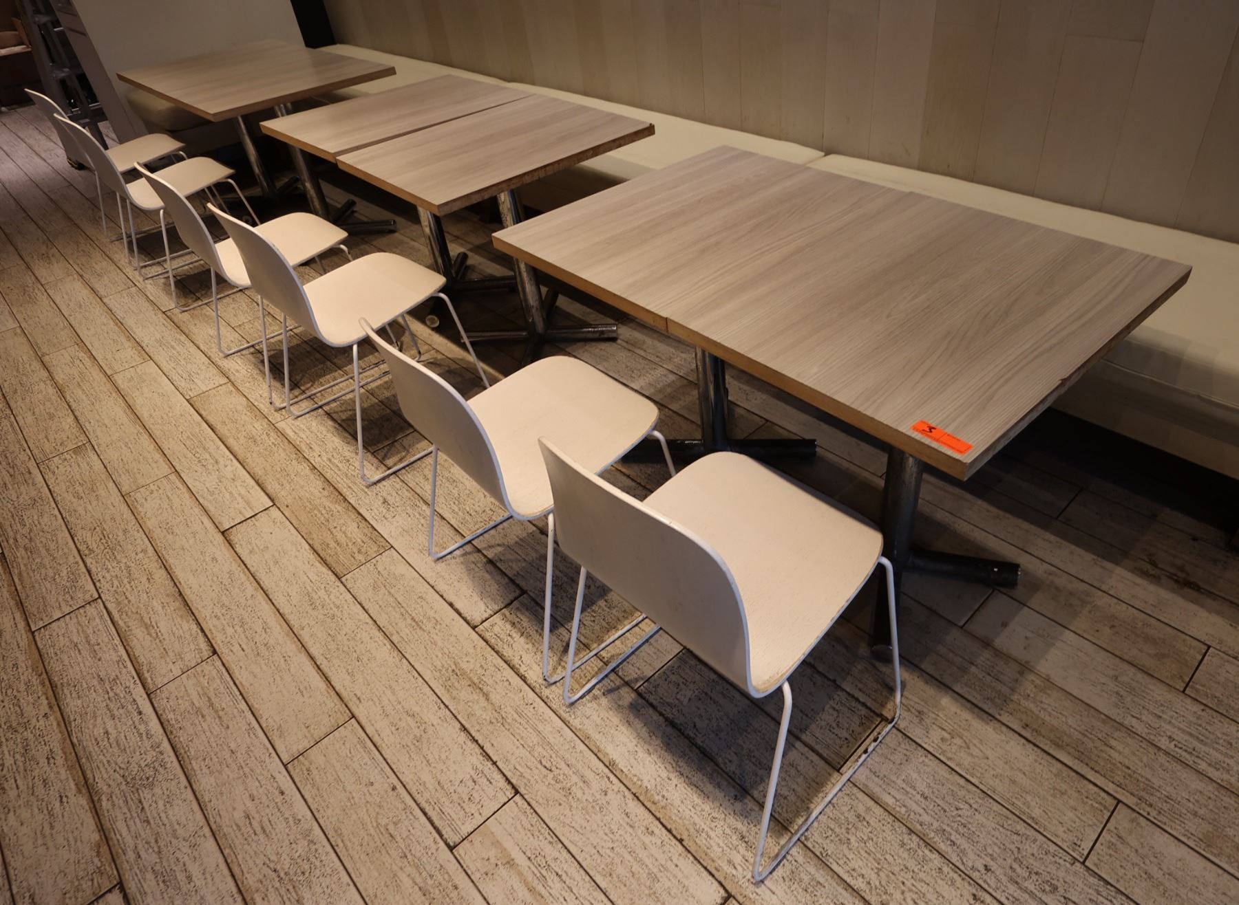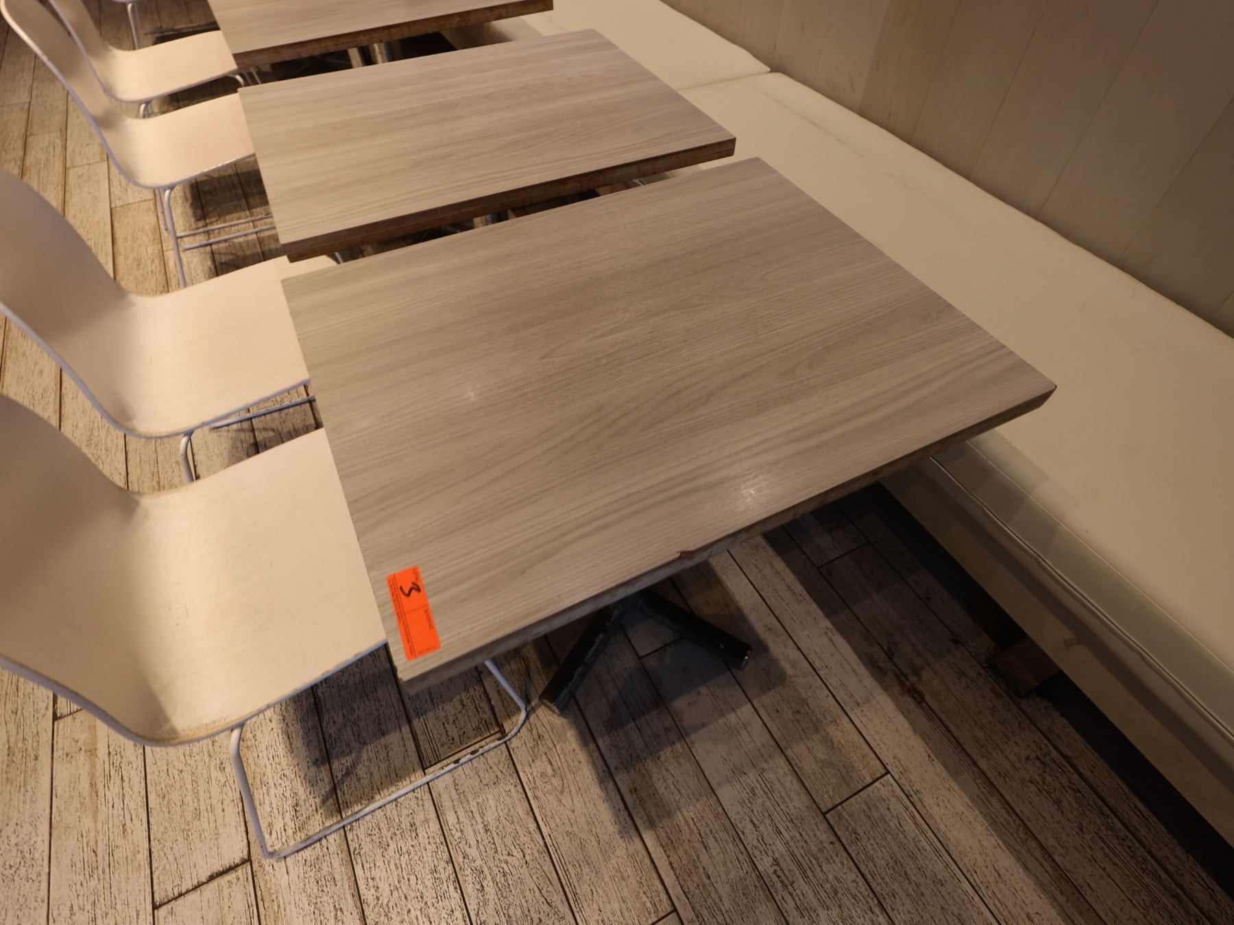 Qty 5 Wooden Tables w/ Pedestal Bases 30" x 30" x 29"H" & 6 Chairs 17" x 30"H