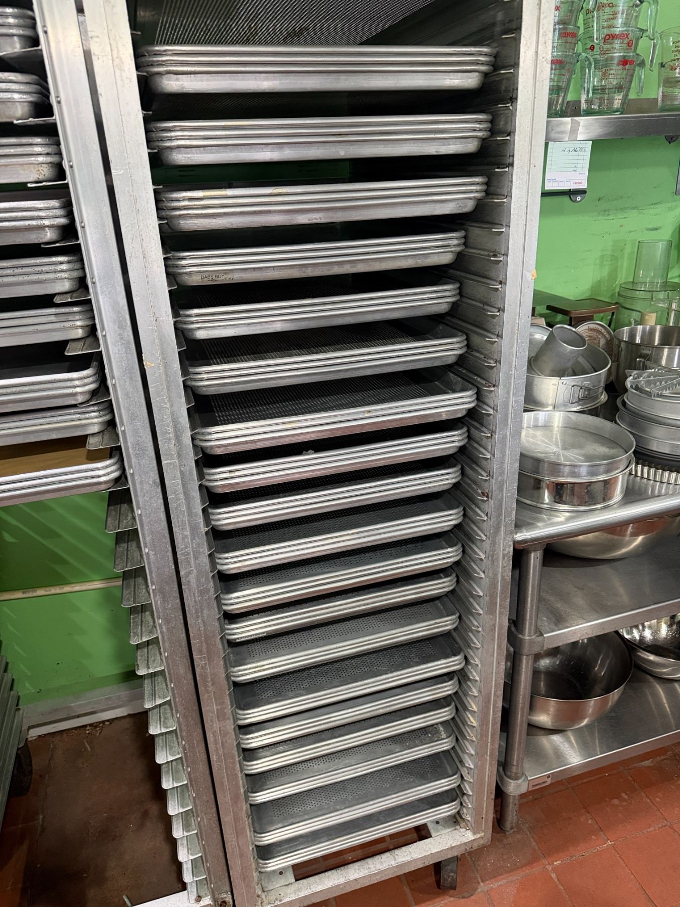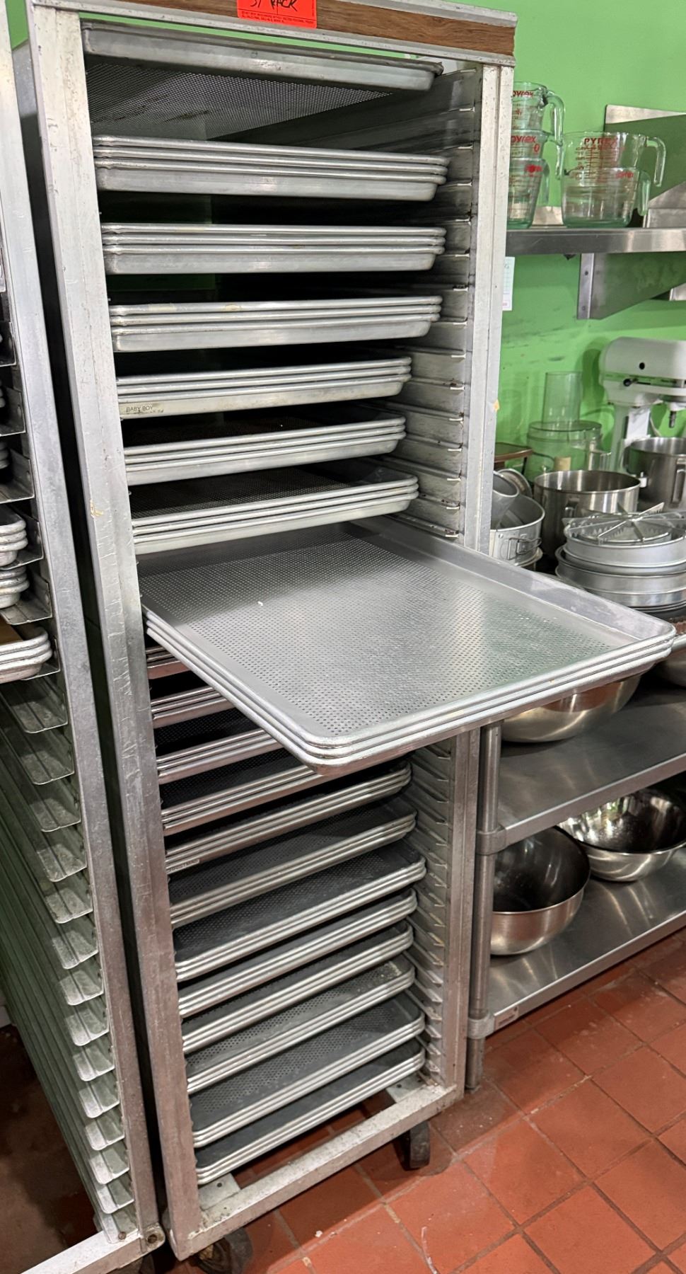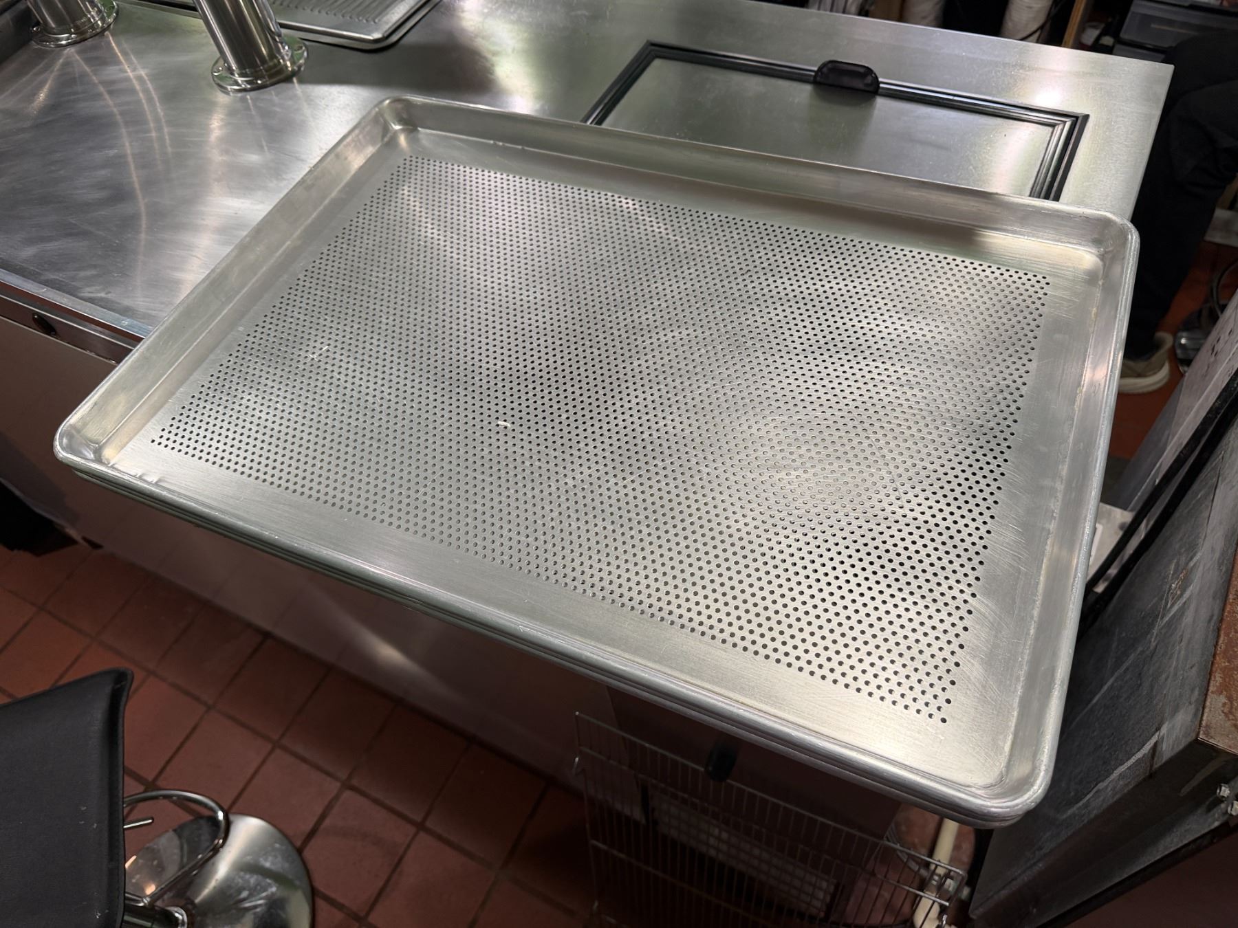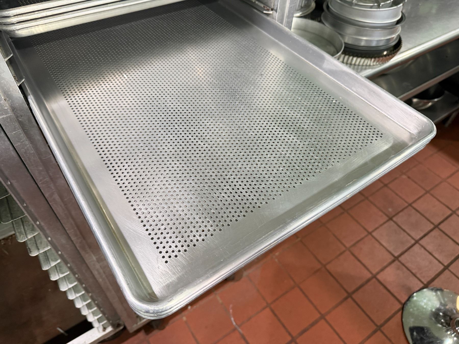 Qty 57 Metal Sheet Pans - Some Perforated 17.5" x 25.5" (rack not included)
