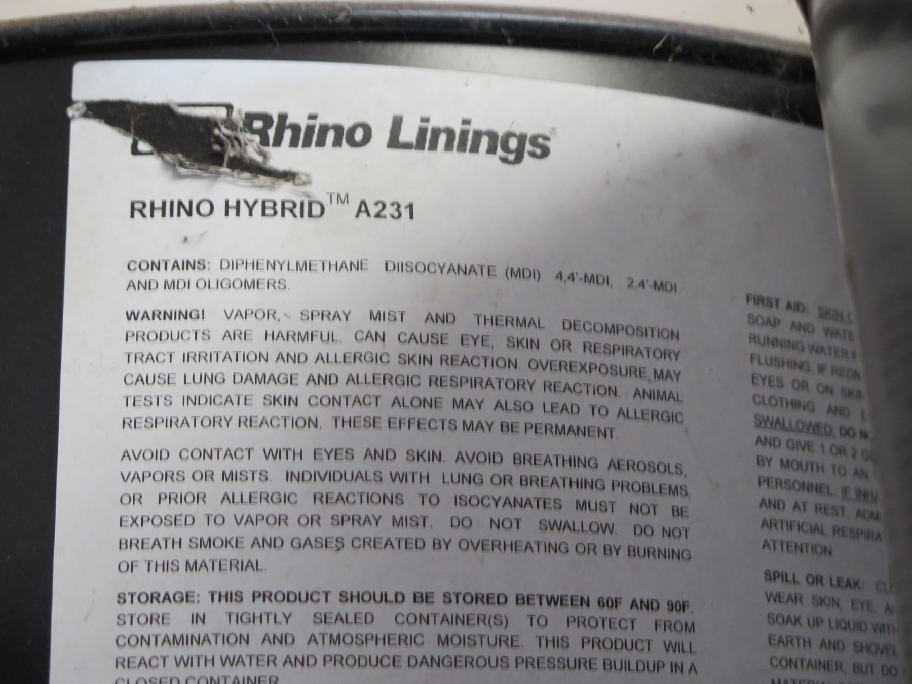 Qty 6 55 Gal Drums Rhino Linings Hybrid HD-55 & A231 Industrial Coatings
