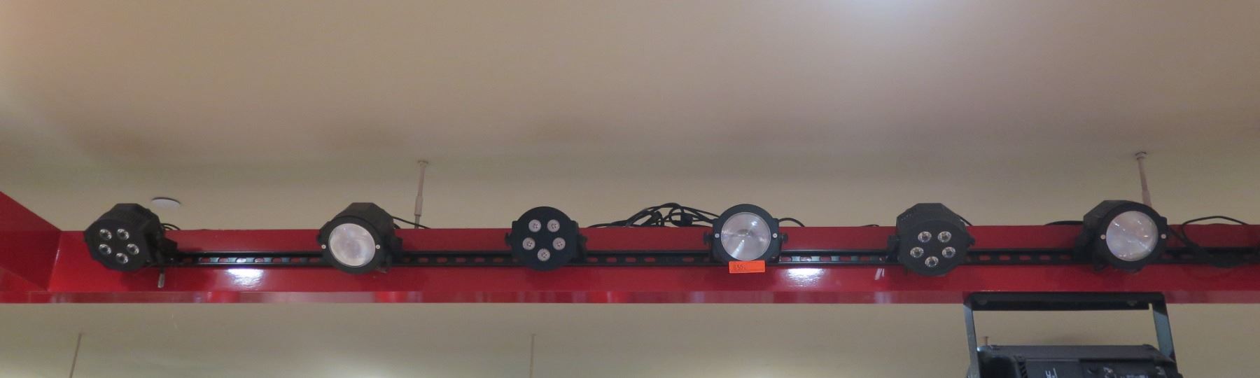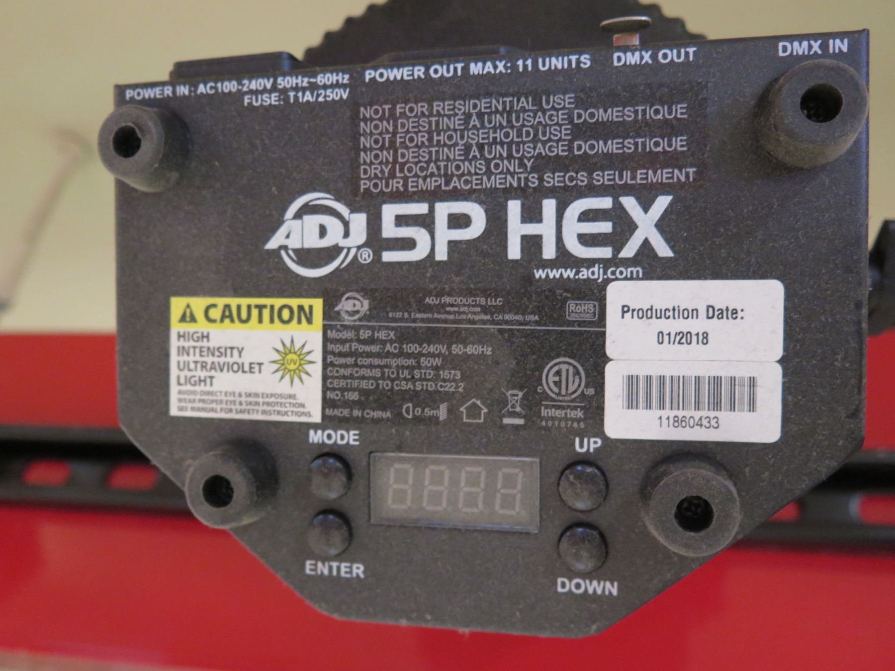 Qty 6 ADJ Round Lamps, Mounted, DOTZ Par & 5P HEX