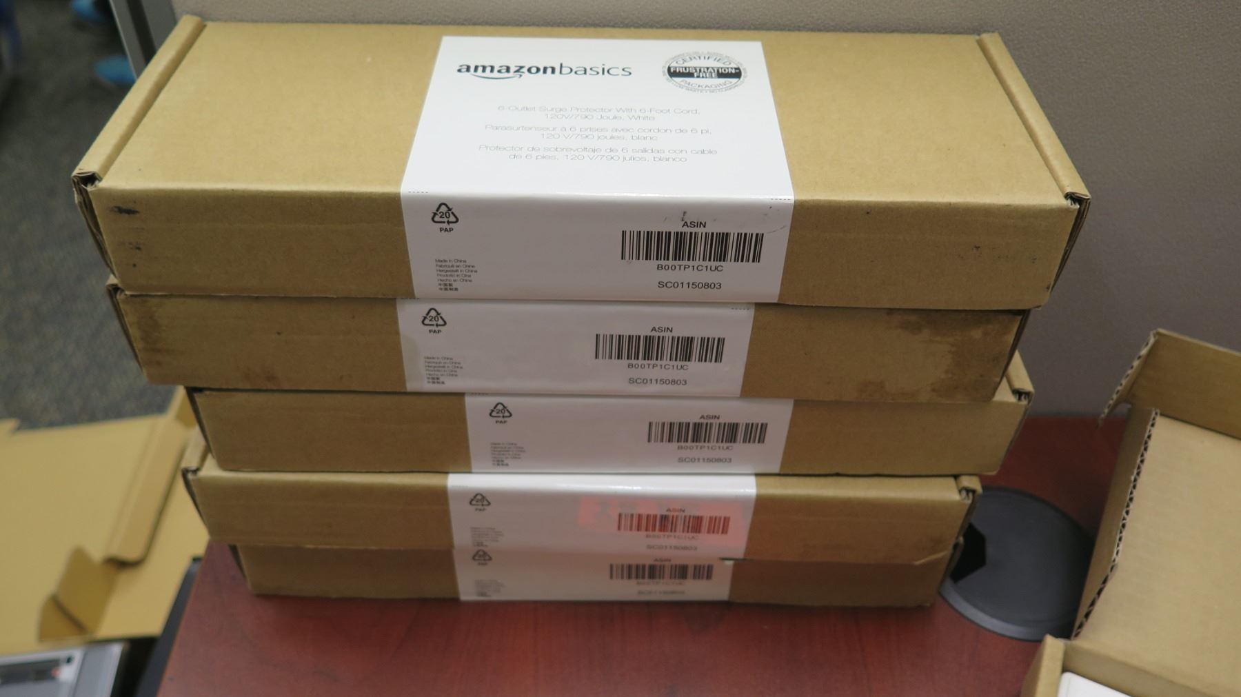 Qty 6 Amazon Basic 6 Outlet Surge Protectors w/ 6' Cord New in Box