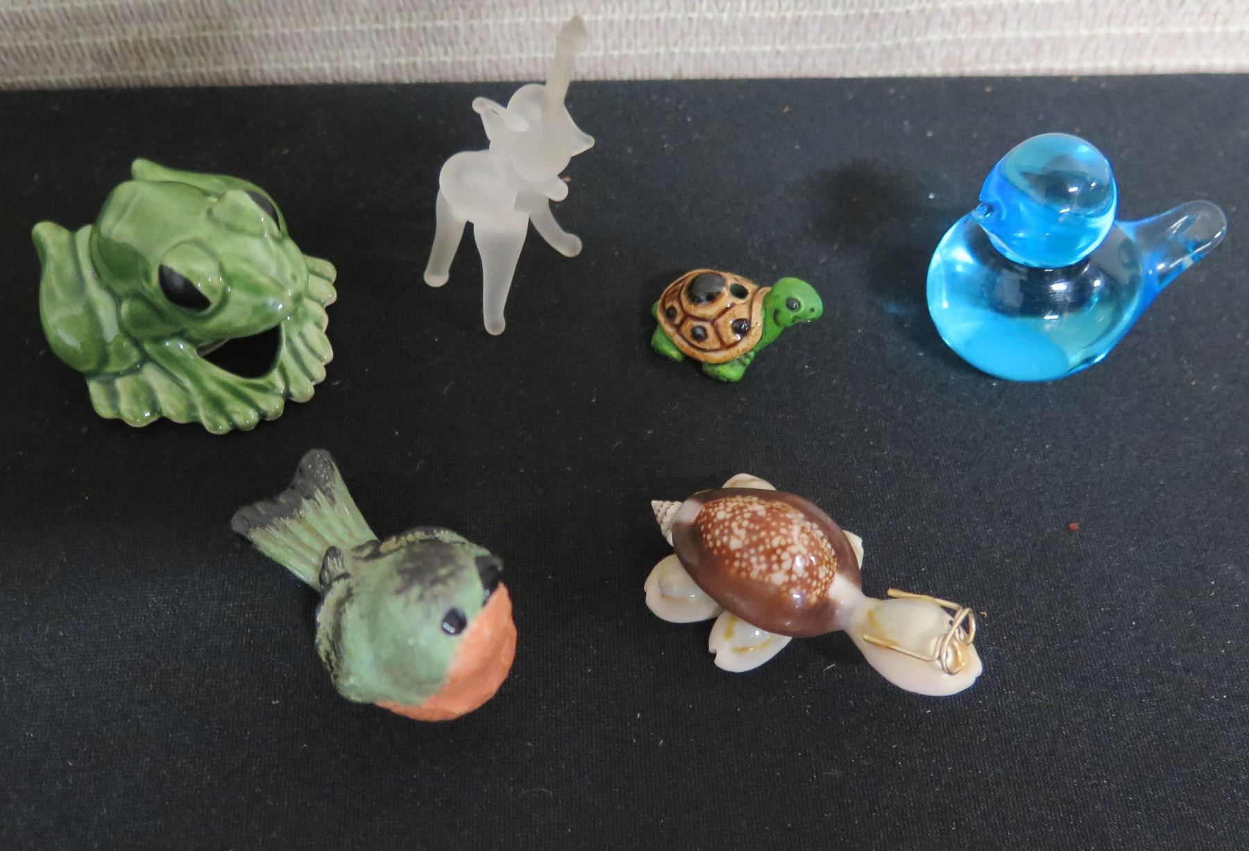 Qty 6 Animal Figurines: Frog, Bird, Turtles, Elephant & Crystal Duck by Larson