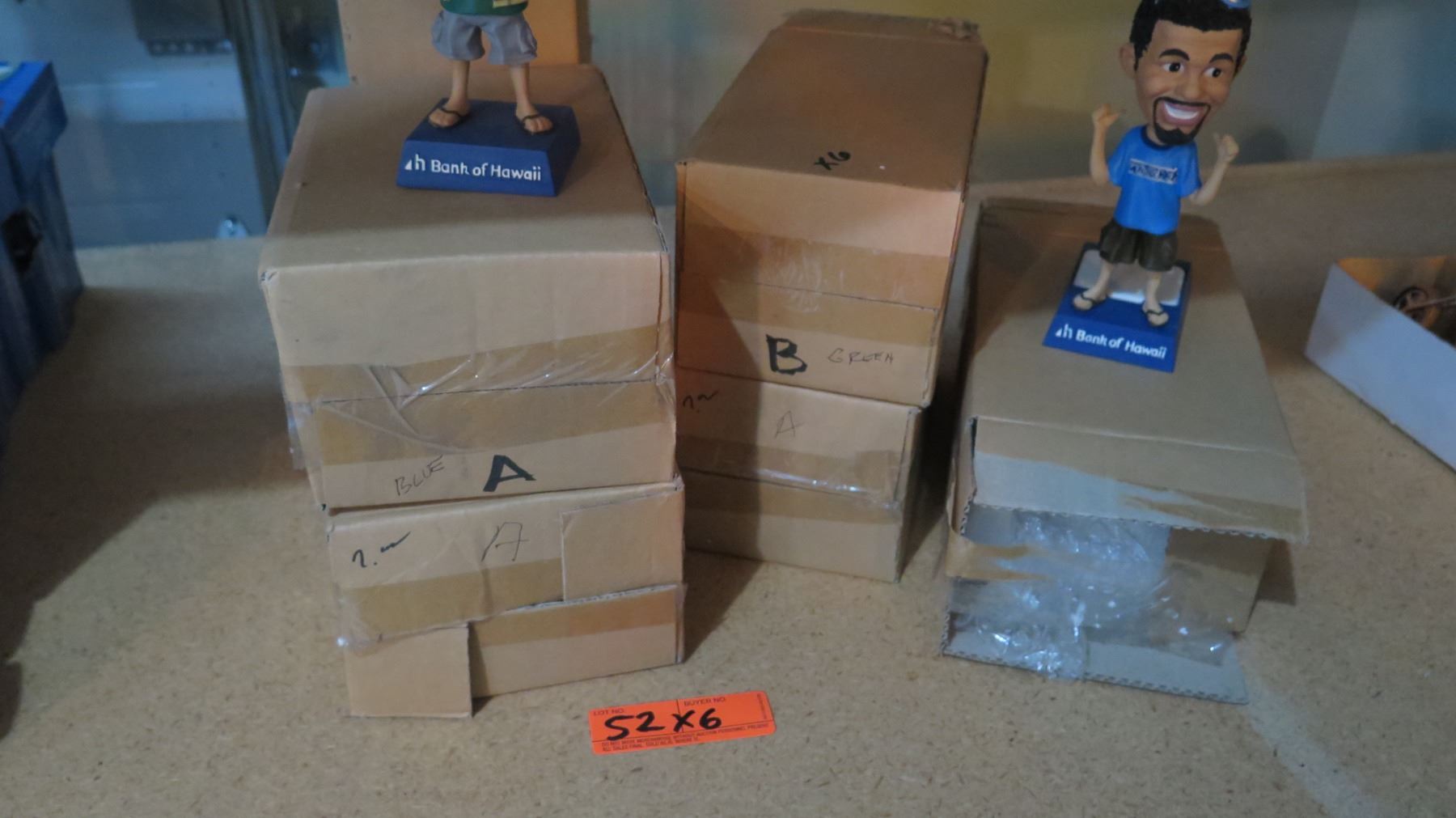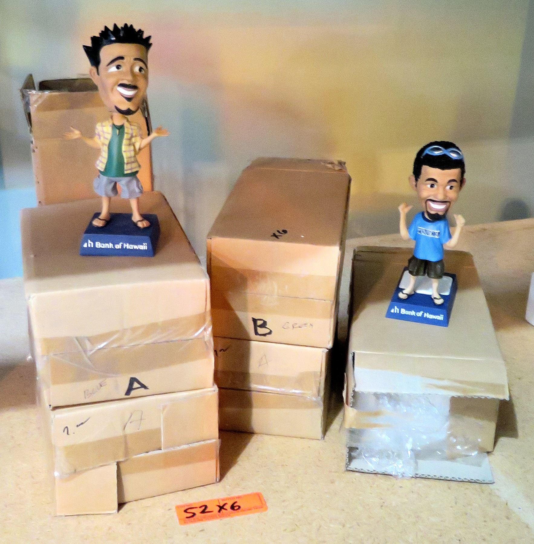 Qty 6 Bank of Hawaii Bobble Head Collectible Figures in Box - 2 Types