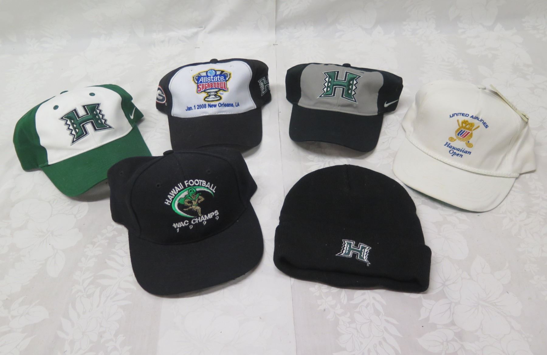 Qty 6 Baseball Caps: University of Hawaii, Allstate Sugar Bowl, Hawaiian Open, etc