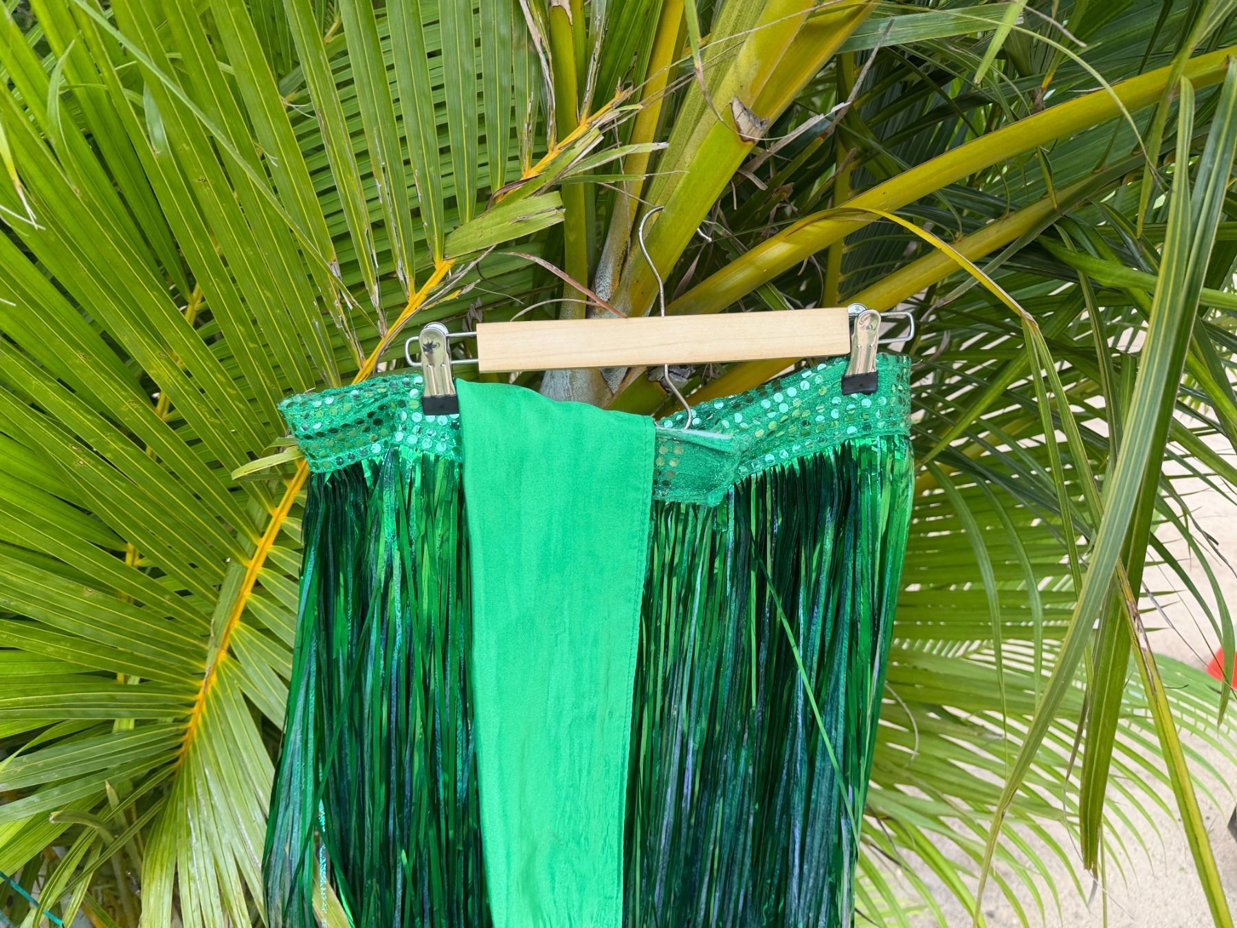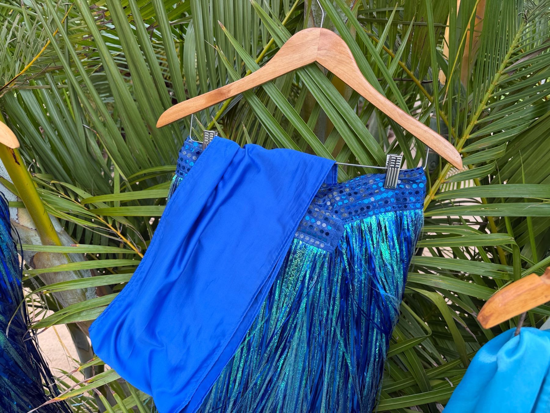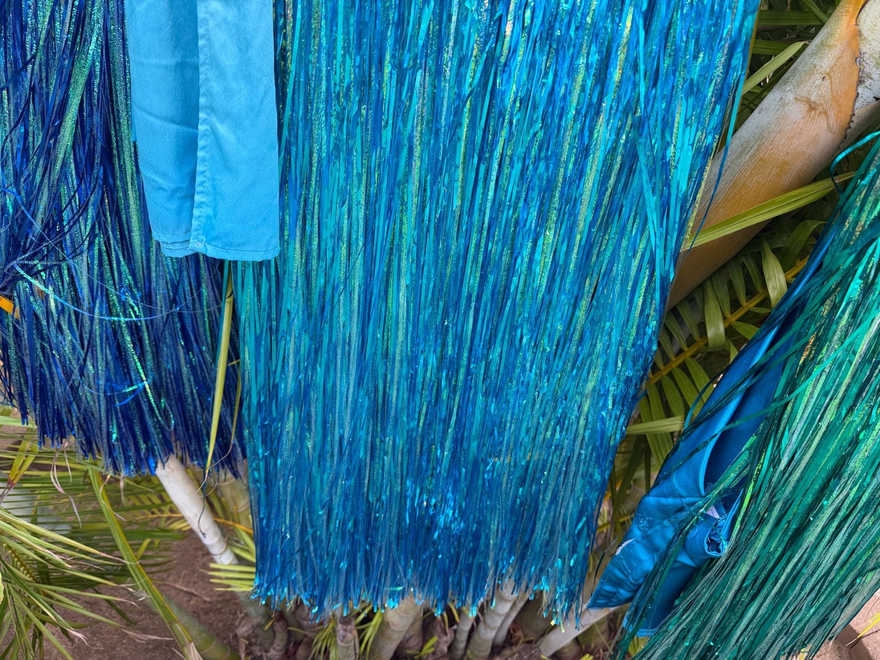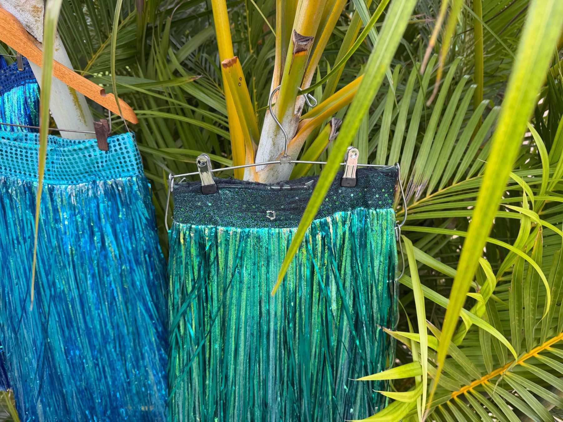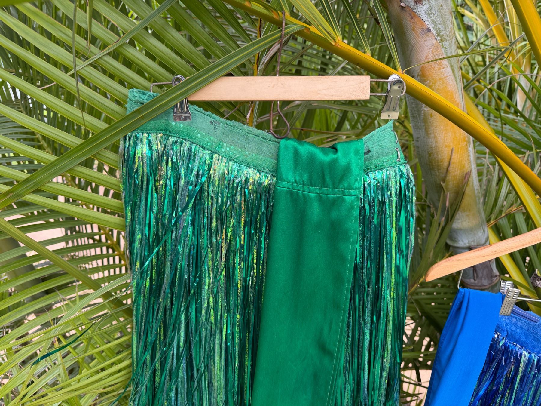 Qty 6 Blue and Green Metallic Artificial Grass Hula Skirts