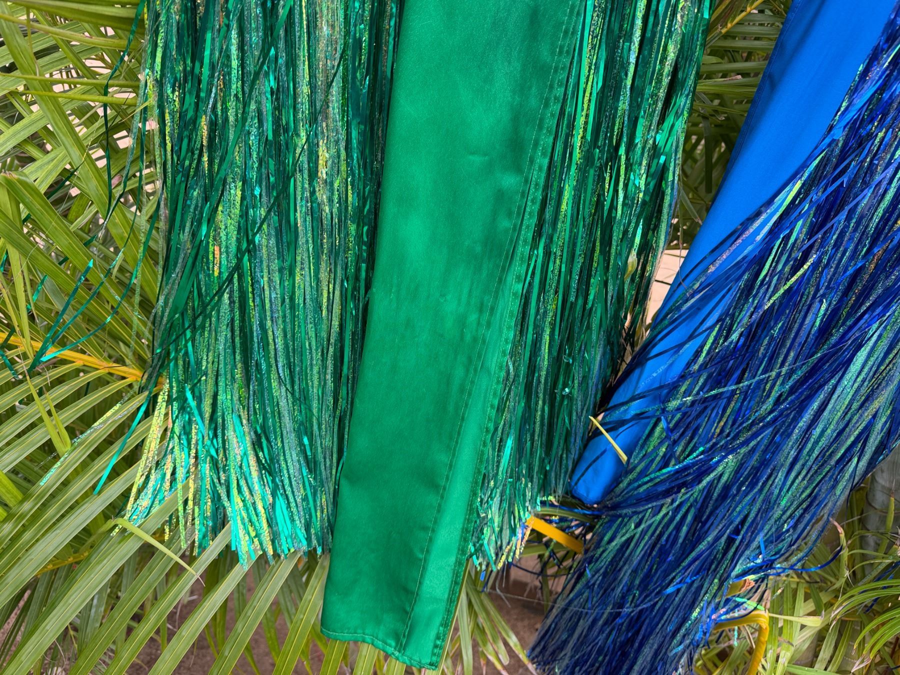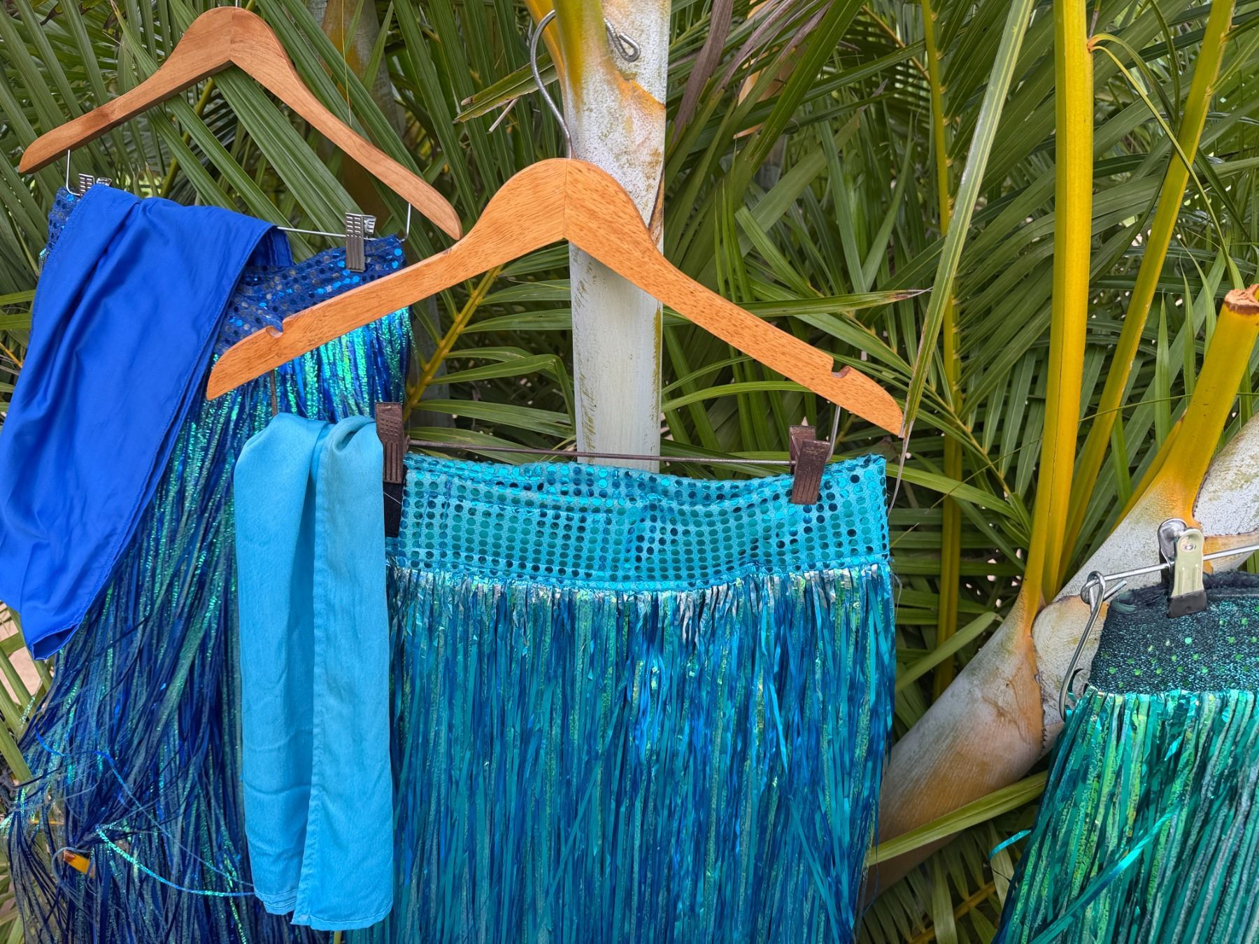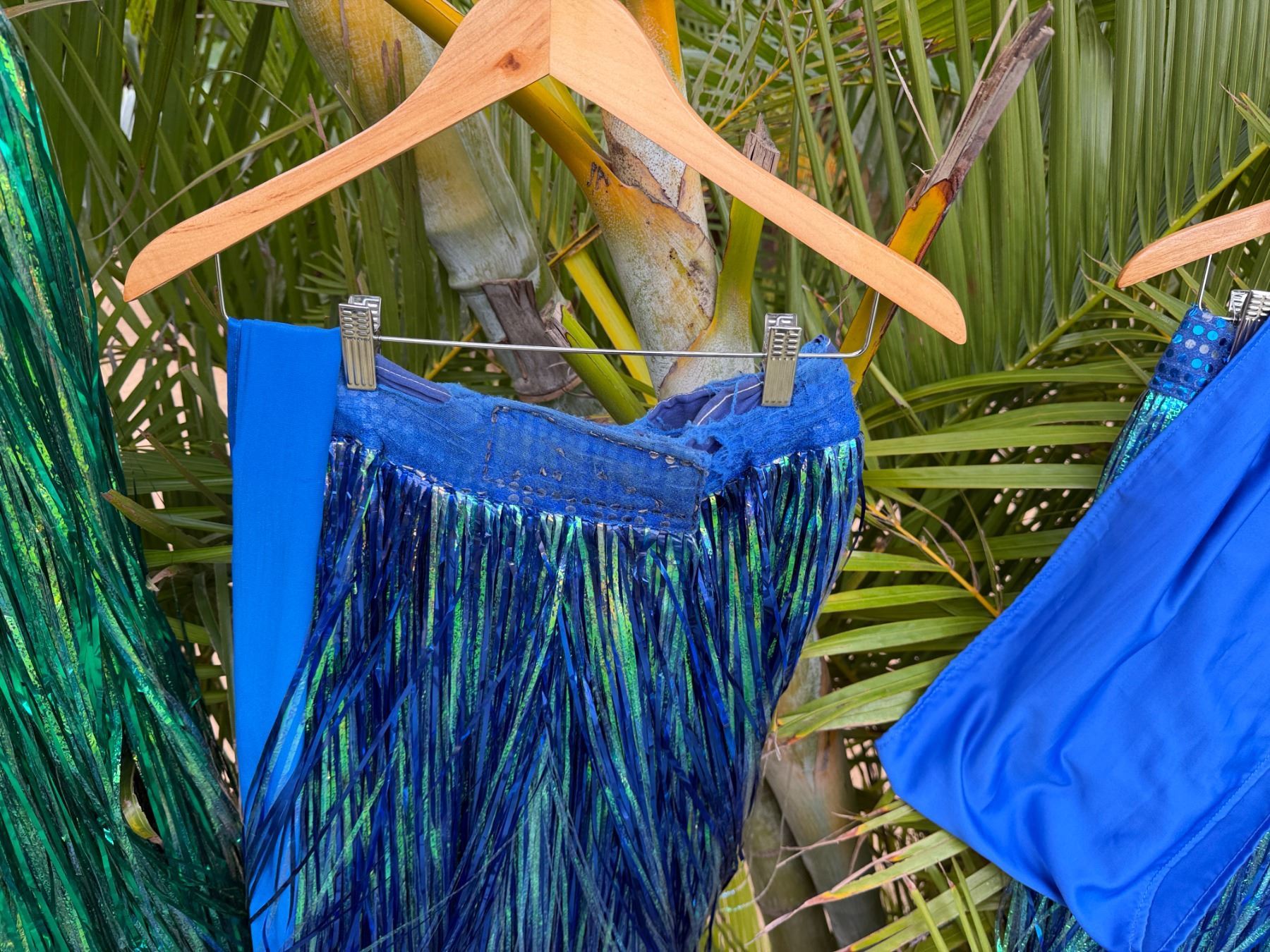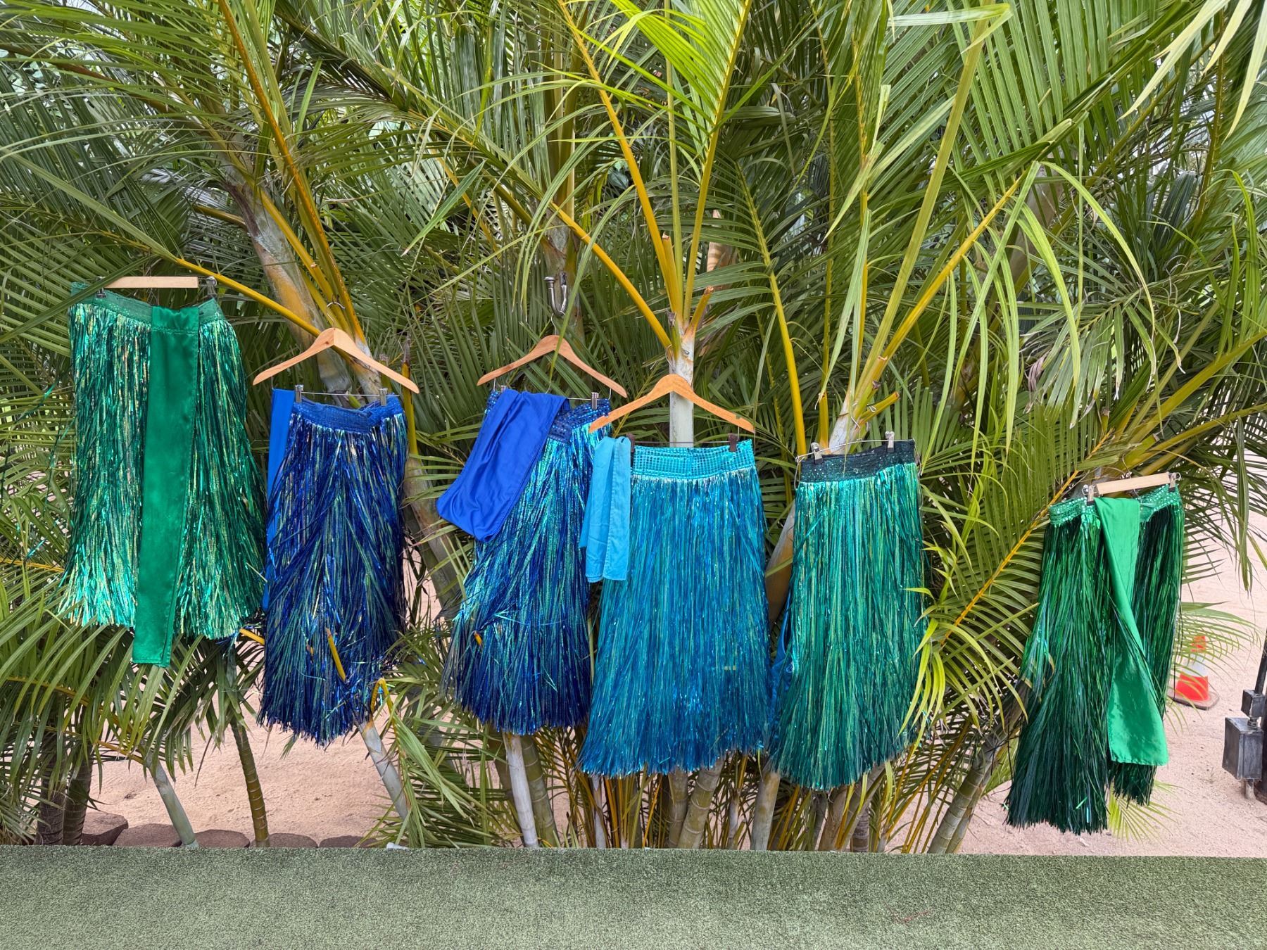 Qty 6 Blue and Green Metallic Artificial Grass Hula Skirts