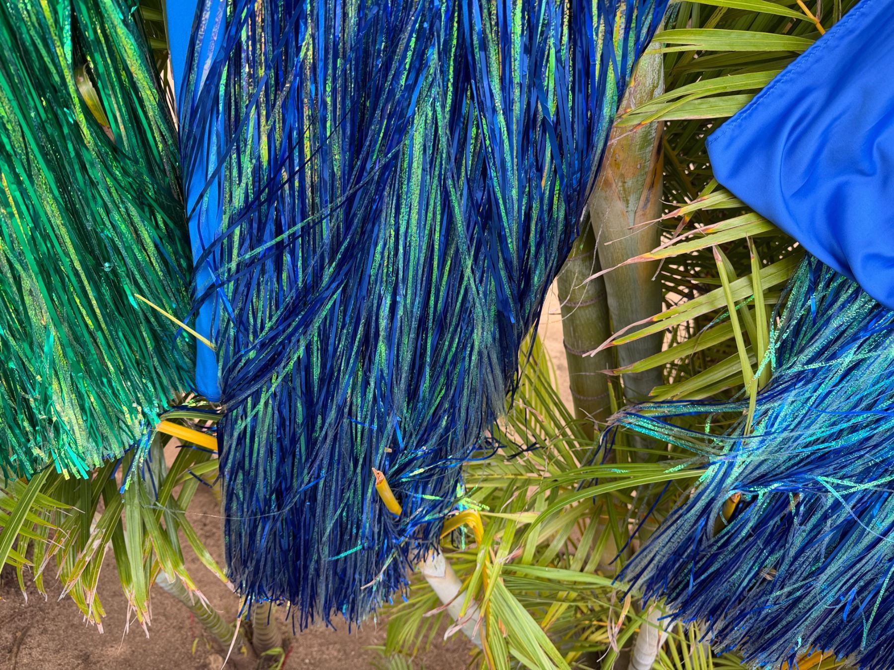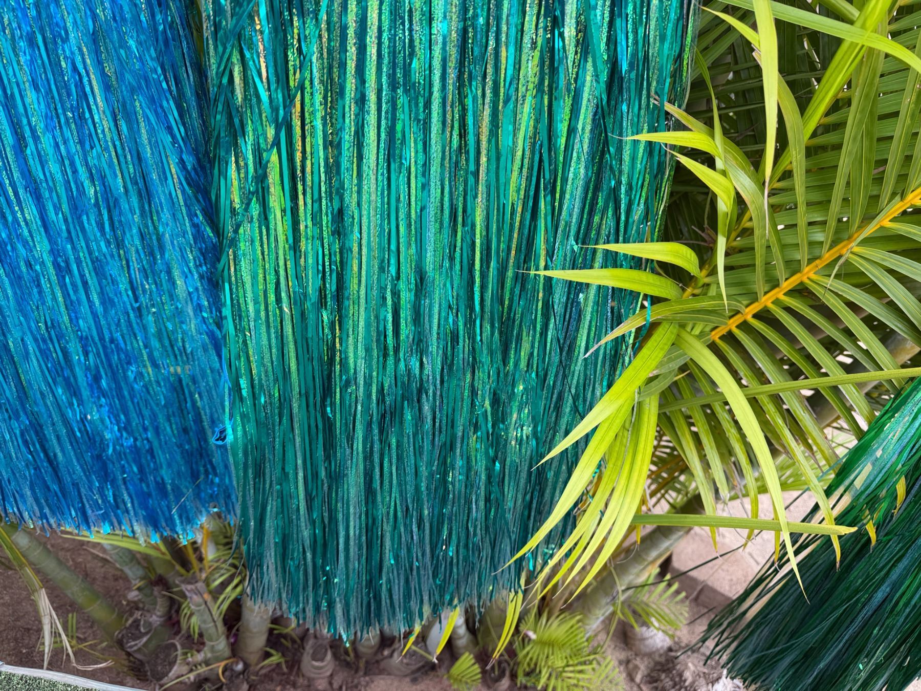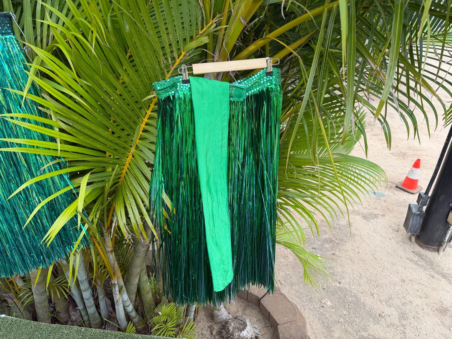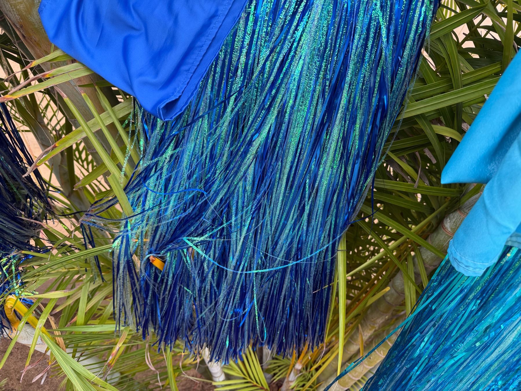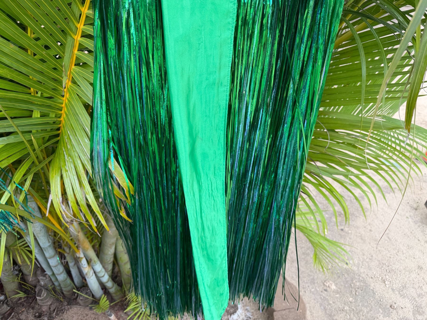 Qty 6 Blue and Green Metallic Artificial Grass Hula Skirts