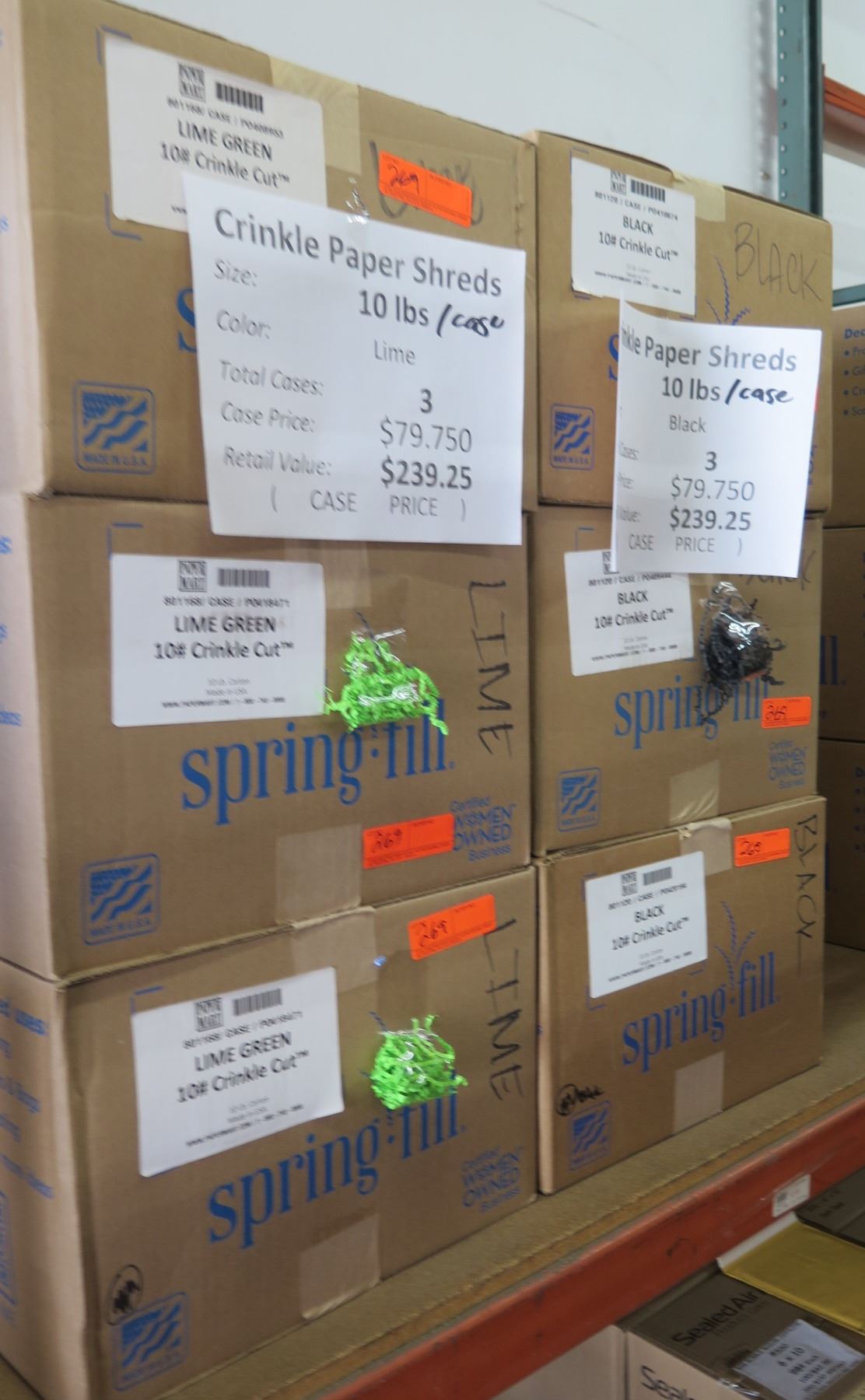 Qty 6 Boxes (10lbs. ea) Crinkle Paper Shreds Assorted Colors Retail $478
