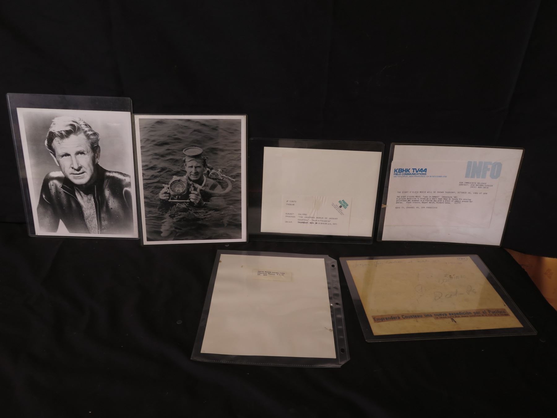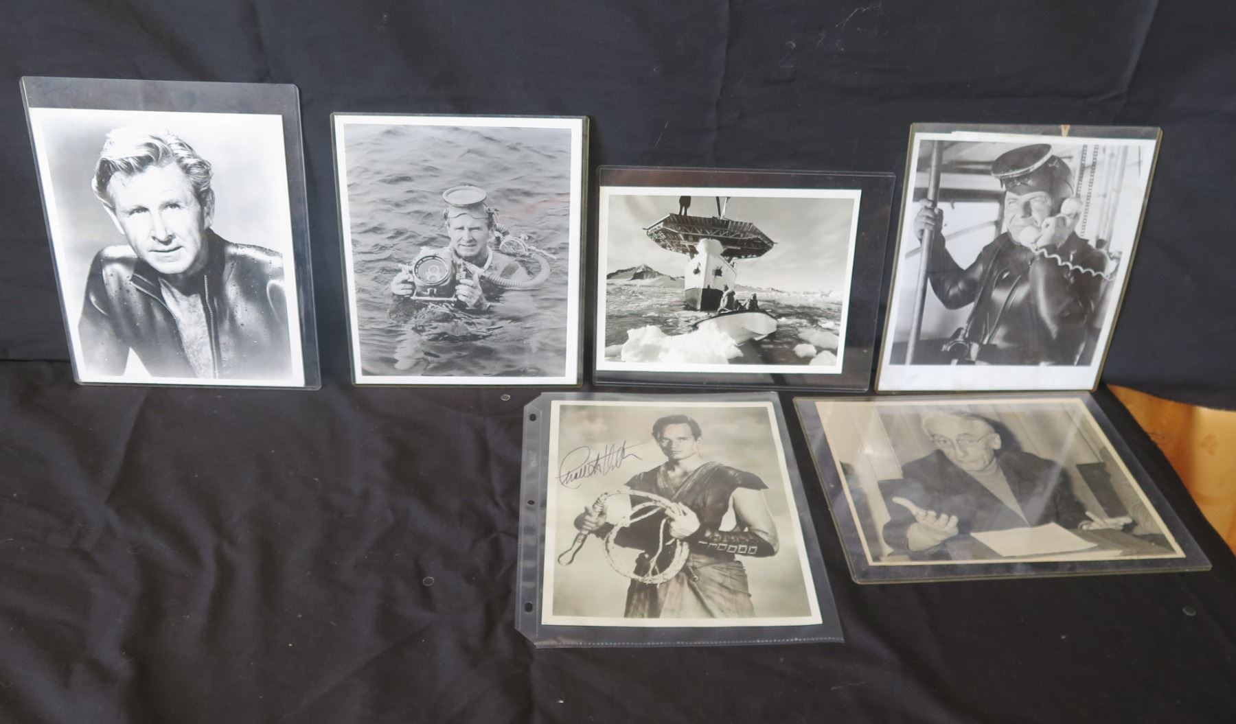 Qty 6 Celebrity Photos: Frank Sinatra, Lloyd Bridges, Charlton Heston, Jacques Cousteau, Some Signed