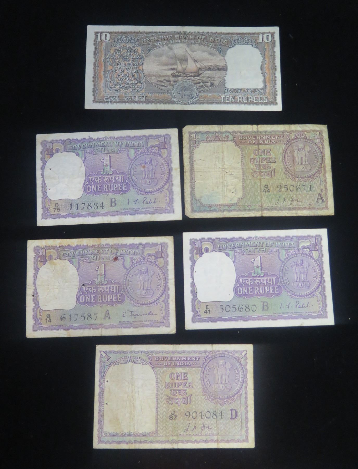 Qty 6 Collectible Bills Reserve Bank & Government of India Rupee Misc Value
