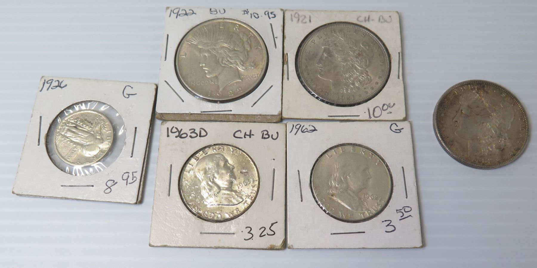 Qty 6 Collectible Coins: 1921, 1926, 1962, 1963 & Loose 1882 Dollar