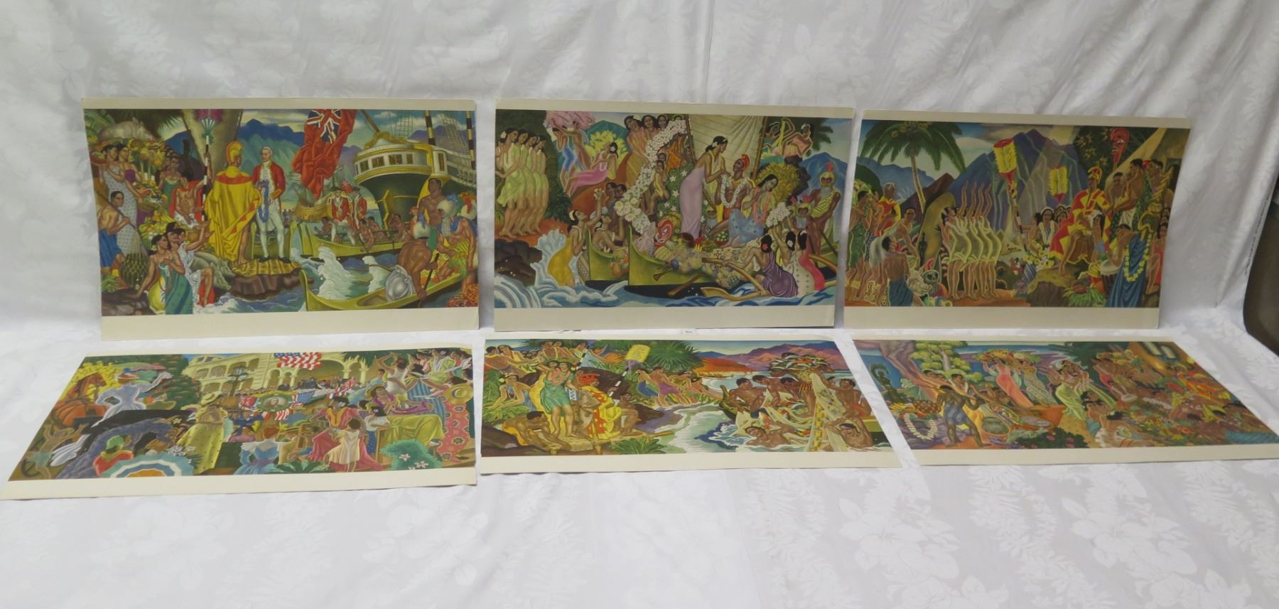 Qty 6 Complete Set Unfolded Hawaii Artwork w/ Info by Eugene Savage 21"x14"