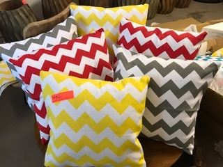 Qty 6 Decorative Pillows: Geometric Zig Zag (Red, Yellow & Gray - 3 pairs) just added 1/30/17 11:21p