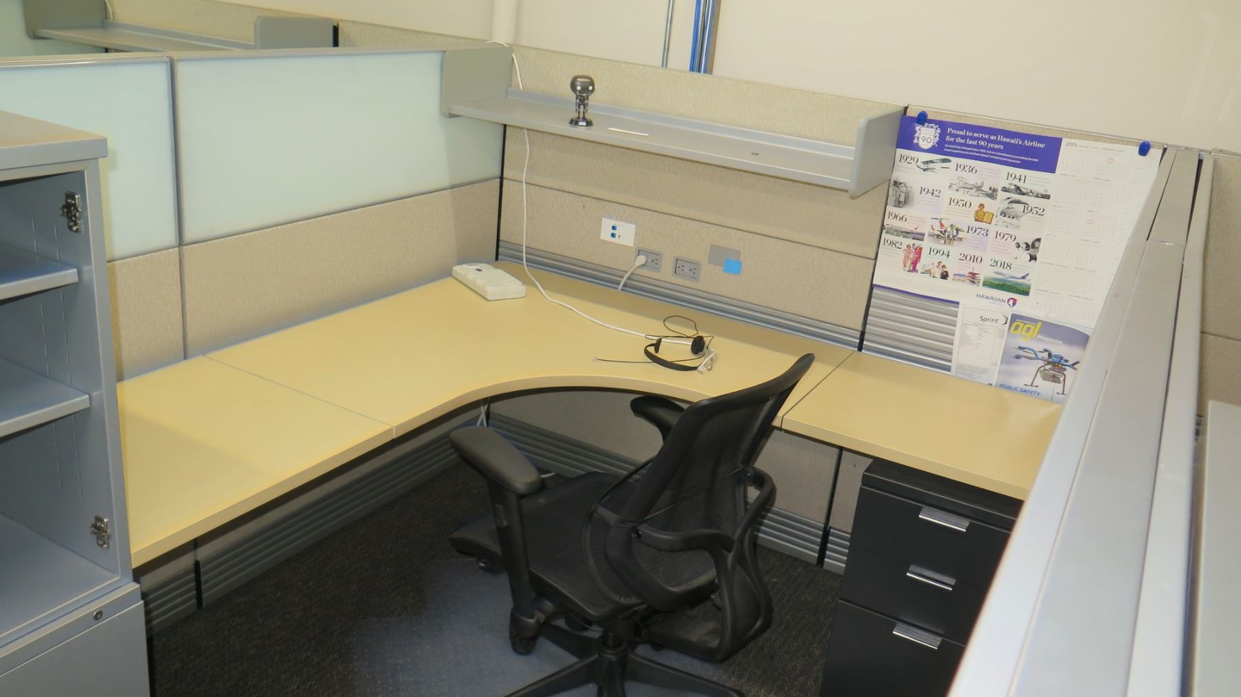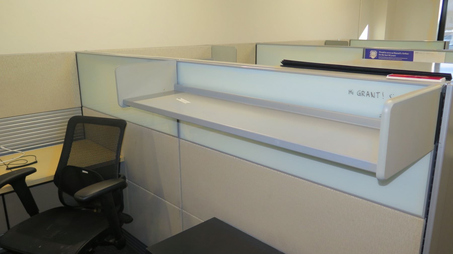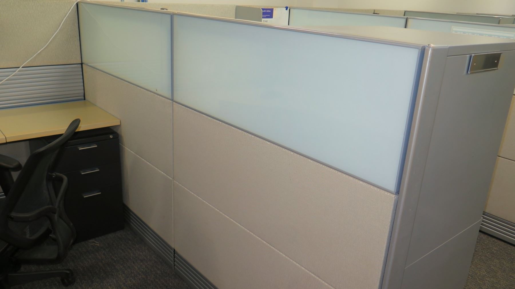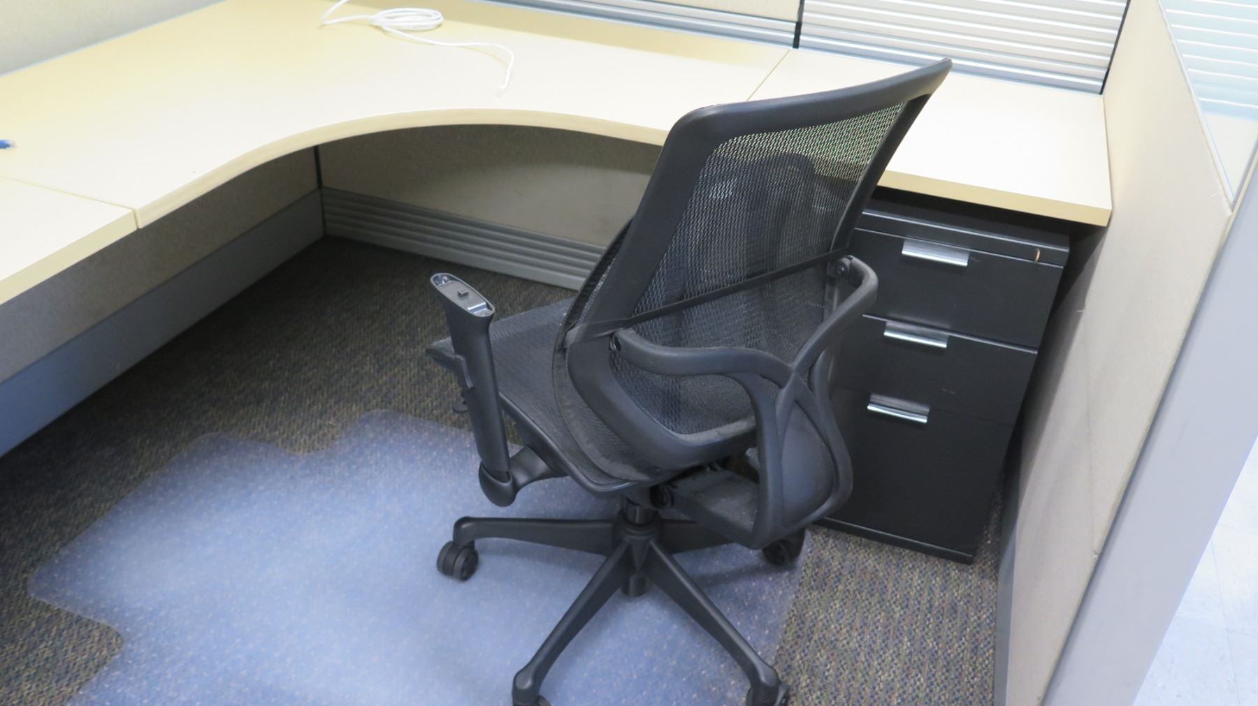 Qty 6 Desks w/ Rolling Chairs, Filing Cabinets & Cubicle Walls (Buyer Needs to Disassemble)