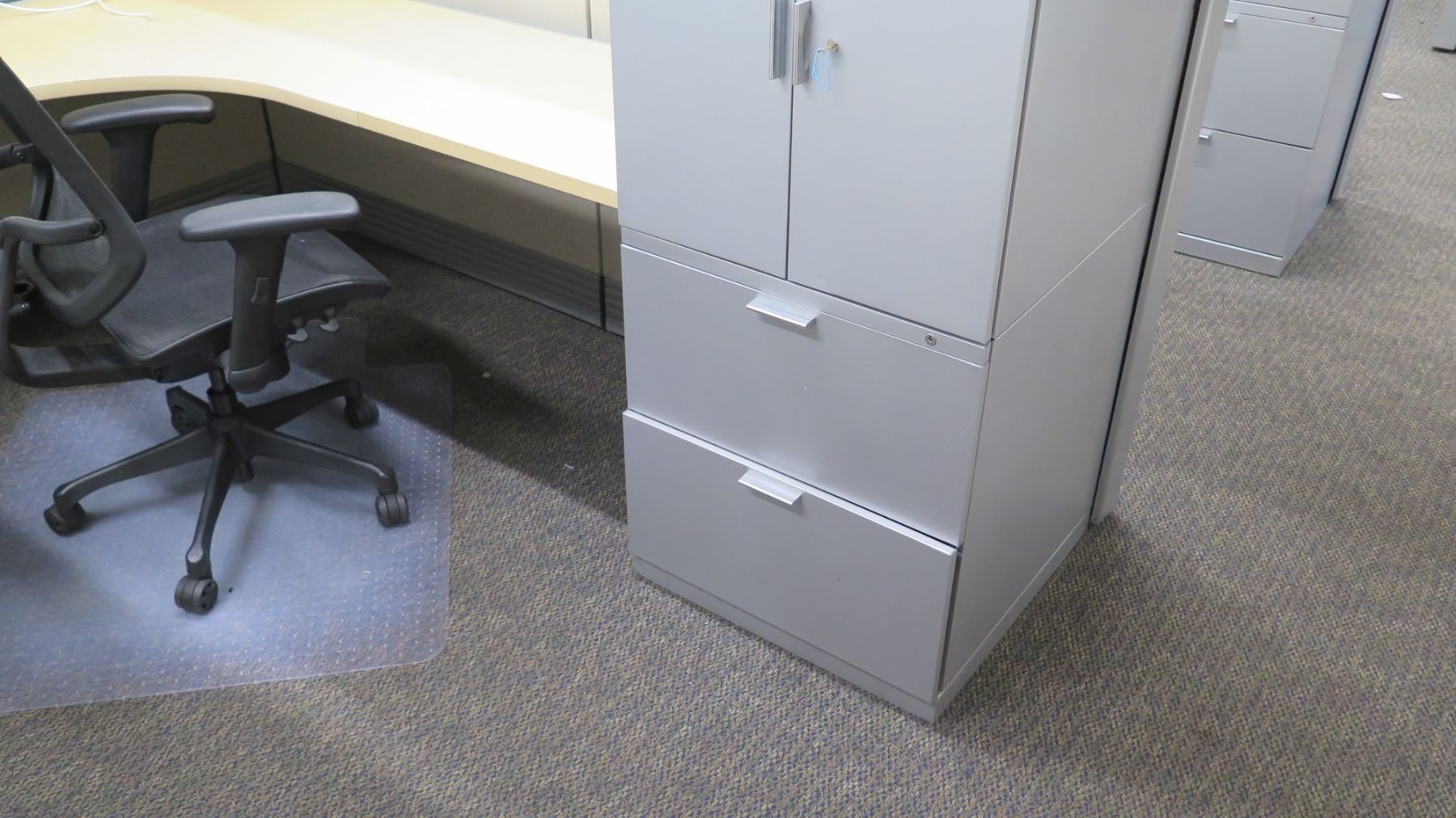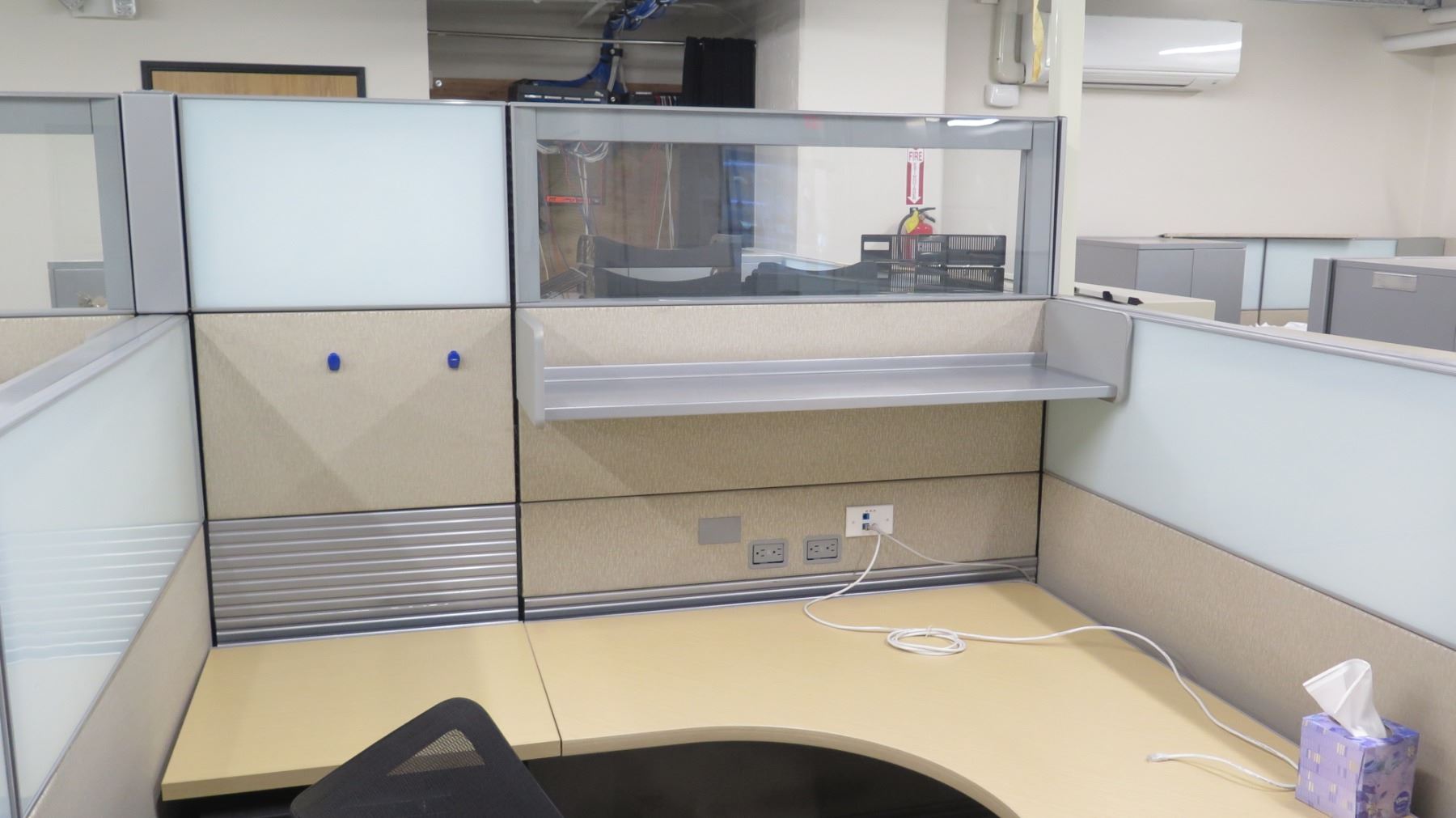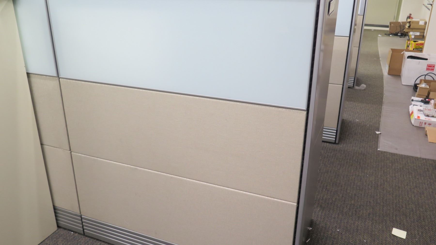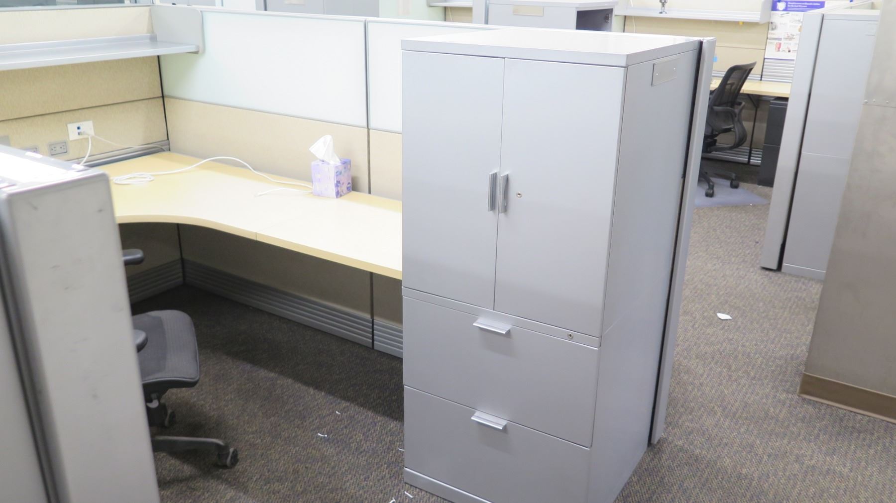 Qty 6 Desks w/ Rolling Chairs, Filing Cabinets & Cubicle Walls (Buyer Needs to Disassemble)