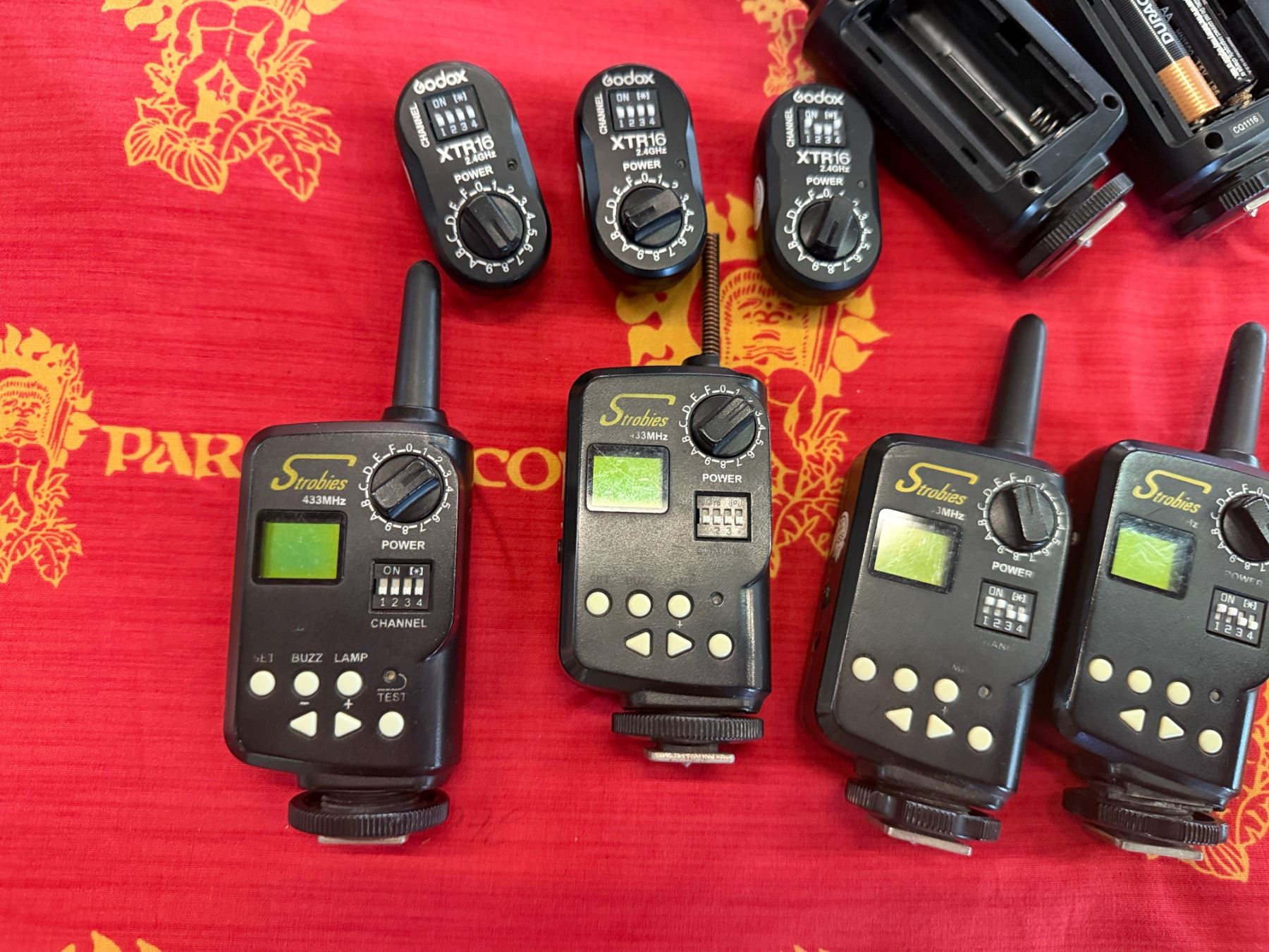 Qty 6 Interfit Strobies & 3 Godox XTR16 Wireless Flash Triggers. Untested - As Is.