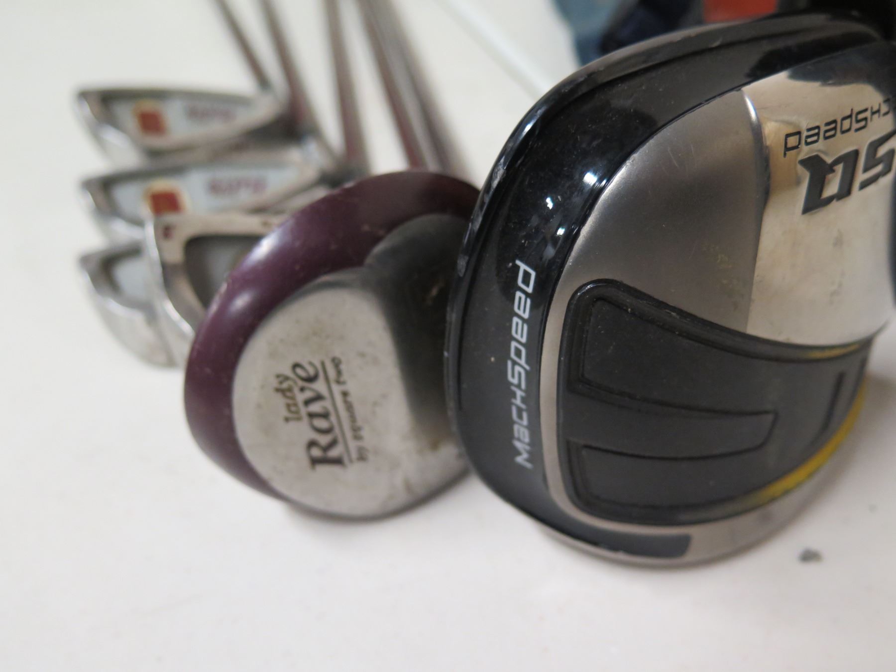 Qty 6 Lady Rave & SQ Machspeed Golf Clubs & Golf Caddy Bag