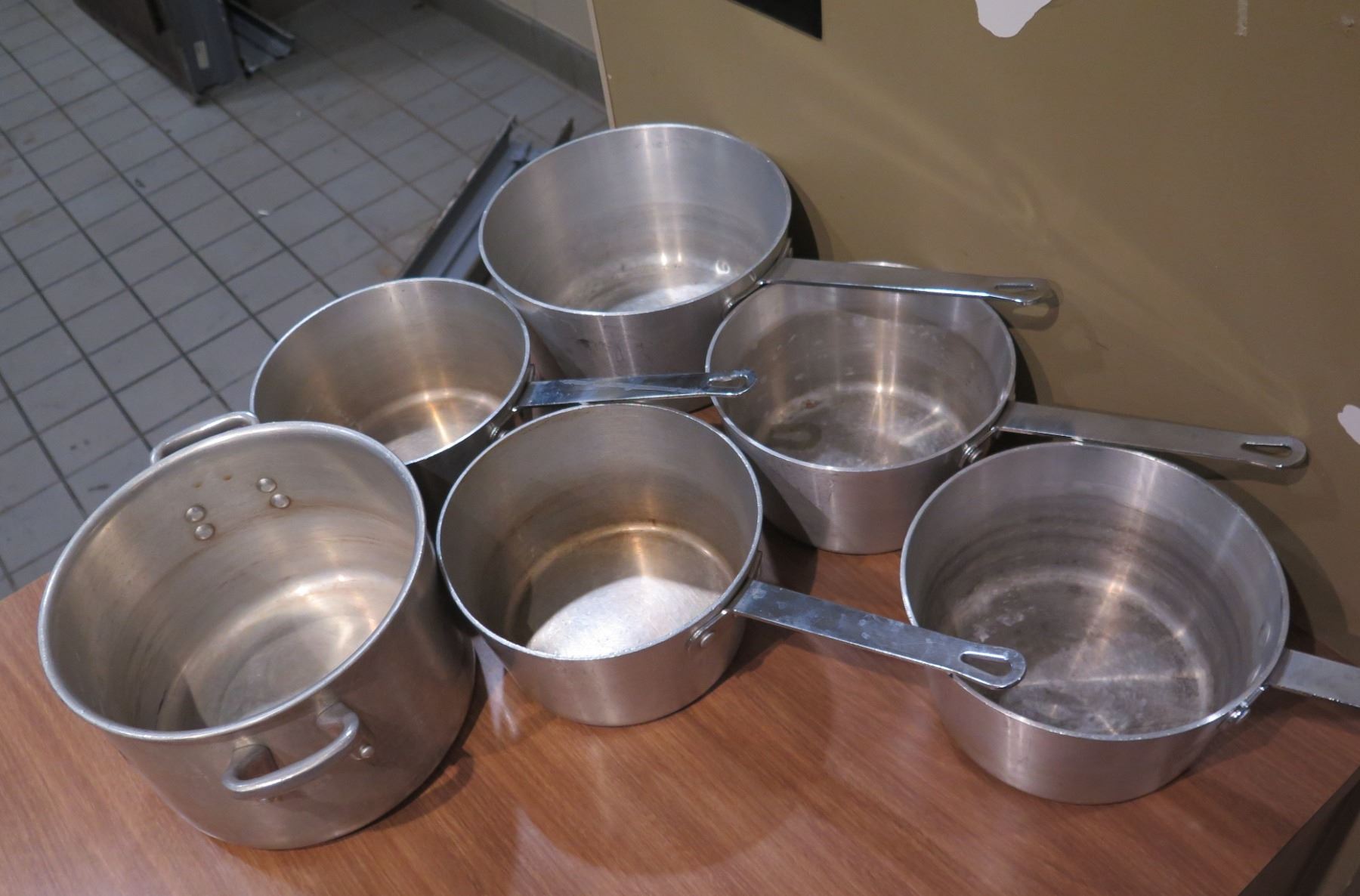 Qty 6 Large Thermalloy Sauce Pots w/ Handles, Misc Sizes