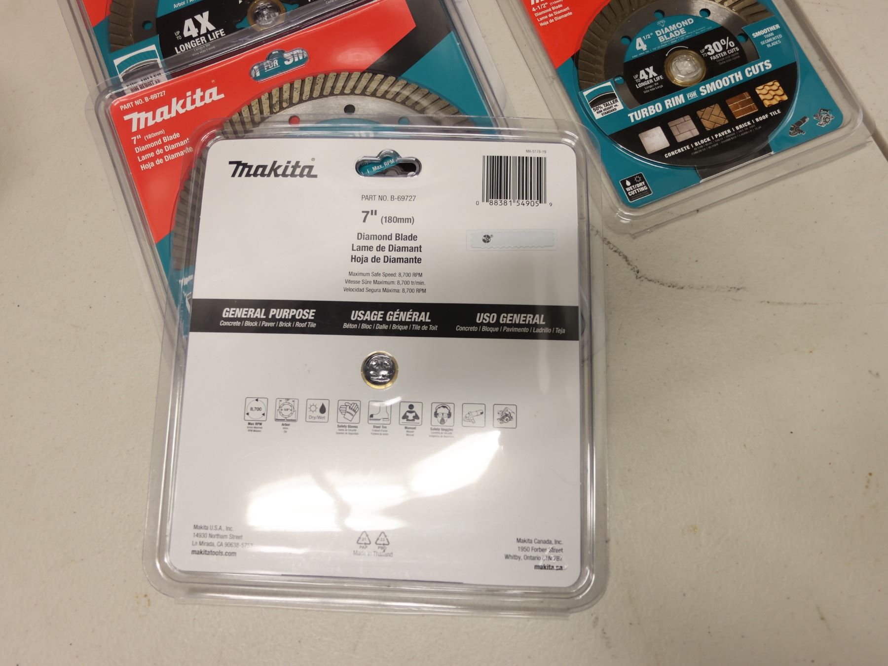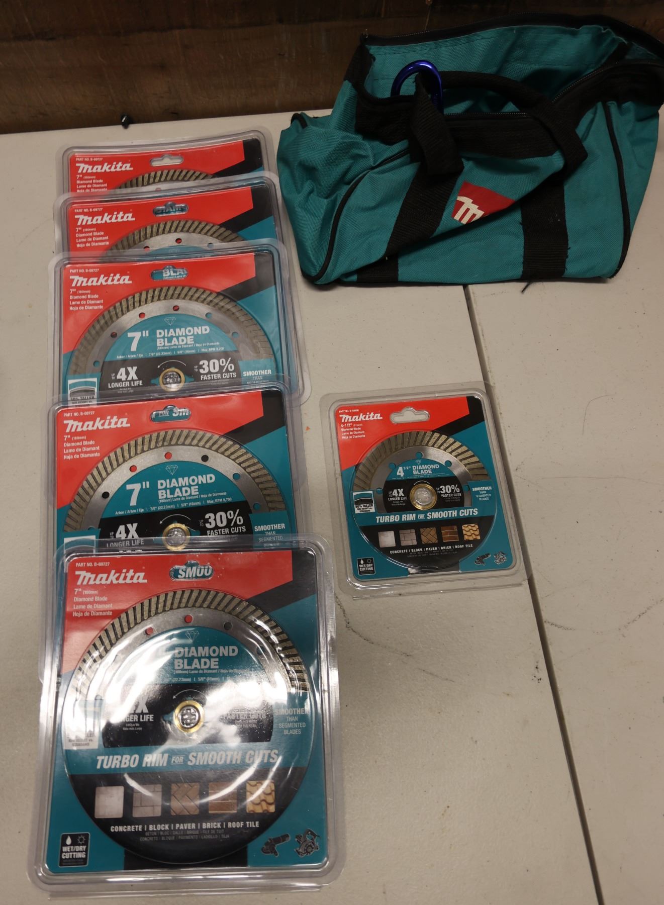 Qty 6 Makita Circular Saw Blades, Misc Sizes, in Carry Case