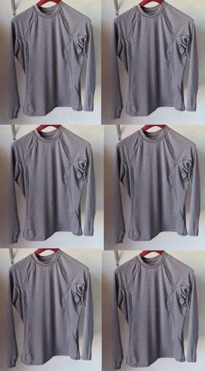 Qty 6 Mens Performance Fit Long Sleeve Lycra UV Tops, Heather Grey, Size S