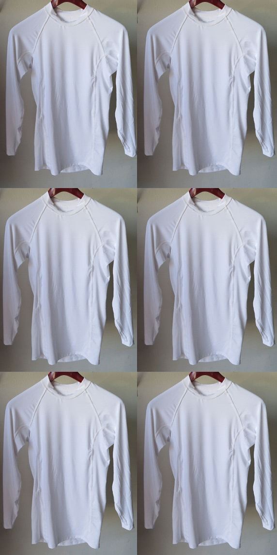 Qty 6 Mens Performance Fit Long Sleeve Lycra UV Tops, White, Size L