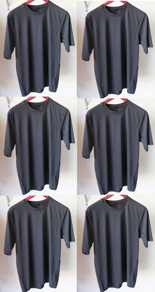 Qty 6 Mens Relaxed Fit Short Sleeve Lycra UV Tops, Black, Size S