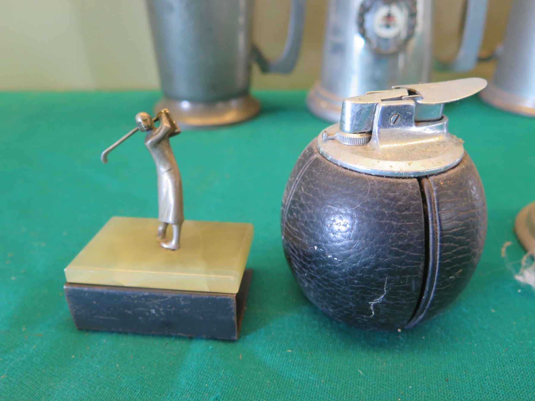 Qty 6 Metal Billiards Pool Themed Beer Steins, Pen Set, Lighter, etc