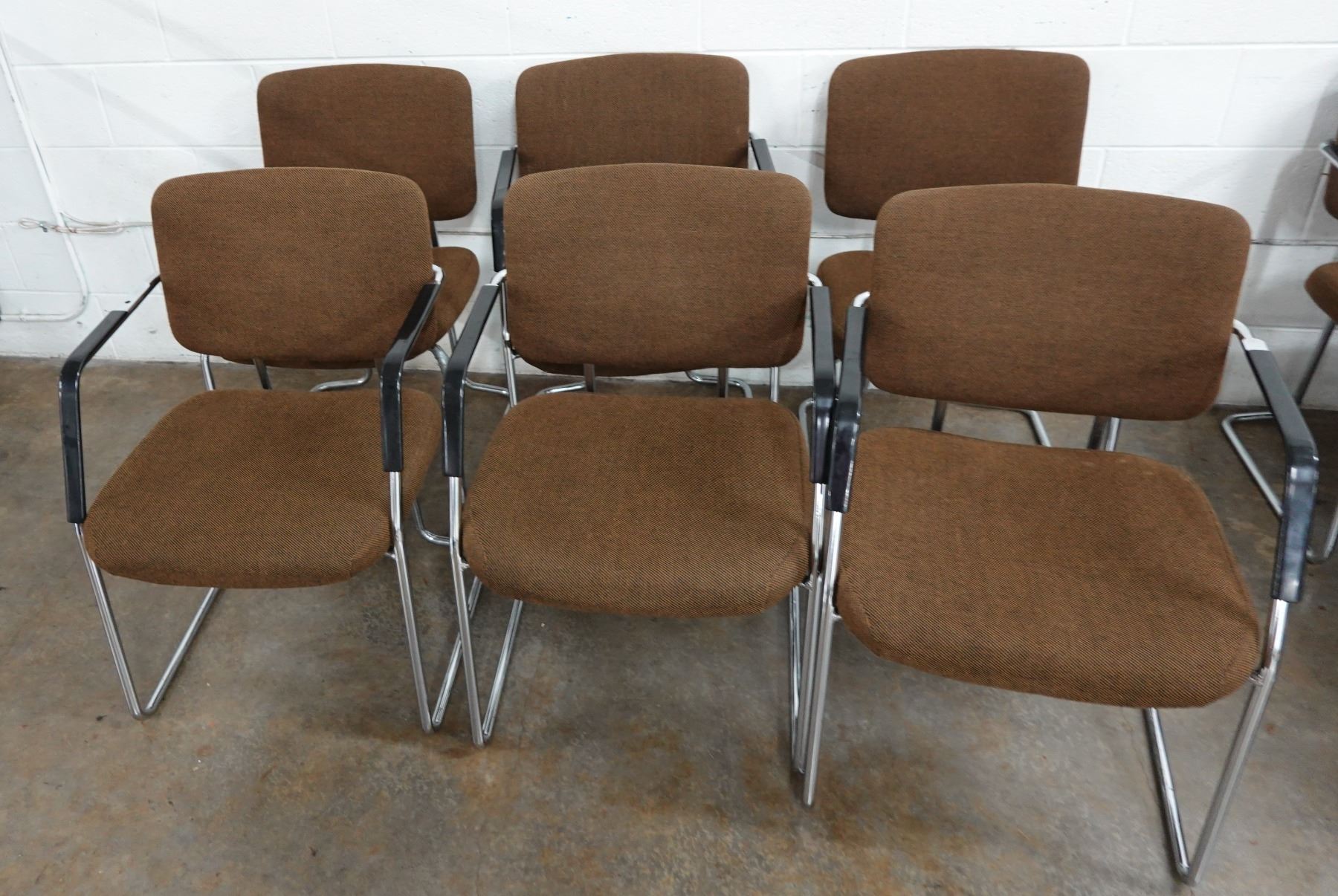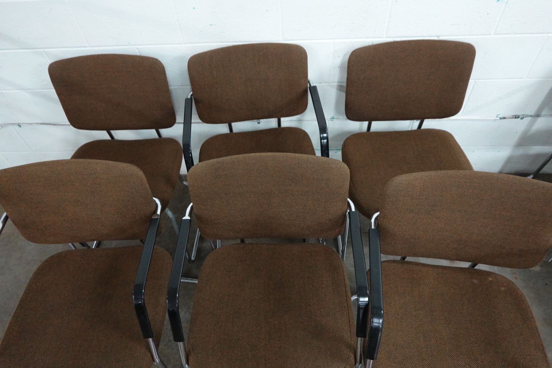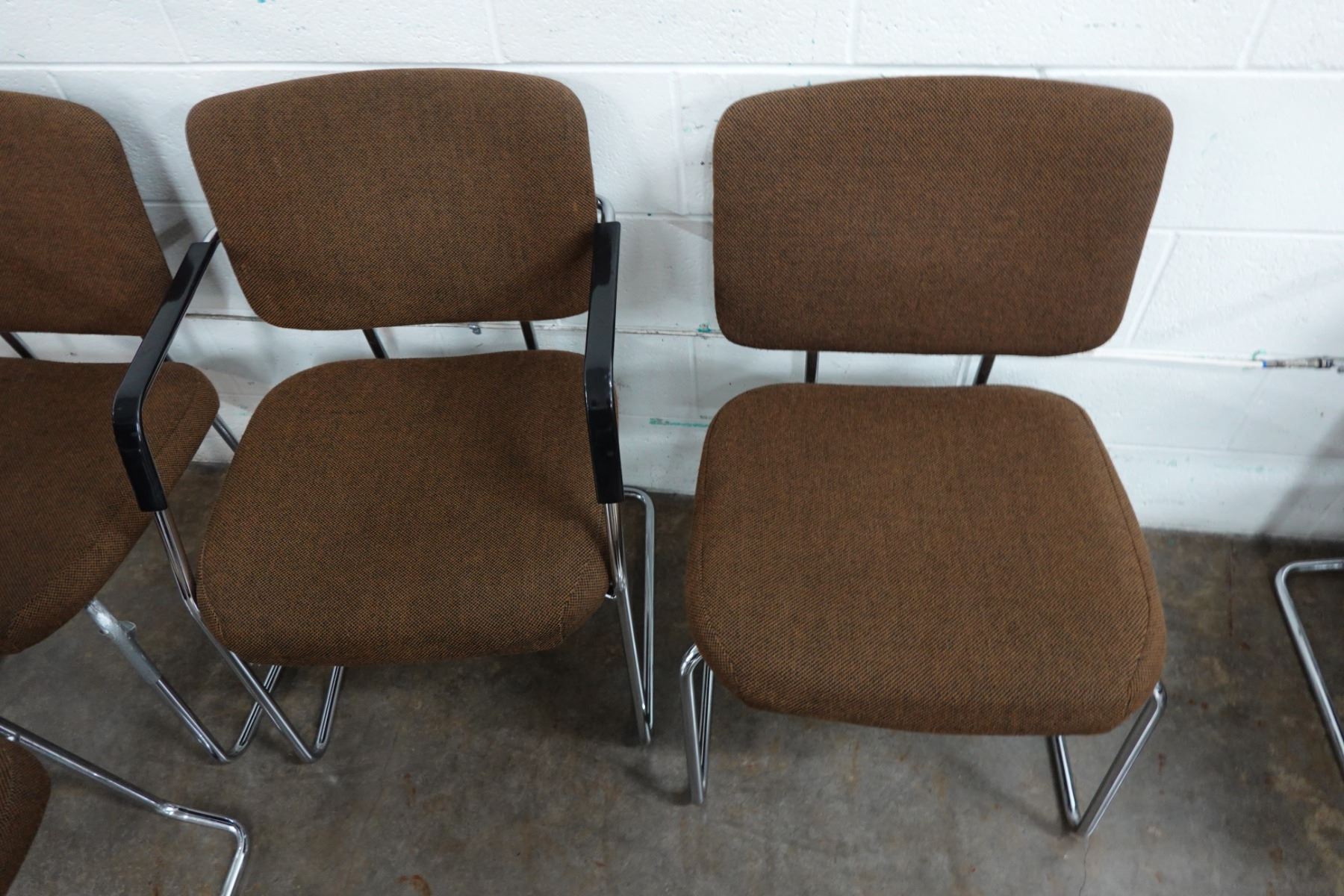 Qty 6 Metal Chairs w/ Upholstered Seats & Backs 21" x 19" x 32"H