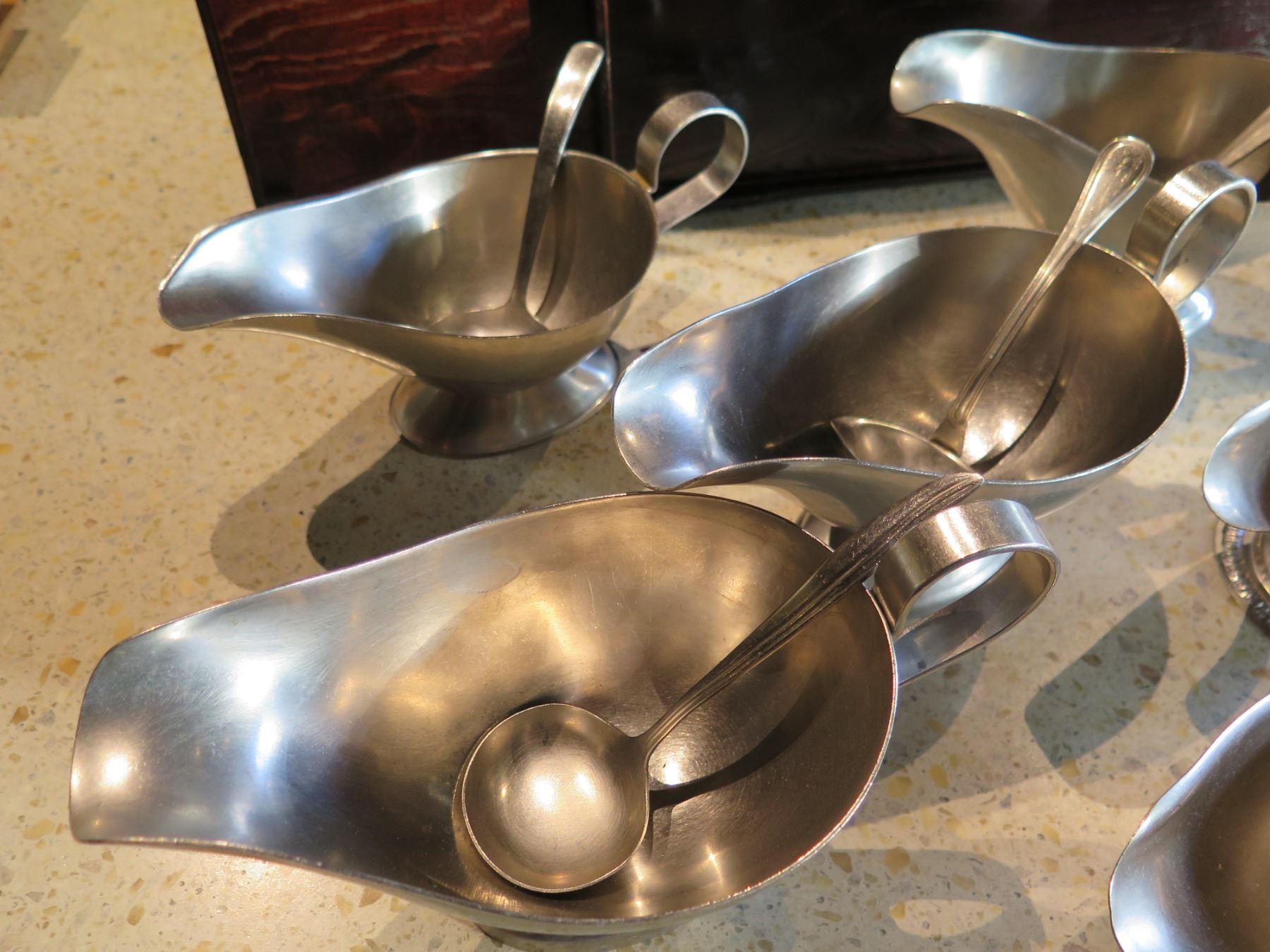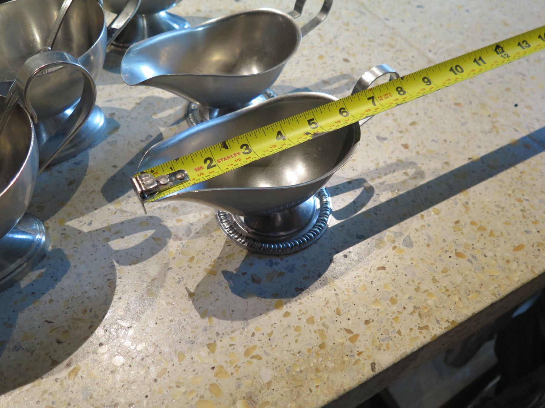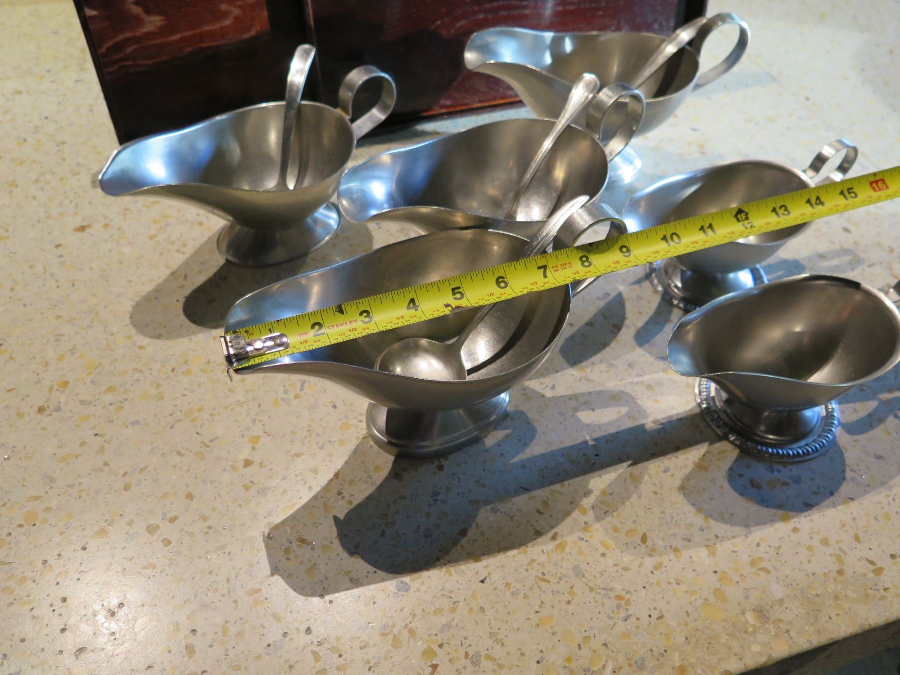 Qty 6 Metal Gravy Boats w/ Some Spoons, Misc Sizes