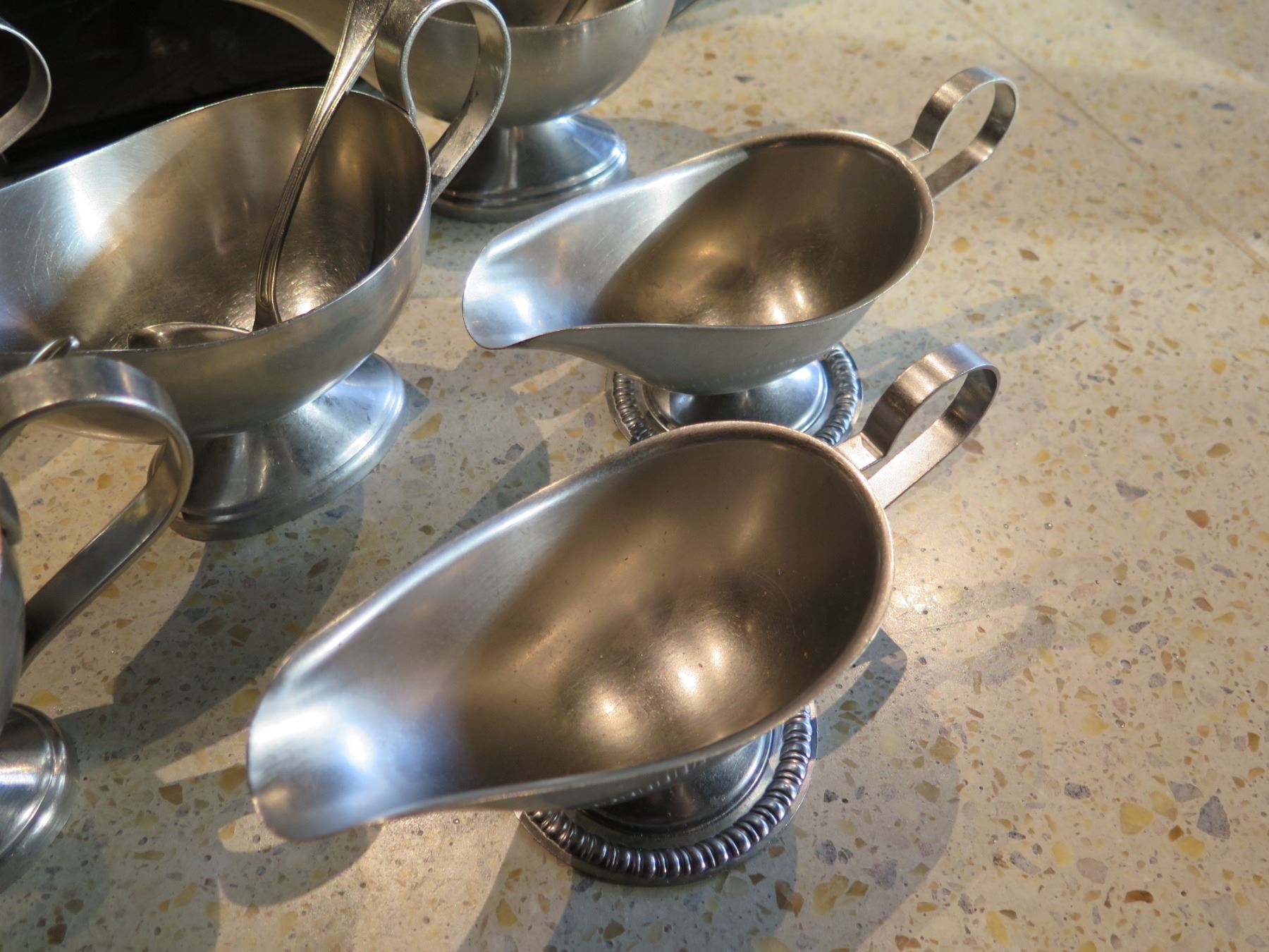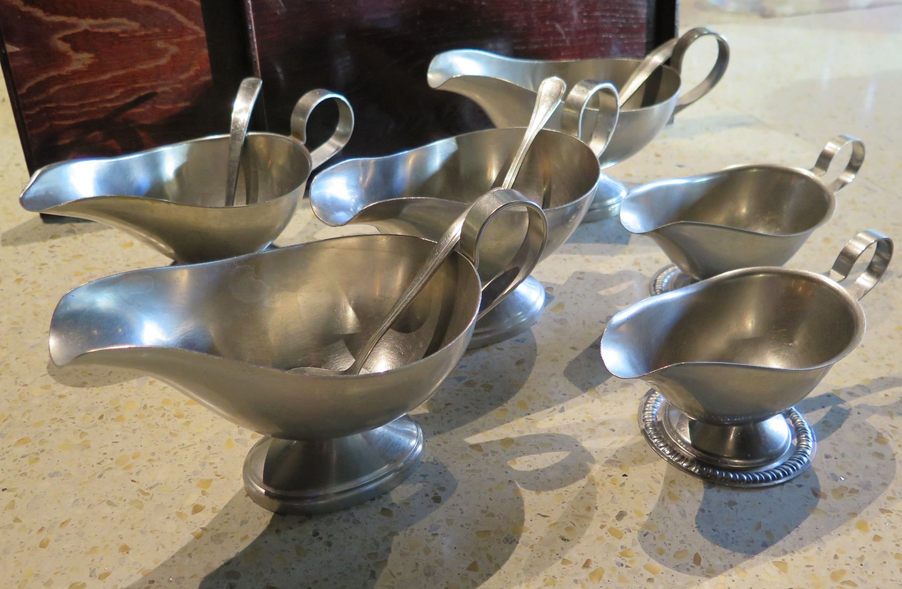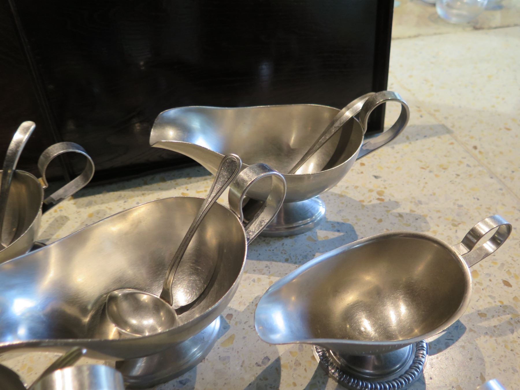 Qty 6 Metal Gravy Boats w/ Some Spoons, Misc Sizes