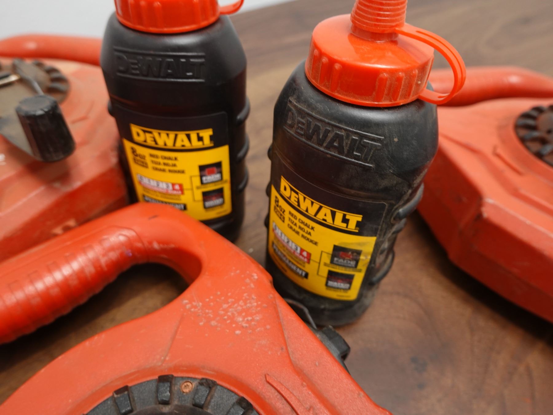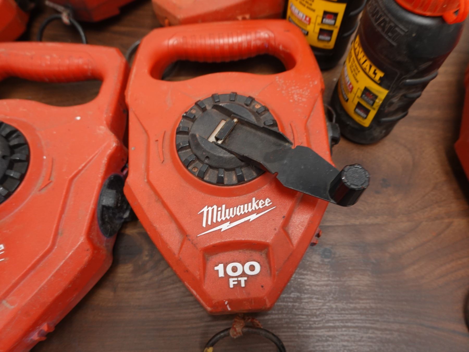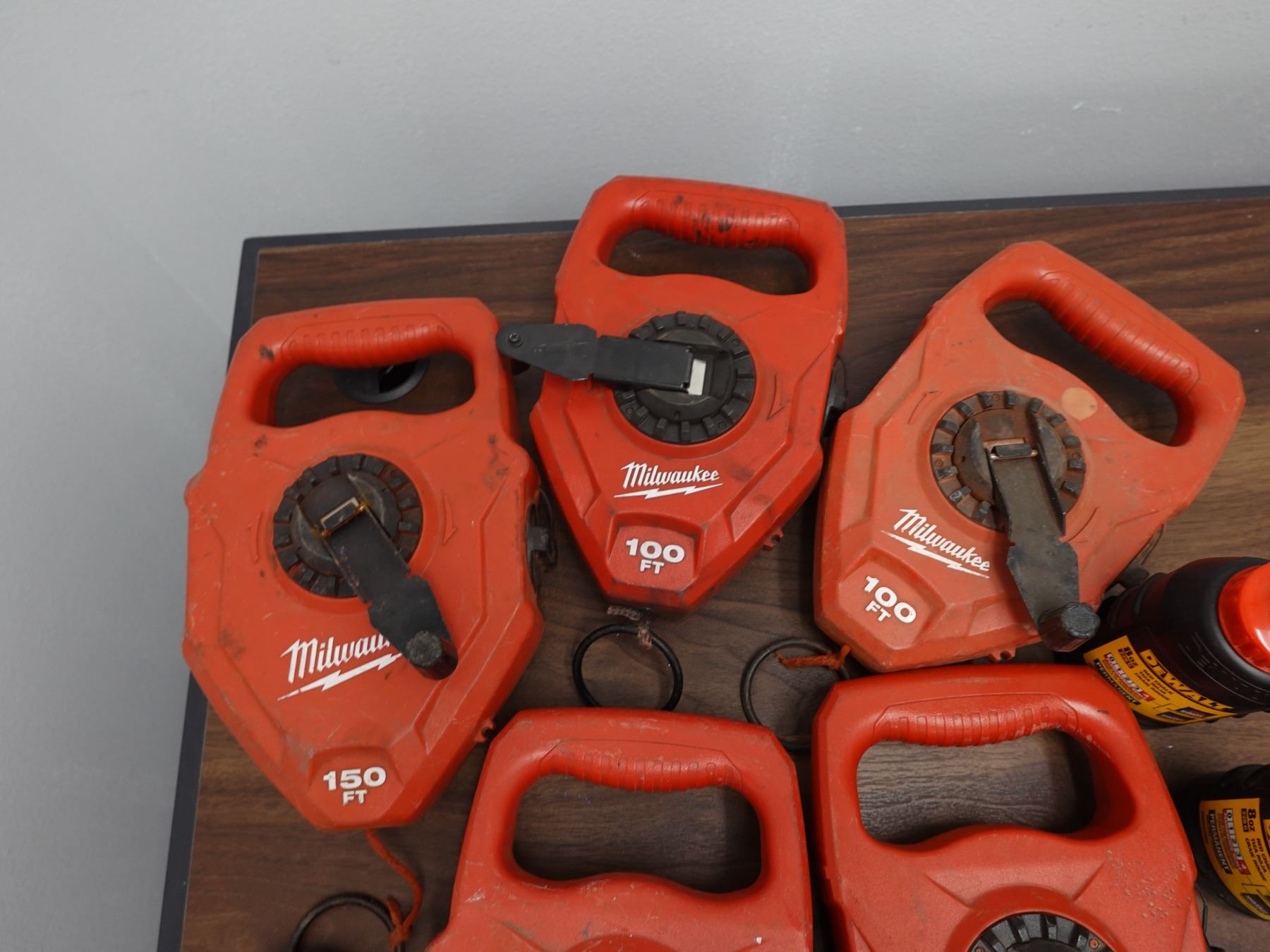 Qty 6 Milwaukee Measuring Tape & 2 DeWalt Red Chalk