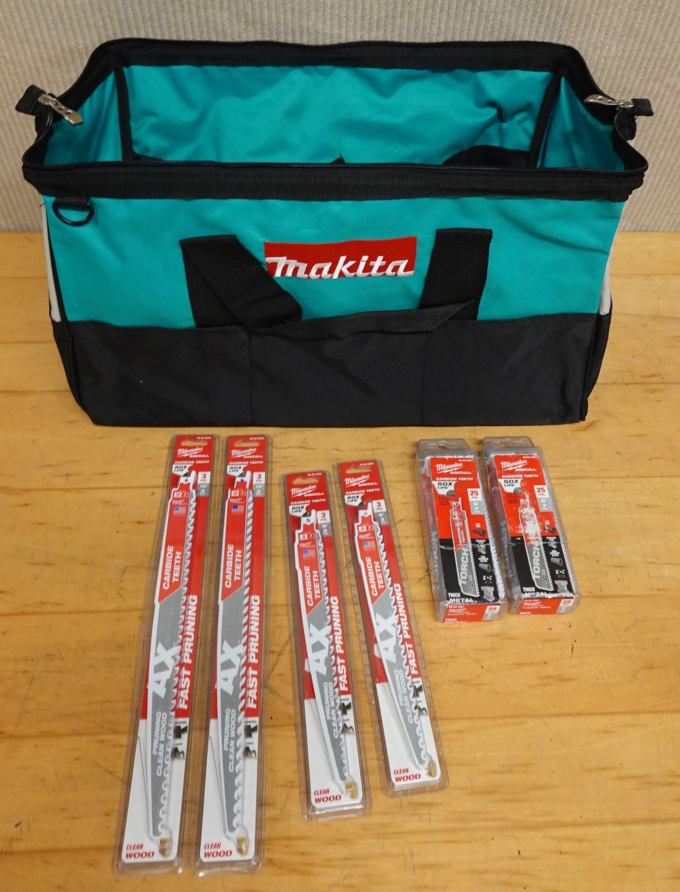 Qty 6 Milwaukee Sawzall Blade Multi-Packs, Misc Sizes New in Package & Makita Bag