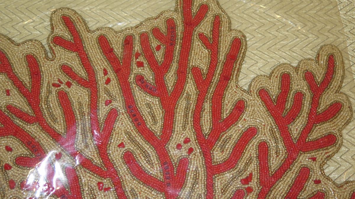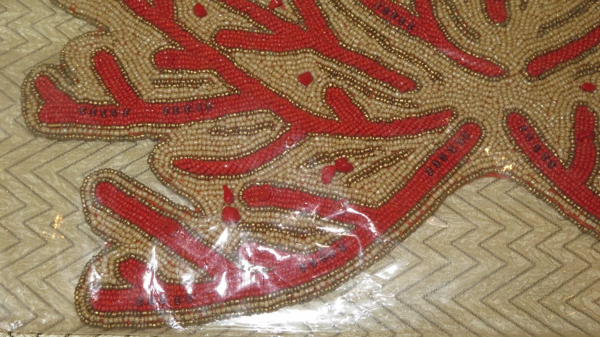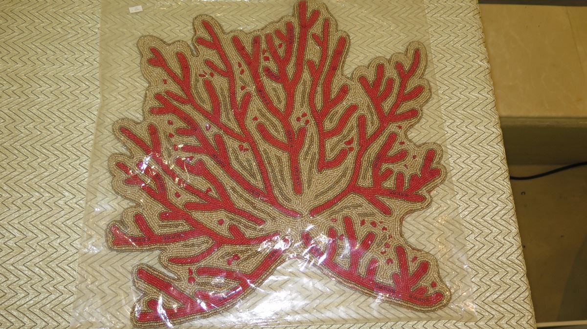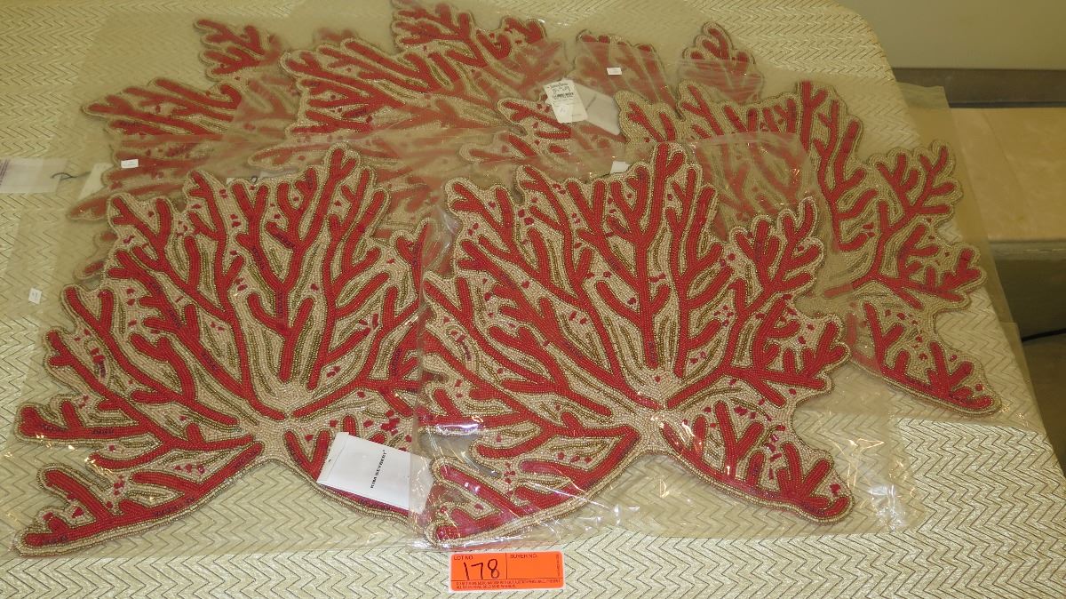 Qty 6 New Beaded Red Coral Placements - $110 Each Retail (Neiman Marcus)