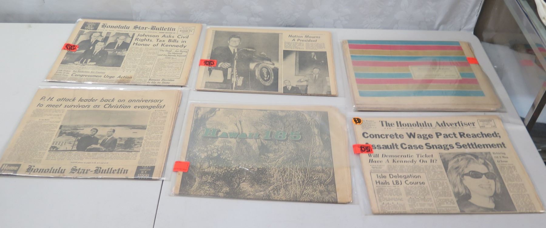 Qty 6 Newspapers: 30 Anniversary, Nation Mourns a President, Hawaii 185, etc
