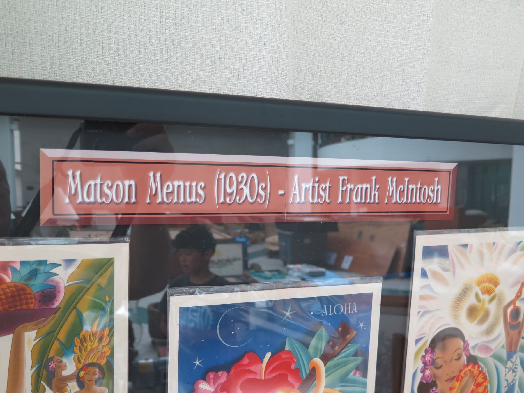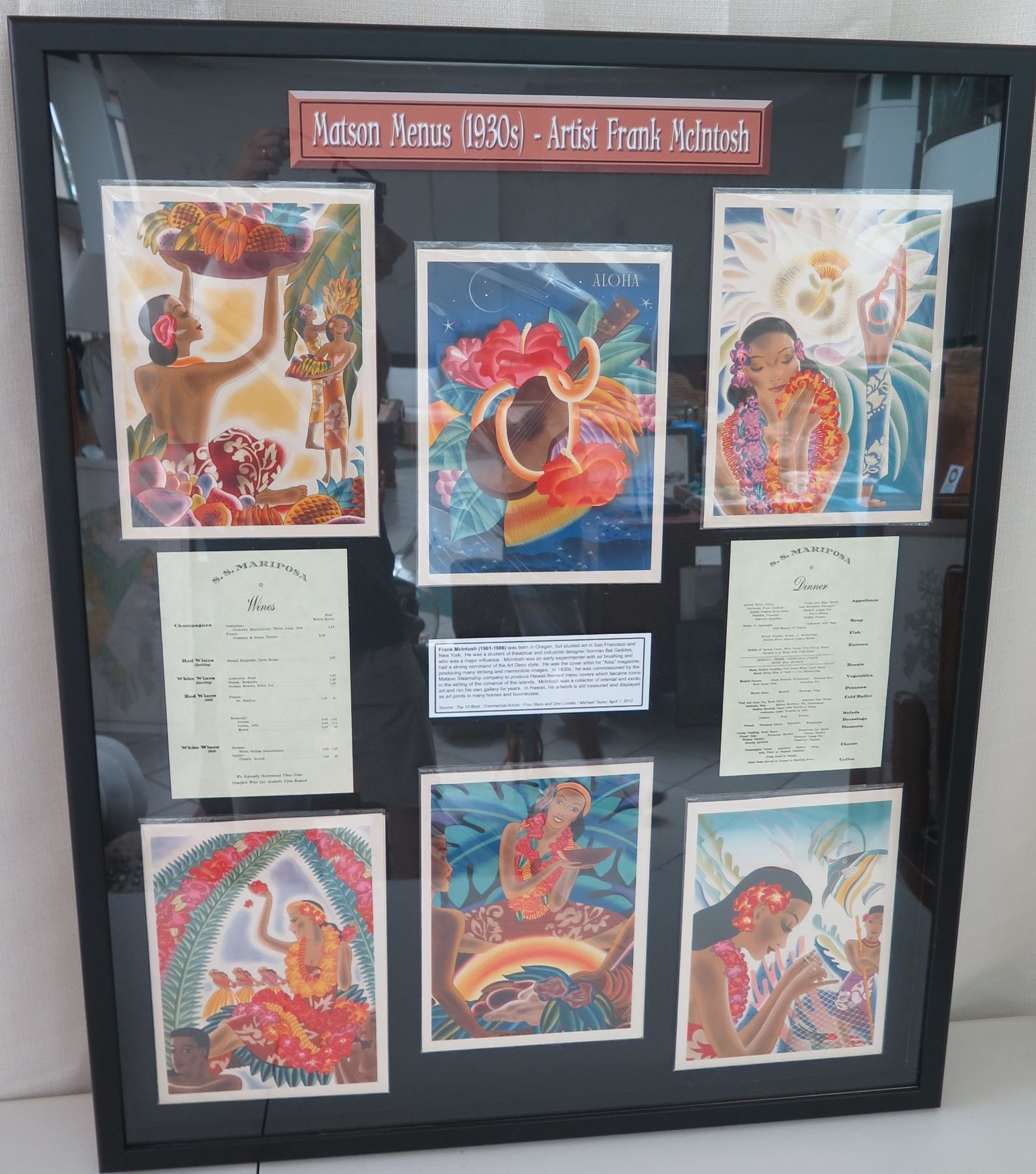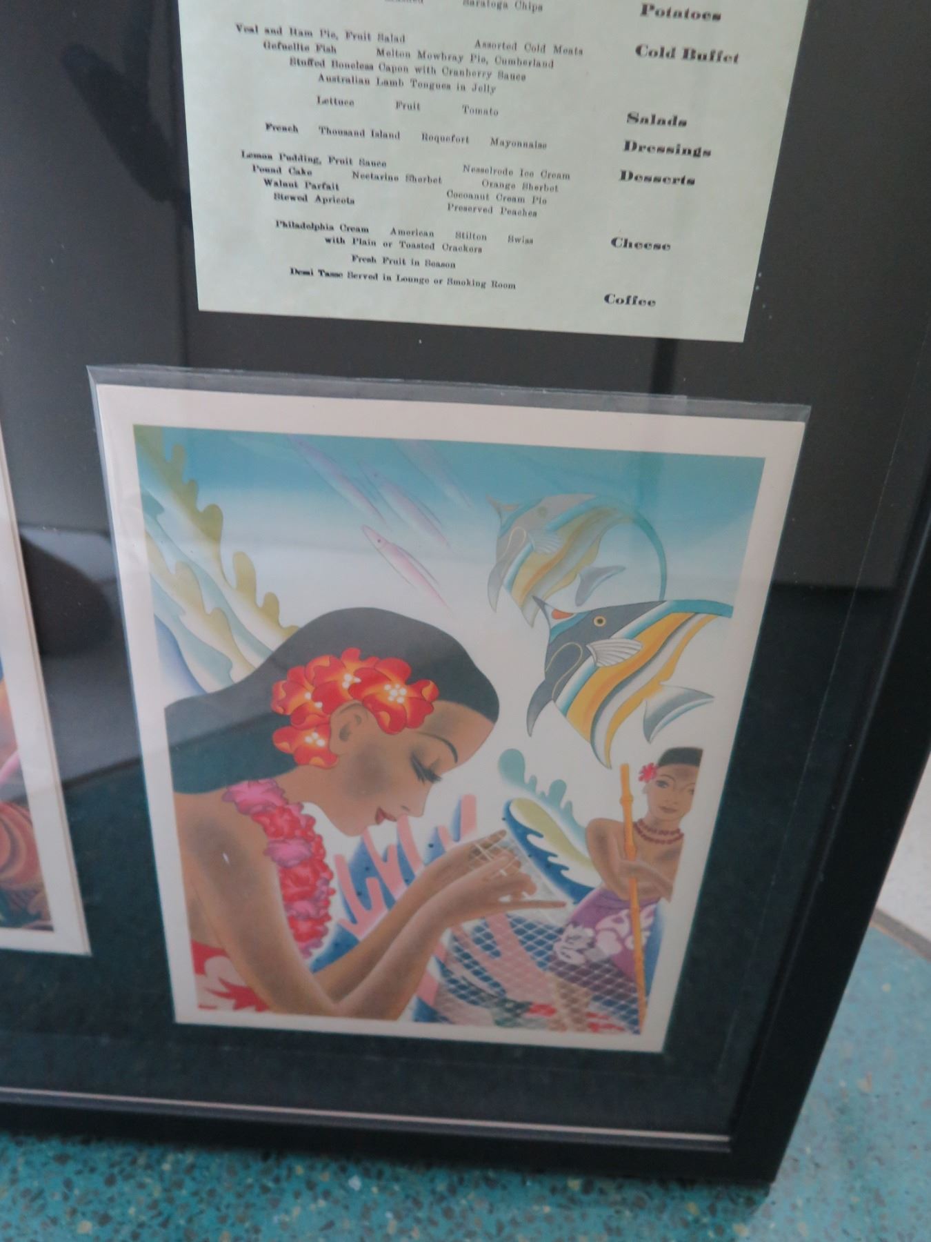 Qty 6 Original 1930s Matson Menus, Artist Frank McIntosh, Framed, Complete Set, 34" x 42" Frame