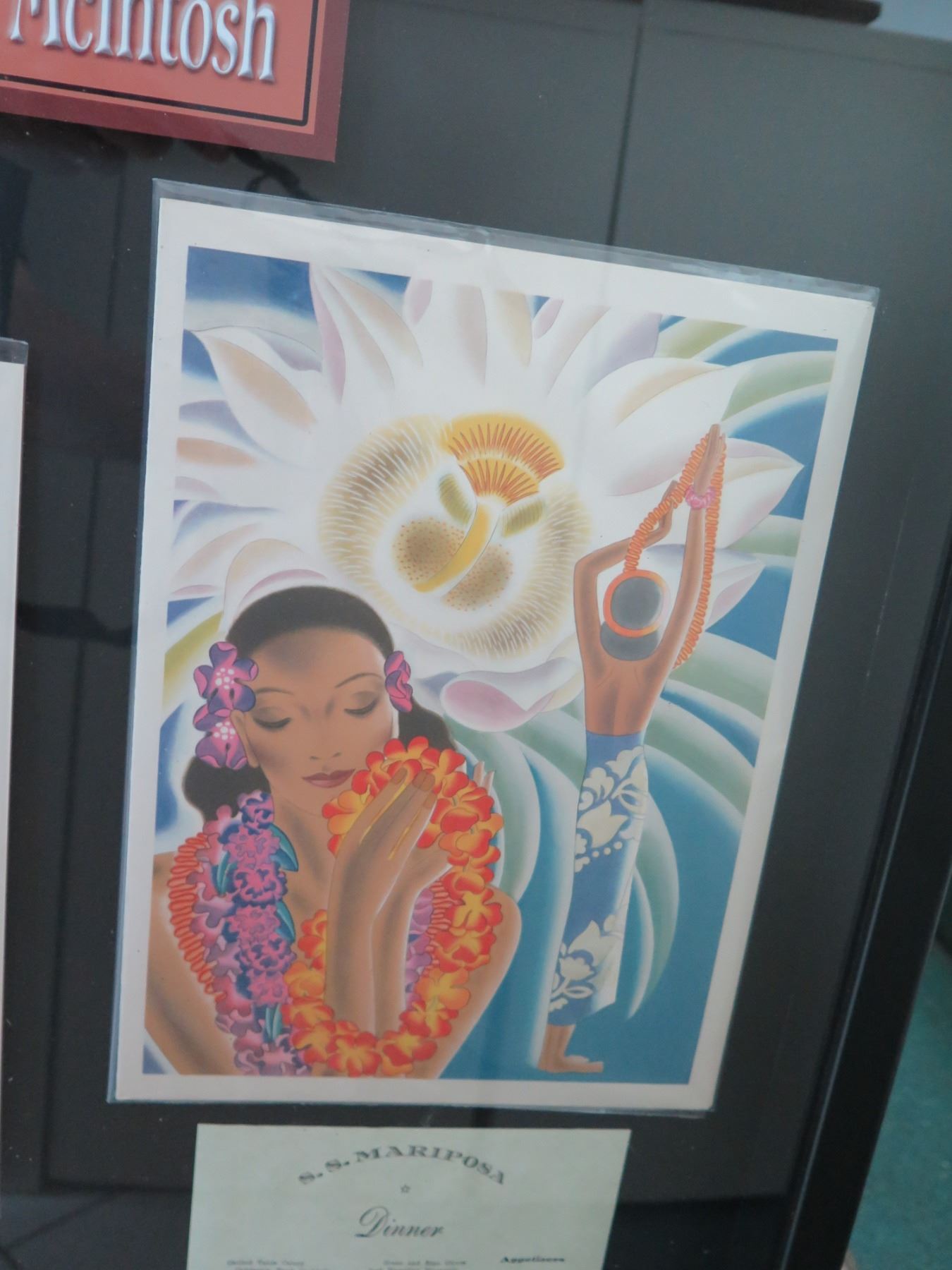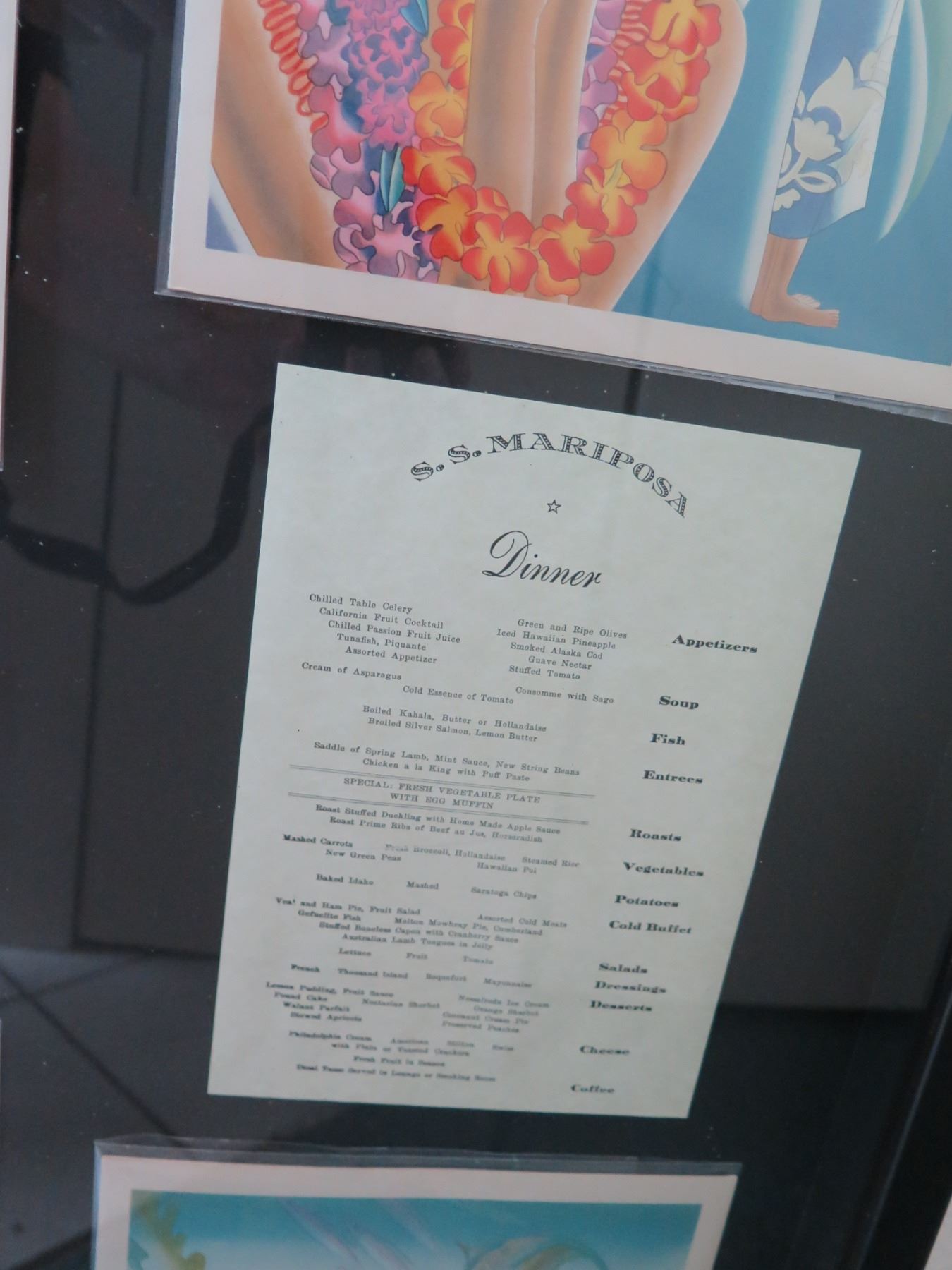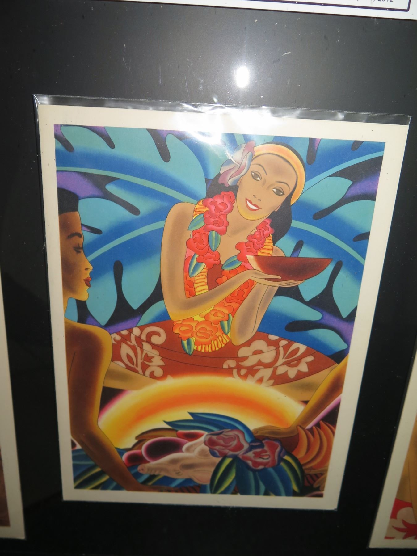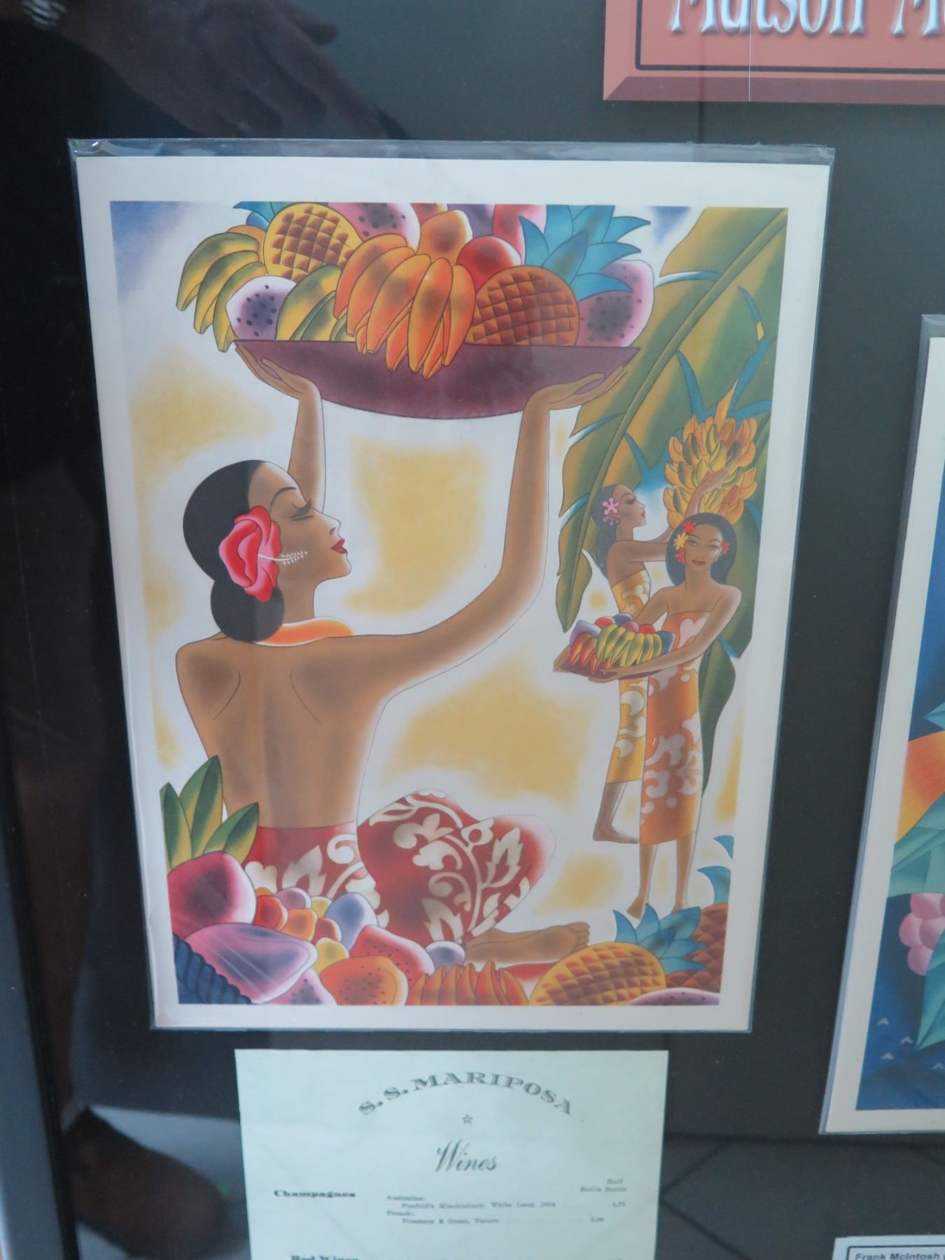 Qty 6 Original 1930s Matson Menus, Artist Frank McIntosh, Framed, Complete Set, 34" x 42" Frame