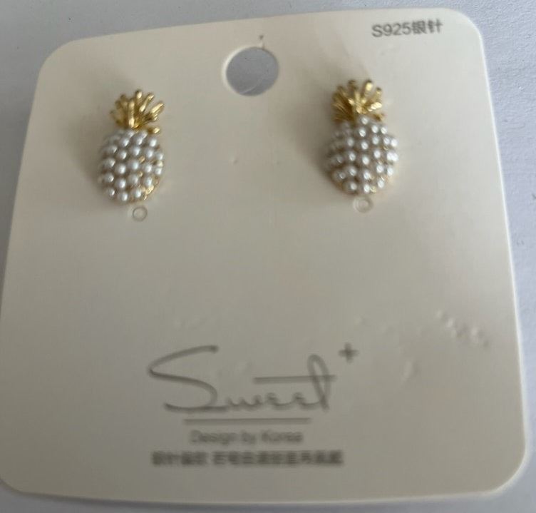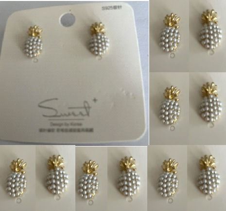 Qty 6 Pair Gold-Tone Pineapple Earrings w/ Pearl Bead Accents (approx. 0.75"L)